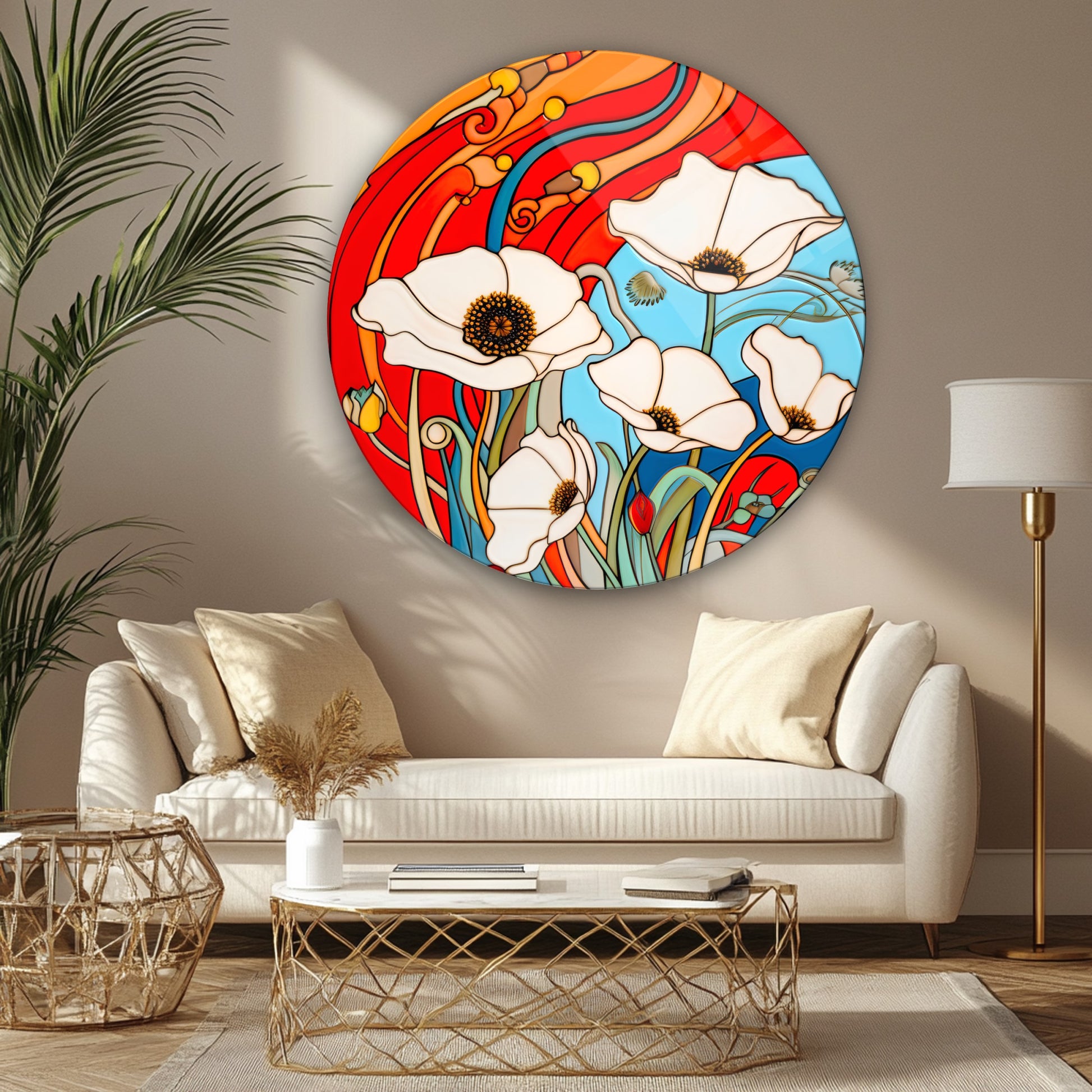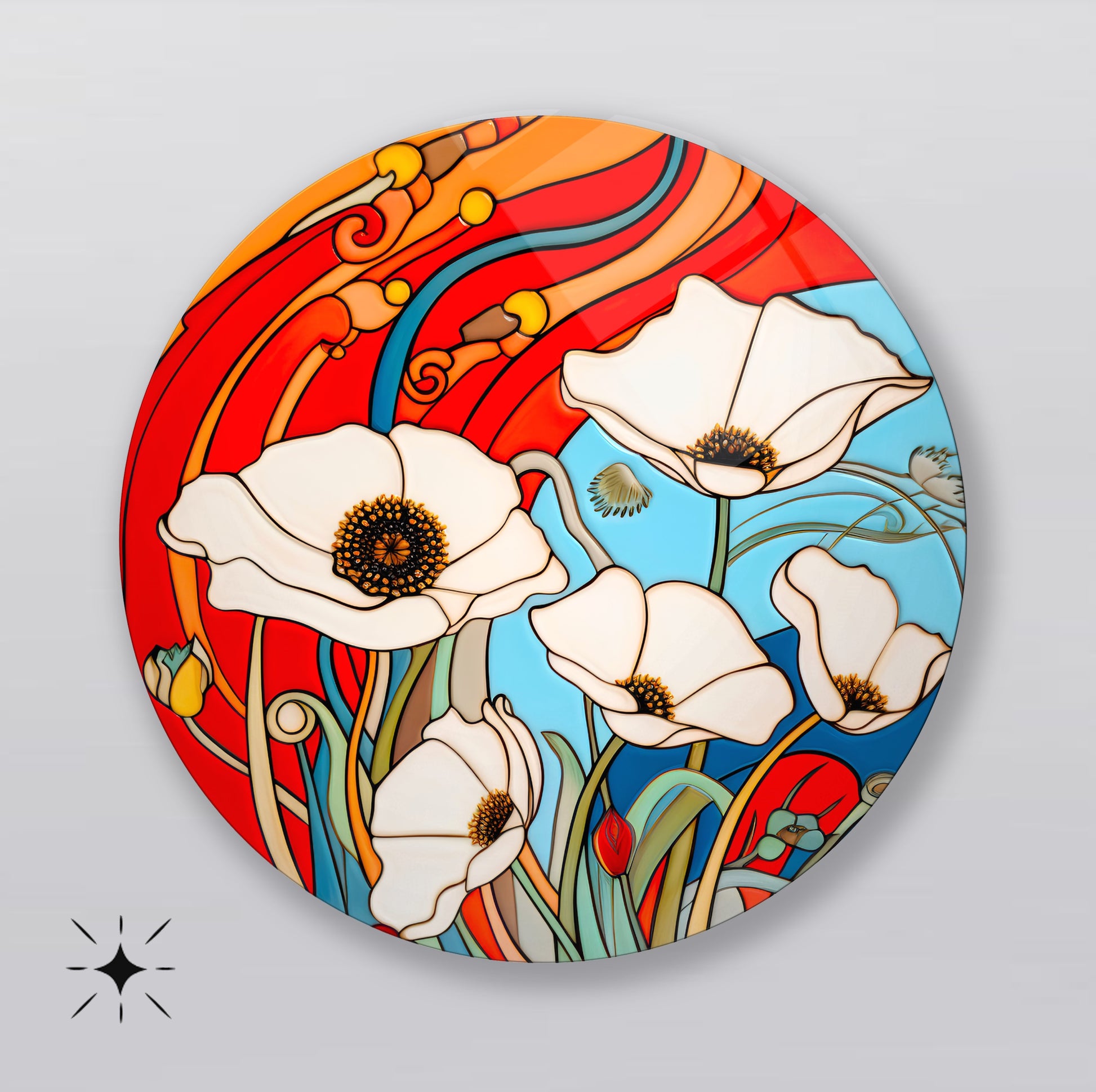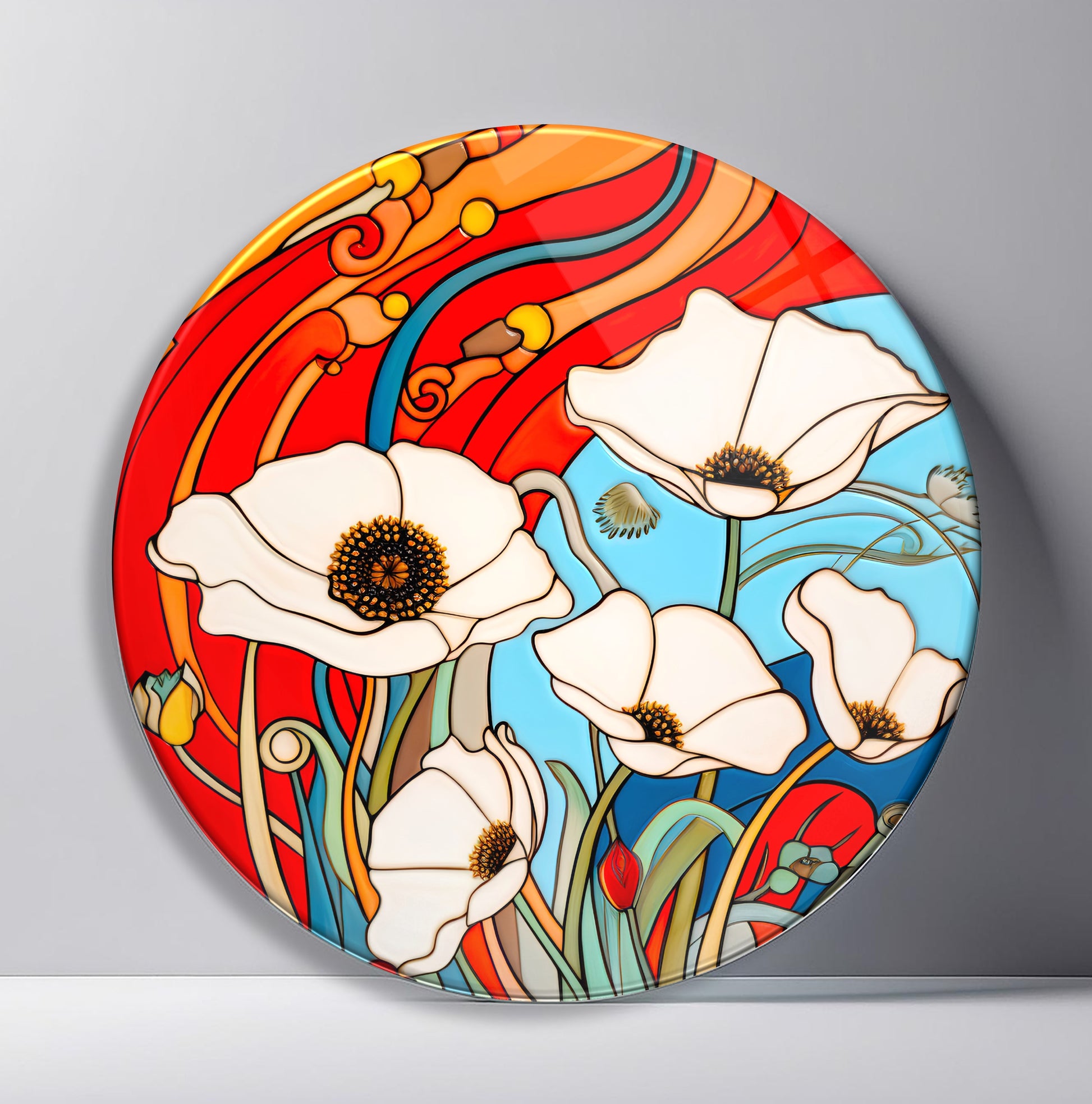 Gelincik Çiçekleri Yuvarlak Cam Tablo