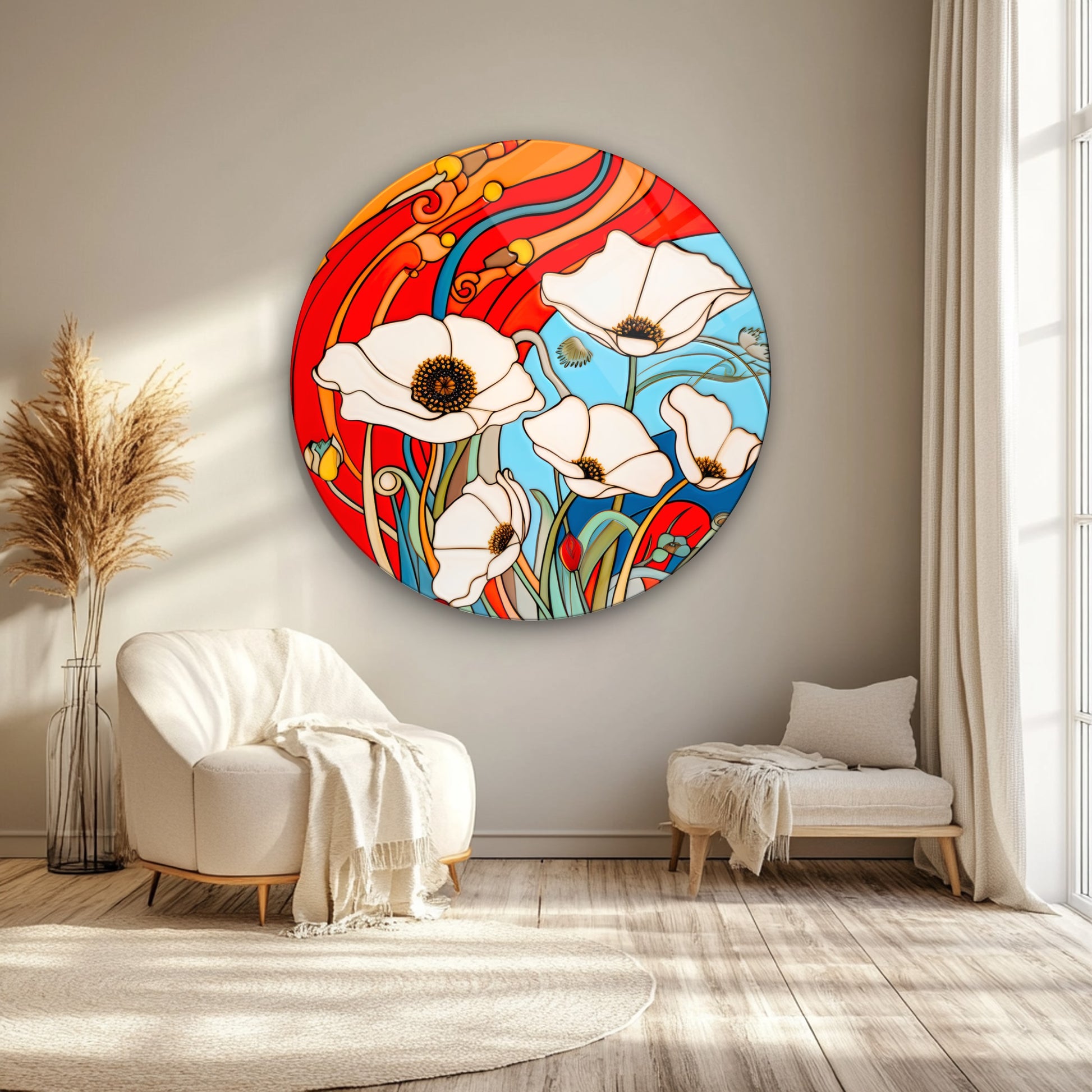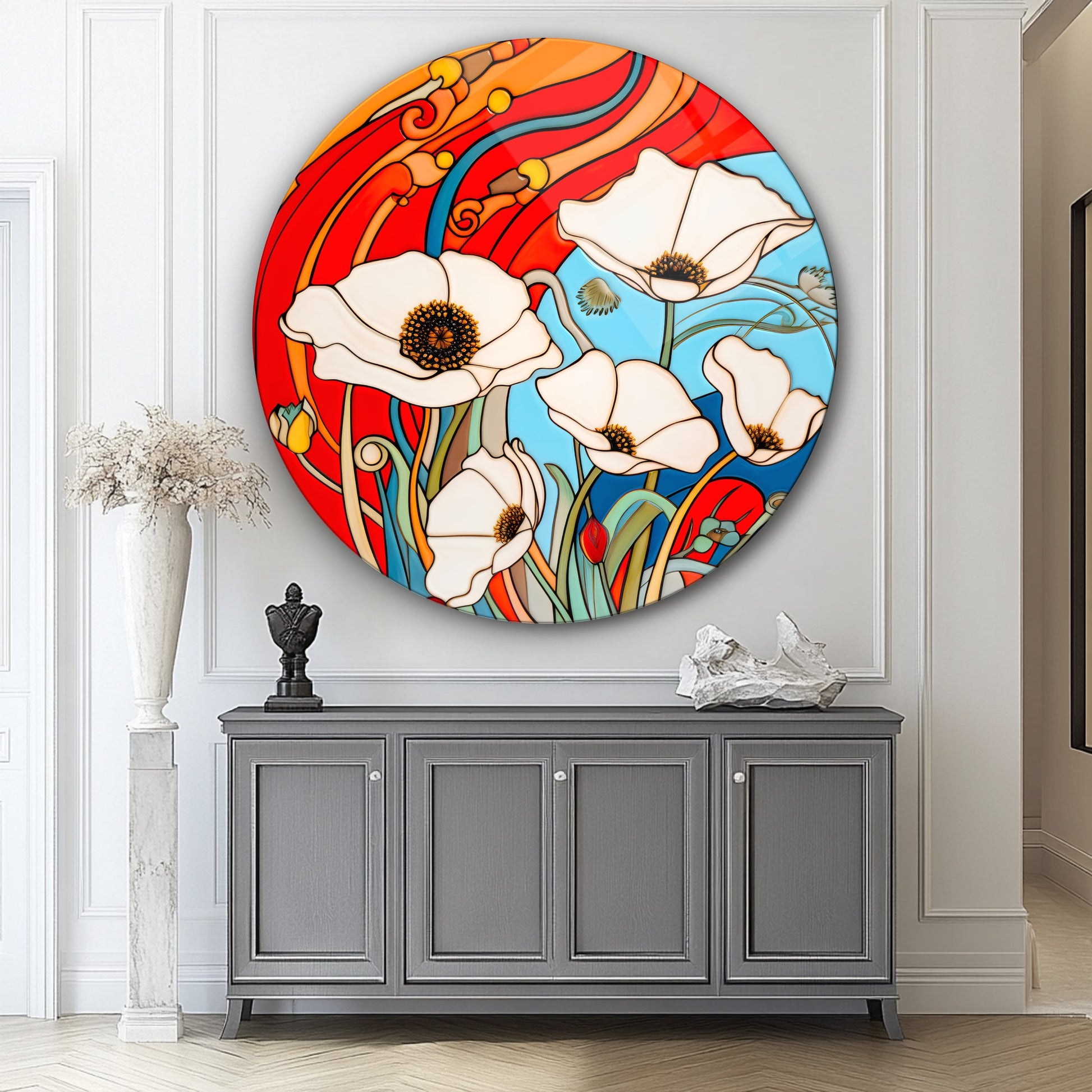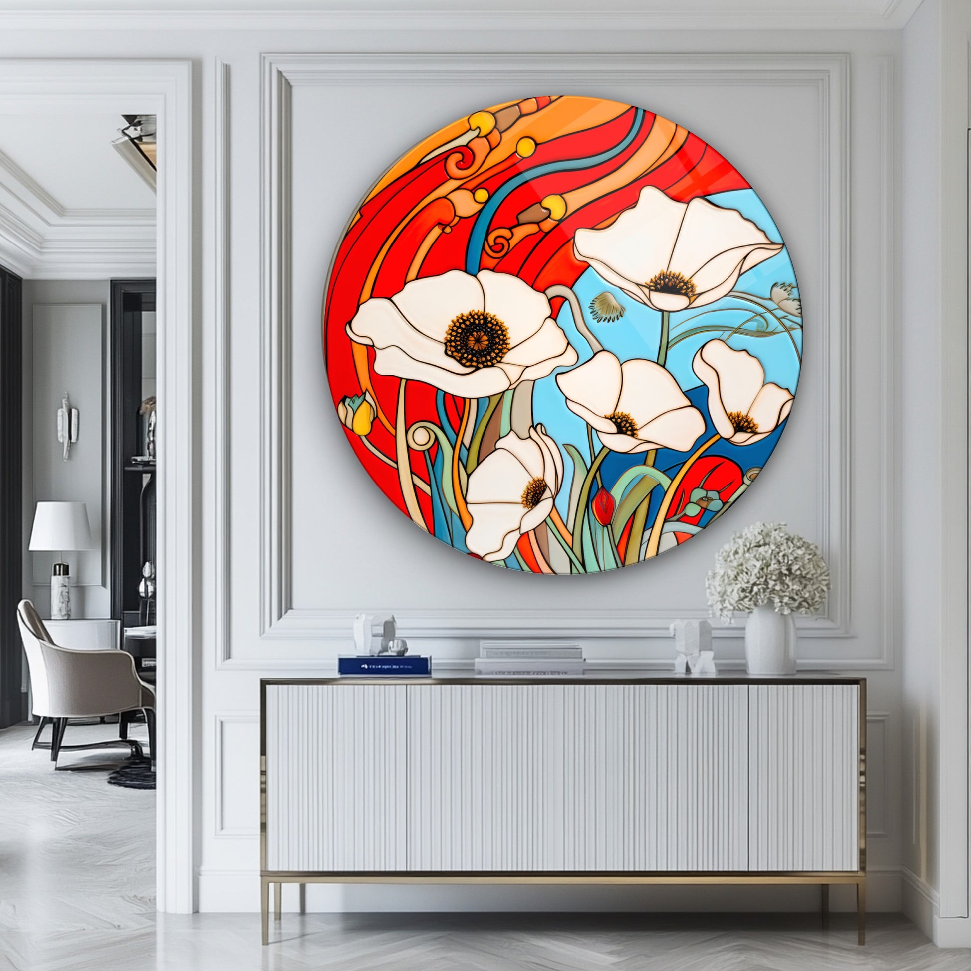 Gelincik Çiçekleri Yuvarlak Cam Tablo