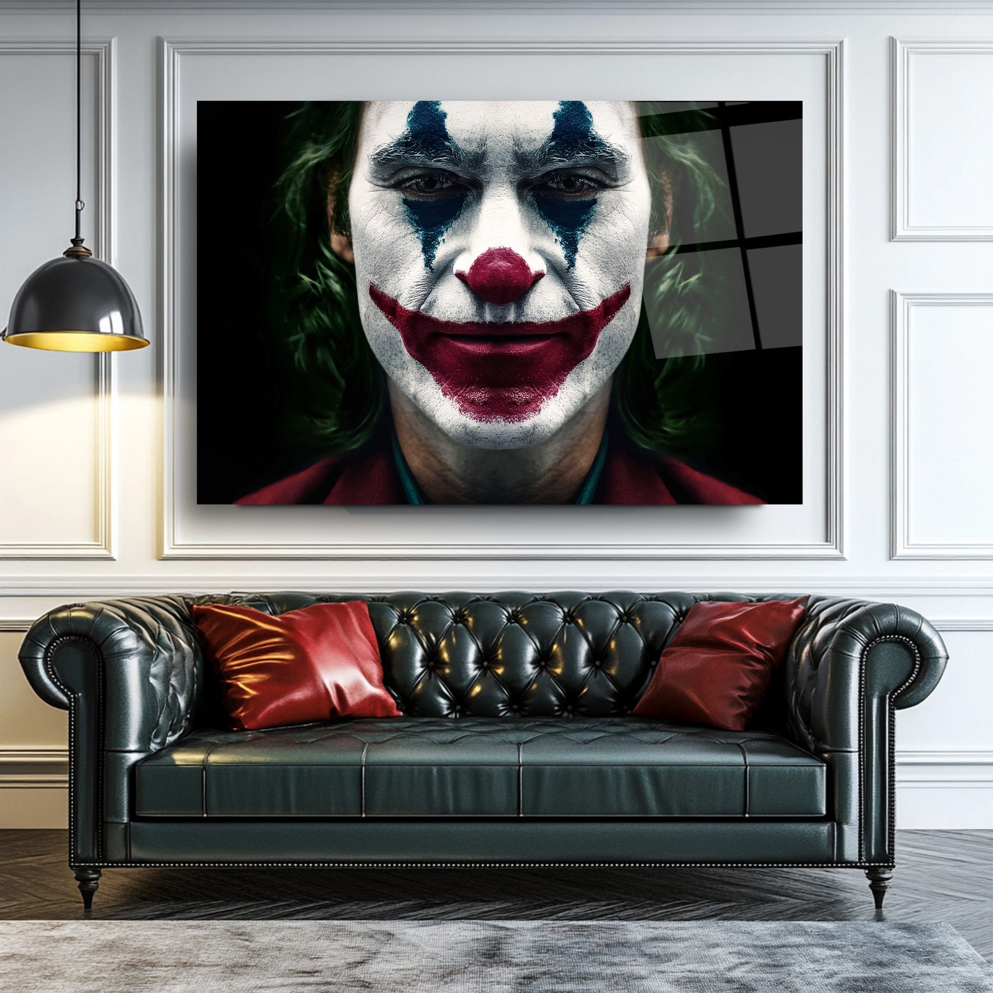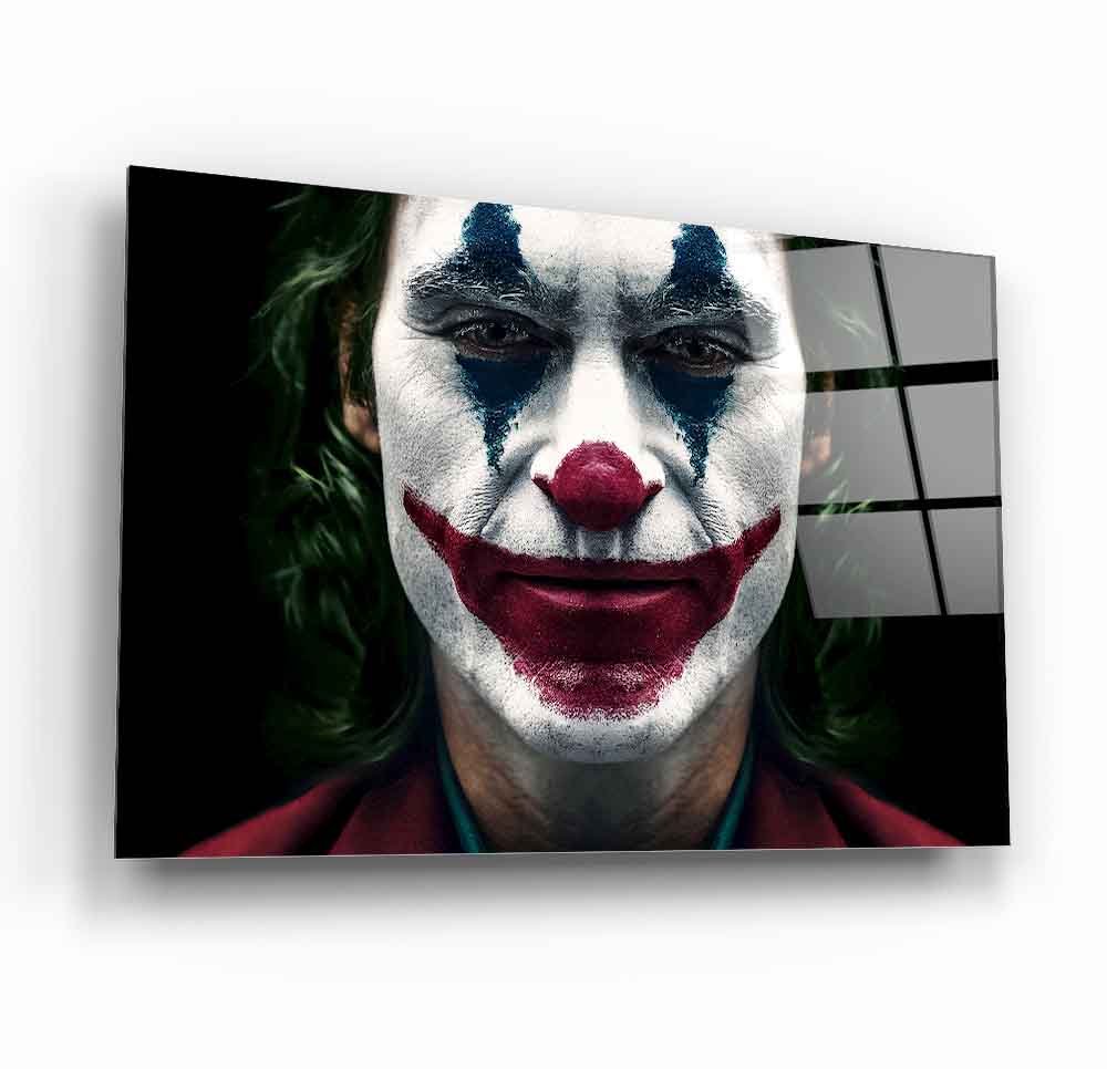 CamDeko'dan ev ve iş yerlerinize gizemli bir hava ve modern bir dokunuş katan özel bir eser: Gerçek Kırılmaz Modern UV Baskı Temperli Joker Cam Tablo! Sinema tarihinin en ikonik karakterlerinden Joker'in karizmatik portresiyle yaşam alanlarınıza çarpıcı bir atmosfer katıyor.