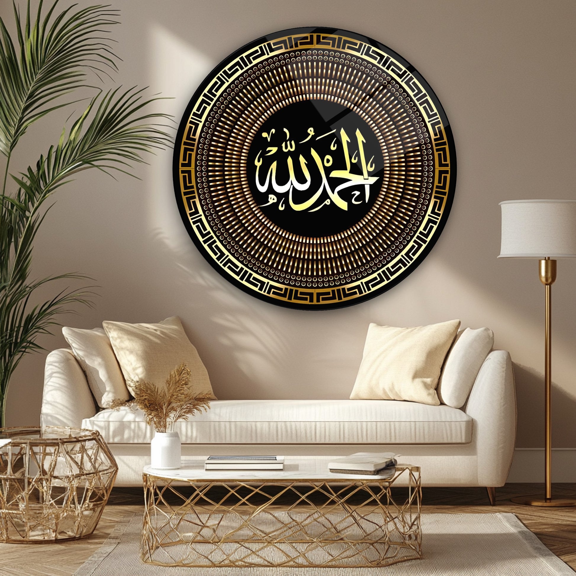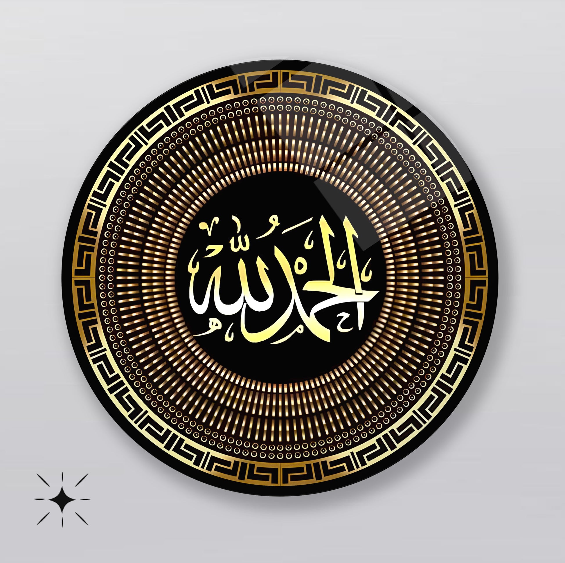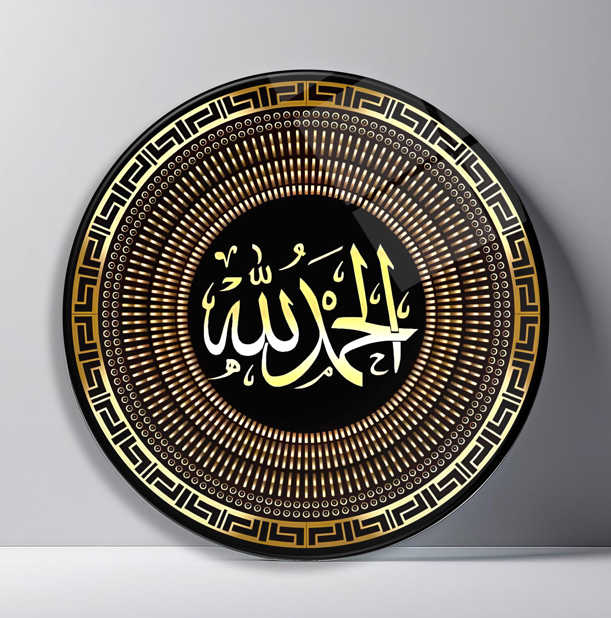 Allah Muhammed Lafzı Dini Yuvarlak Cam Tablo