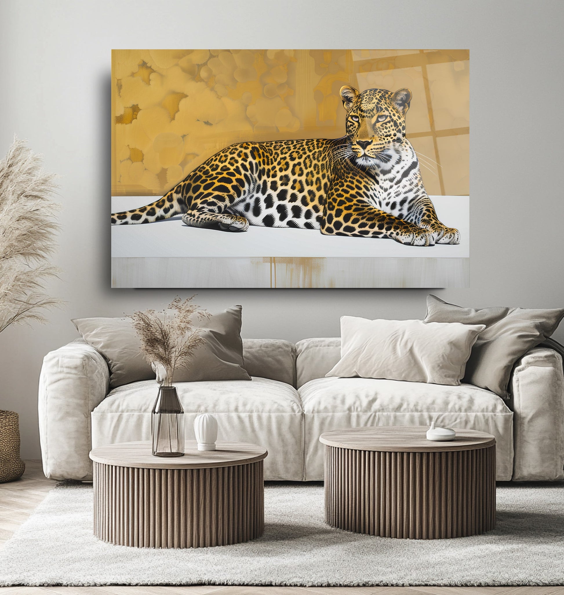Bu modern cam tablo, altın tonlarıyla zenginleştirilmiş arka planı ve zarif leopar deseniyle mekânınıza sofistike bir dokunuş katıyor. UV baskı teknolojisiyle cam yüzeye işlenen bu tablo, solmaya karşı dayanıklı ve yüksek çözünürlüklü renklerle öne çıkar. 4 mm kalınlığındaki temperli cam, darbelere karşı dayanıklı olup, kenarları rodajlanarak estetik ve güvenli bir kullanım sağlar. Suya, neme ve çizilmeye dayanıklı yüzeyiyle uzun yıllar ilk günkü gibi kalır. Kolay montaj için gerekli tüm aksesuarlar kutuda yer alır.