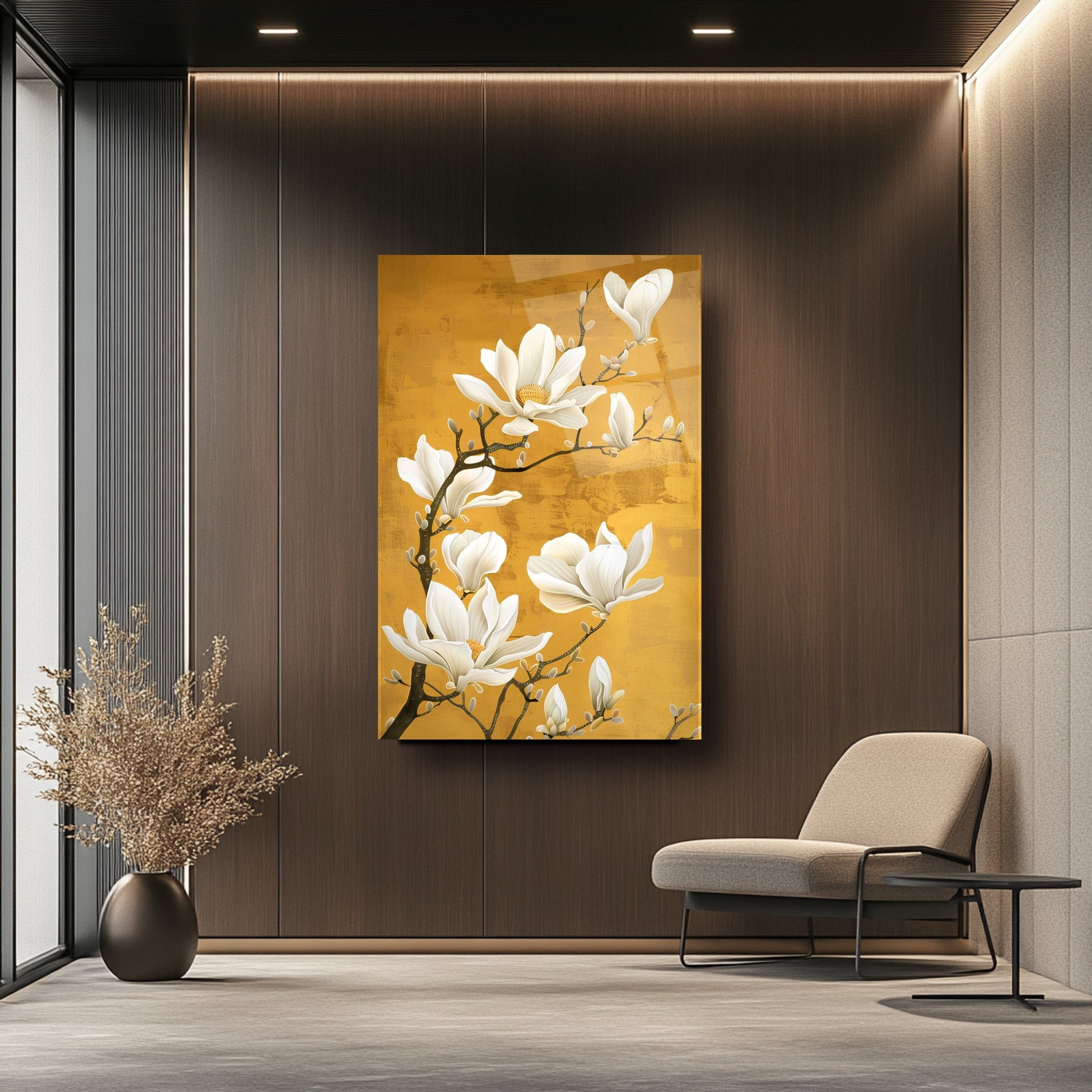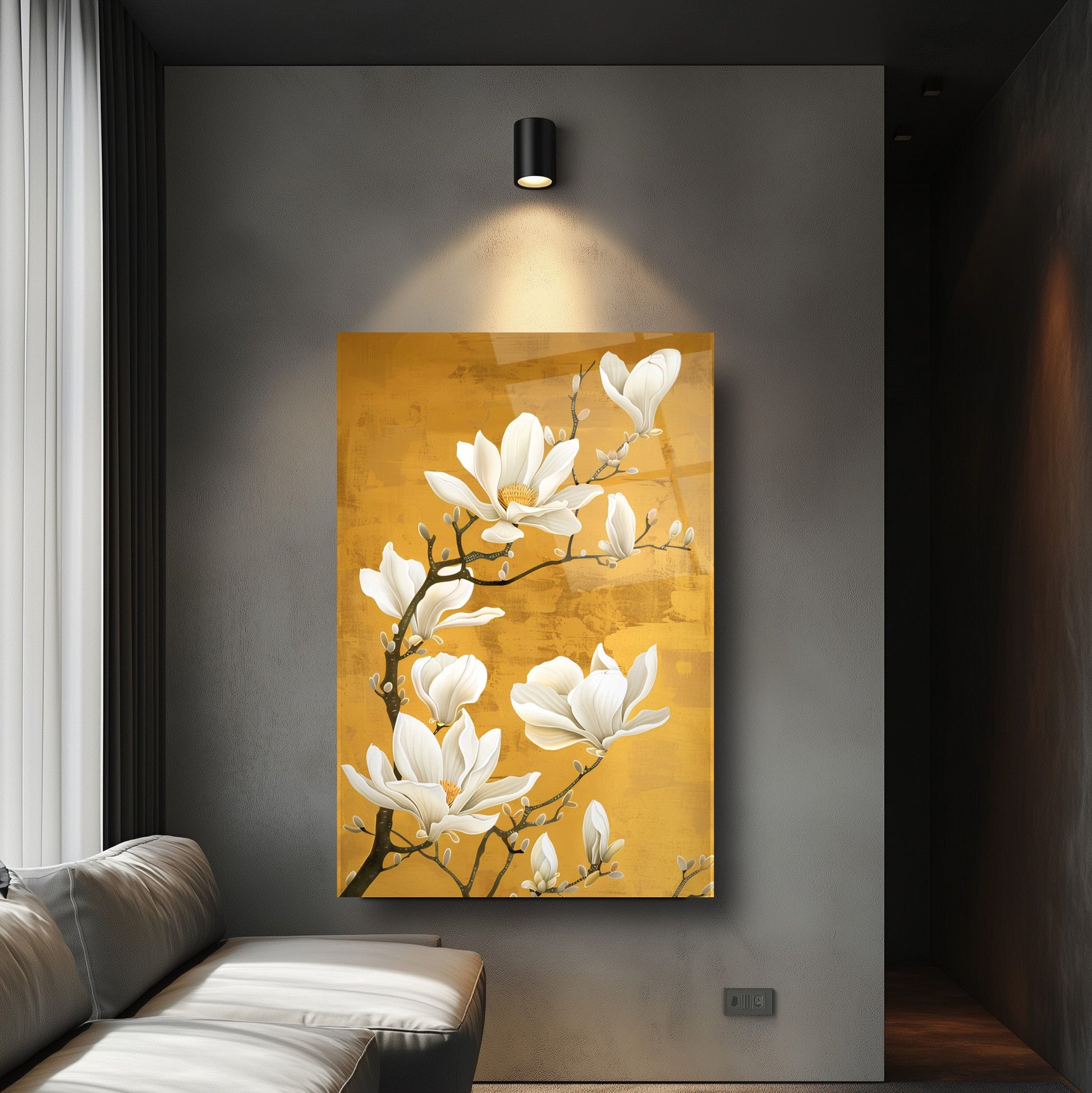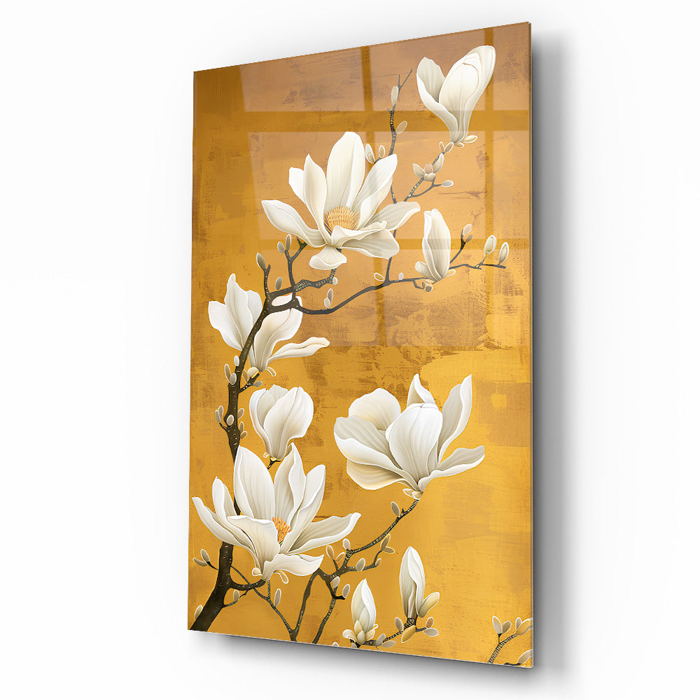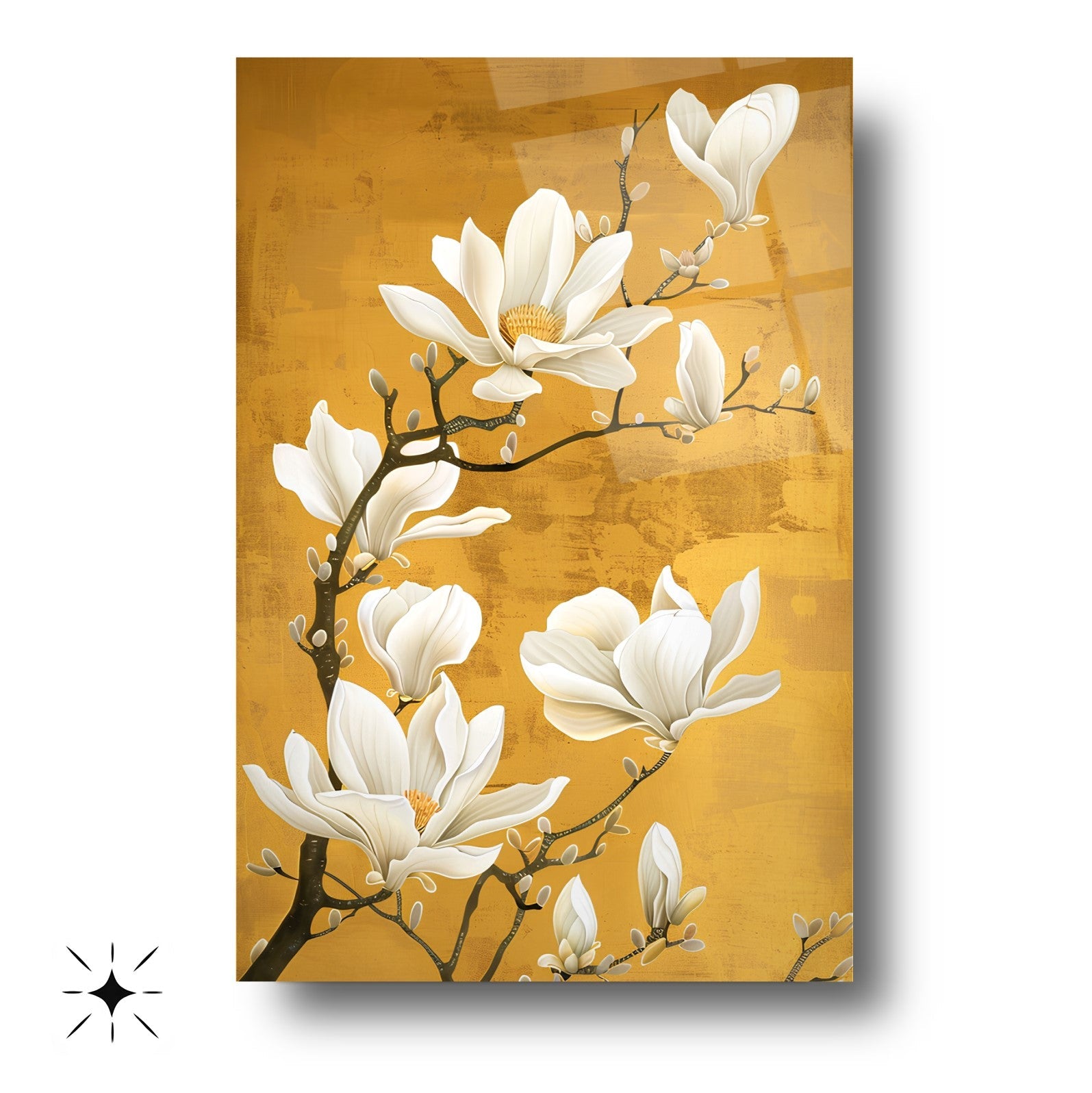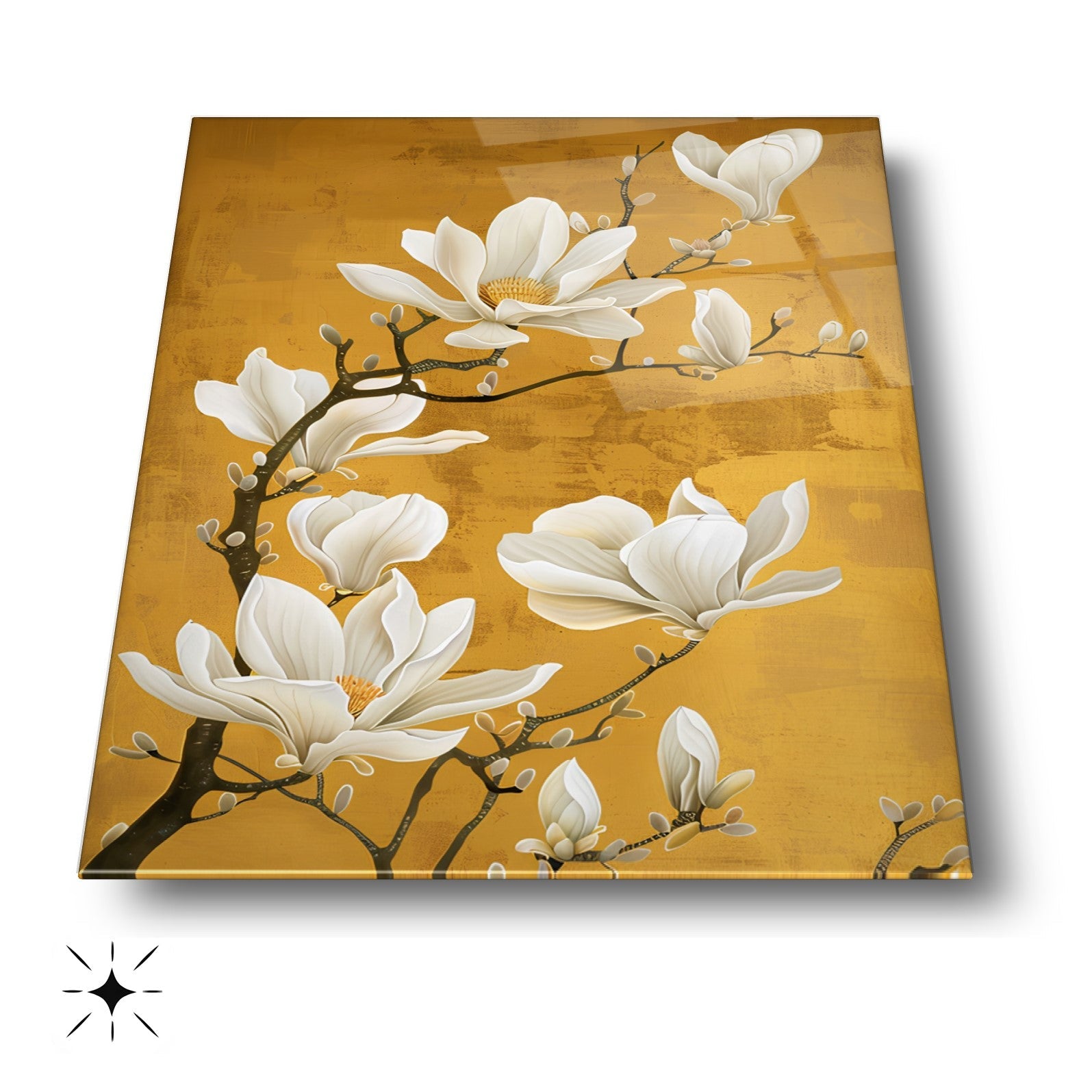 Zarif ve modern bir atmosfer için ideal seçim! Altın tonlarında arka plan üzerine işlenmiş üç boyutlu beyaz çiçek deseni, yaşam alanlarınıza sofistike bir dokunuş katıyor. 4 mm kalınlığındaki ultra-clear temperli cam, standart camlara göre 10 kat daha dayanıklıdır ve rodajlanmış kenarlarıyla güvenli kullanım sağlar. UV dijital baskı teknolojisiyle uygulanan yüksek çözünürlüklü baskı, renklerin solmasını engeller ve uzun ömürlü kullanım sunar. Kolay montajı sayesinde hemen duvarınıza asılabilir. Salon, oturma odası veya ofis gibi farklı alanlarda şıklığıyla öne çıkar. Evinize veya iş yerinize modern bir atmosfer kazandırmak için bu tablo mükemmel bir tercih olacaktır.