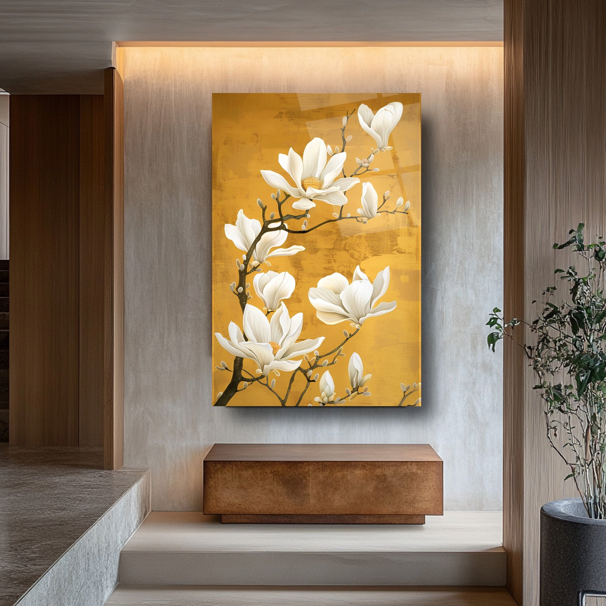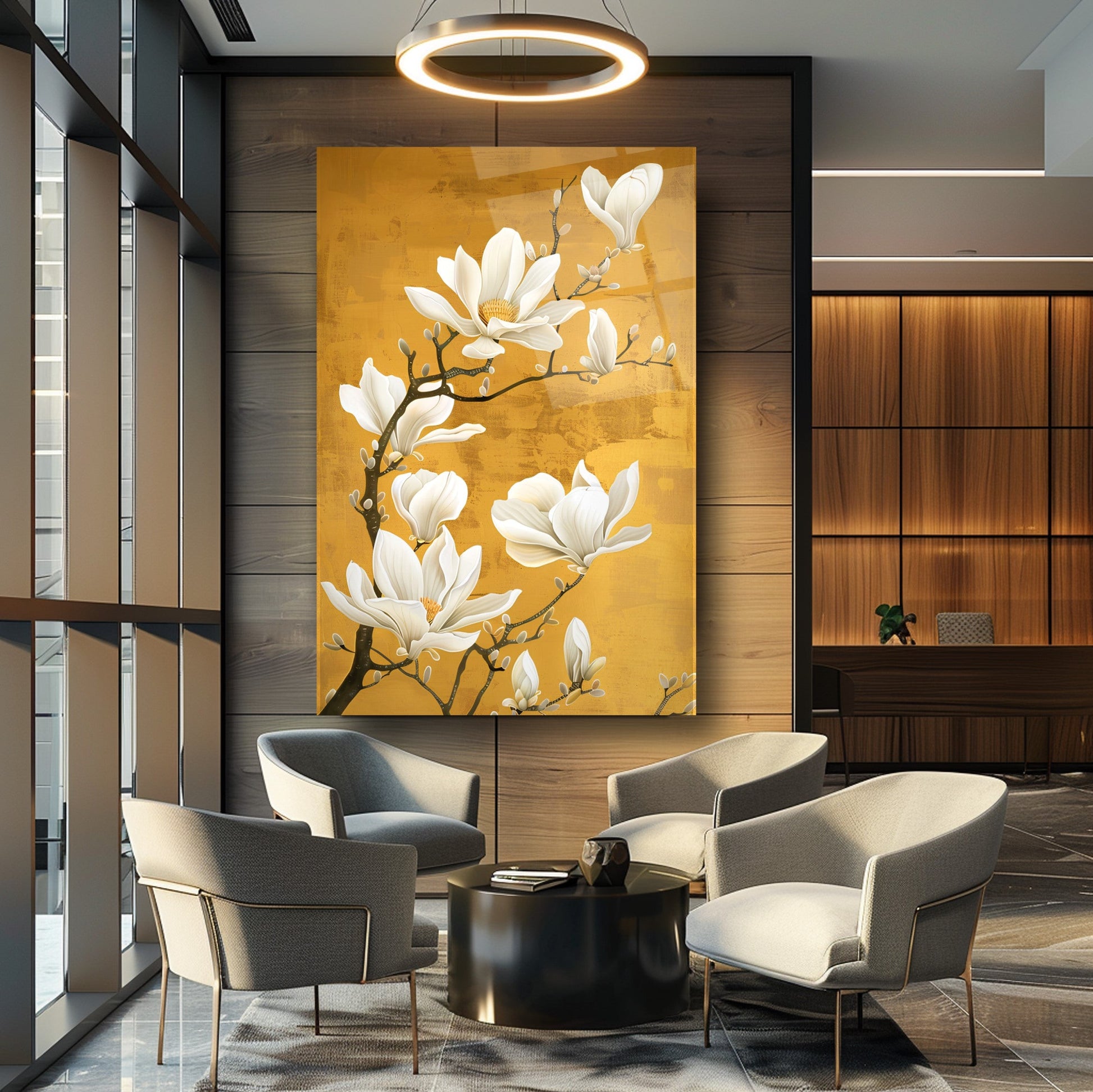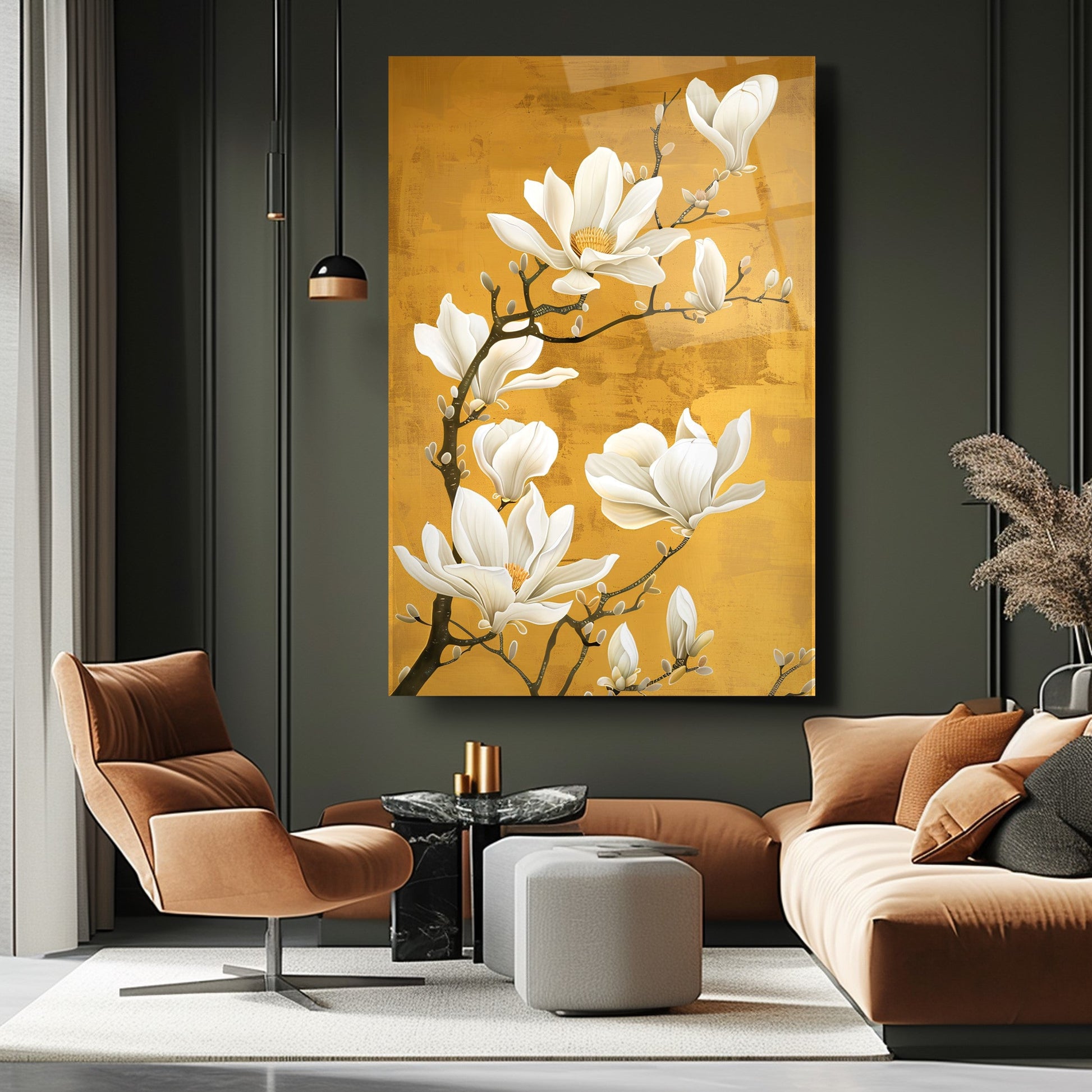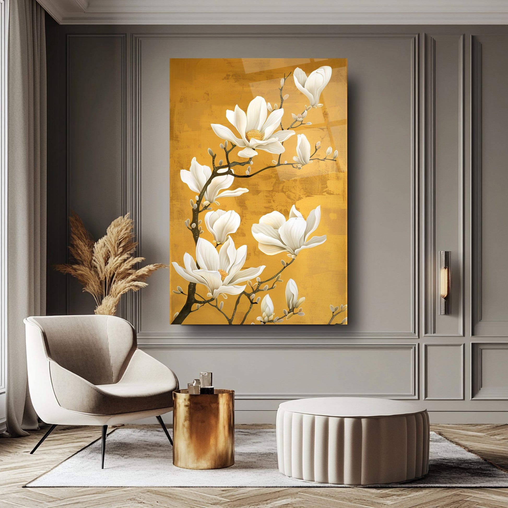 Zarif ve modern bir atmosfer için ideal seçim! Altın tonlarında arka plan üzerine işlenmiş üç boyutlu beyaz çiçek deseni, yaşam alanlarınıza sofistike bir dokunuş katıyor. 4 mm kalınlığındaki ultra-clear temperli cam, standart camlara göre 10 kat daha dayanıklıdır ve rodajlanmış kenarlarıyla güvenli kullanım sağlar. UV dijital baskı teknolojisiyle uygulanan yüksek çözünürlüklü baskı, renklerin solmasını engeller ve uzun ömürlü kullanım sunar. Kolay montajı sayesinde hemen duvarınıza asılabilir. Salon, oturma odası veya ofis gibi farklı alanlarda şıklığıyla öne çıkar. Evinize veya iş yerinize modern bir atmosfer kazandırmak için bu tablo mükemmel bir tercih olacaktır.