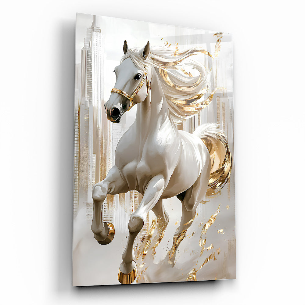 Asaletin ve Zarafetin Buluşması: Gold Bej Detay At Modern Kırılmaz Cam Tablo