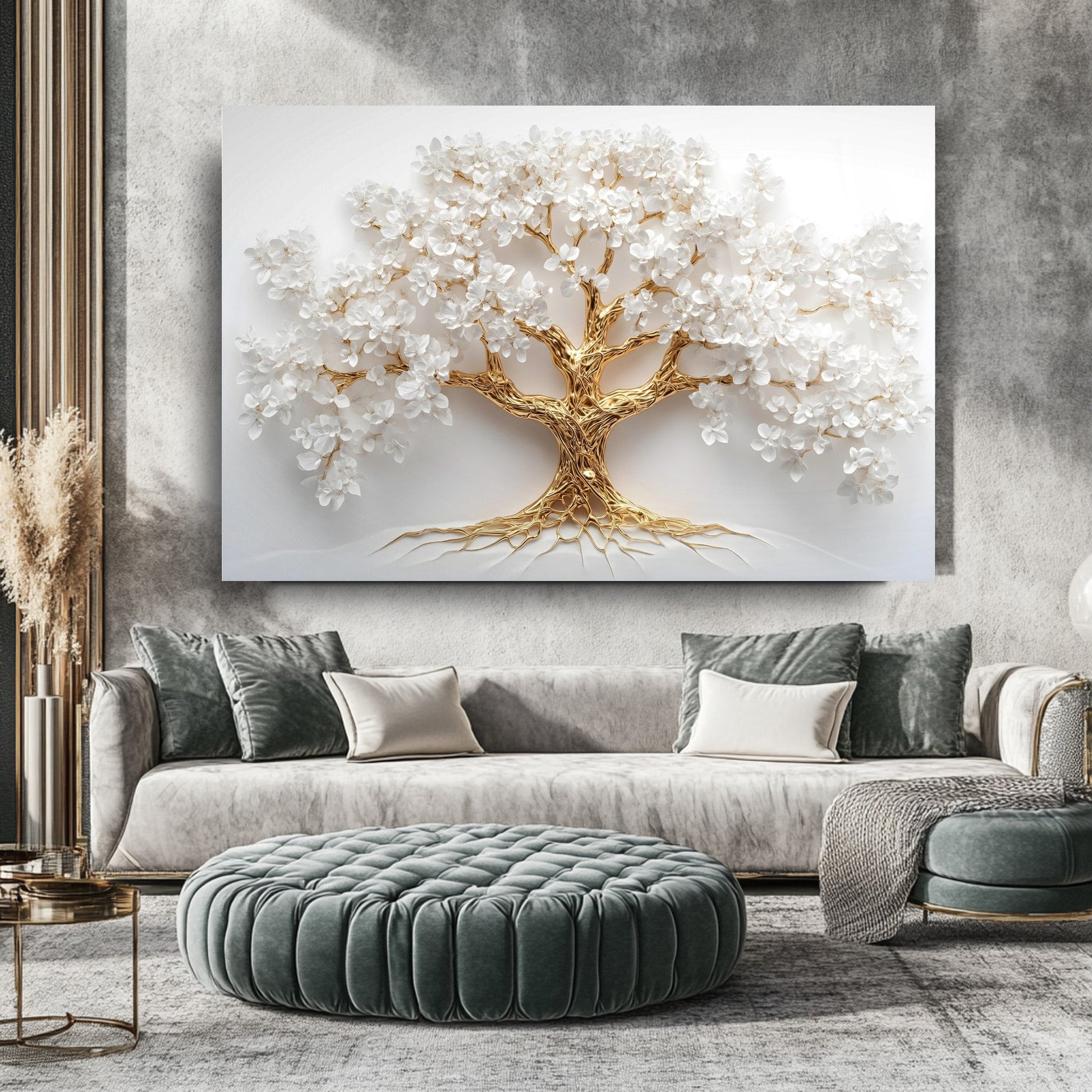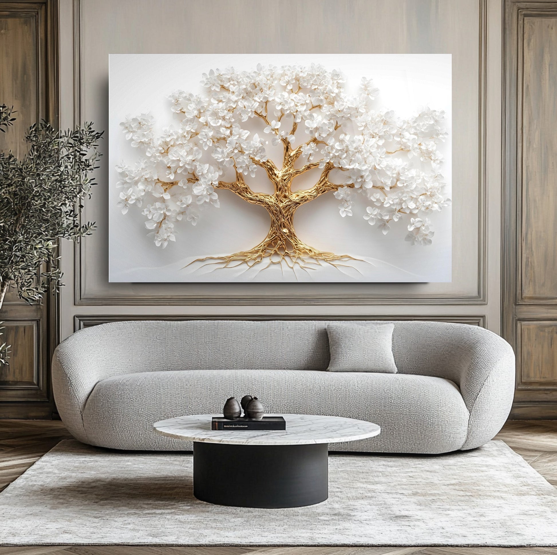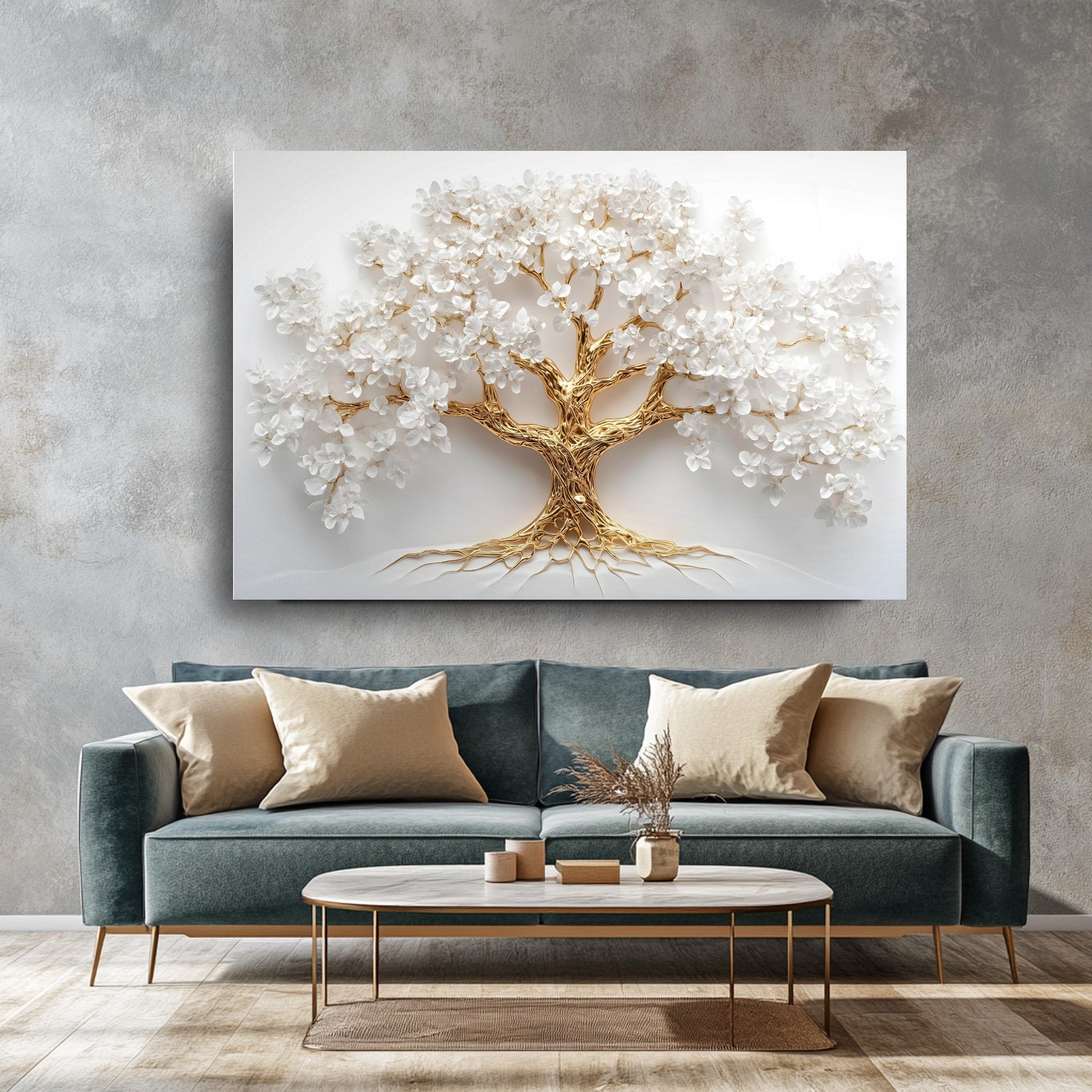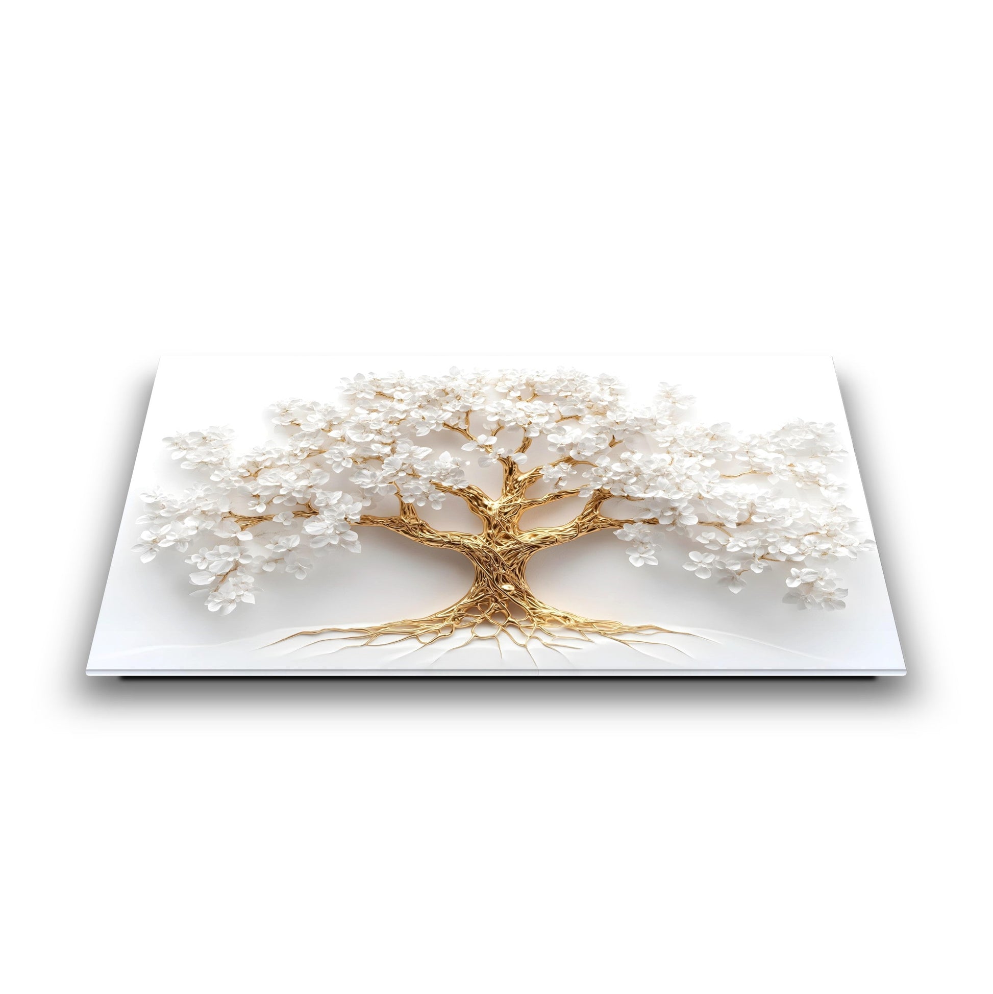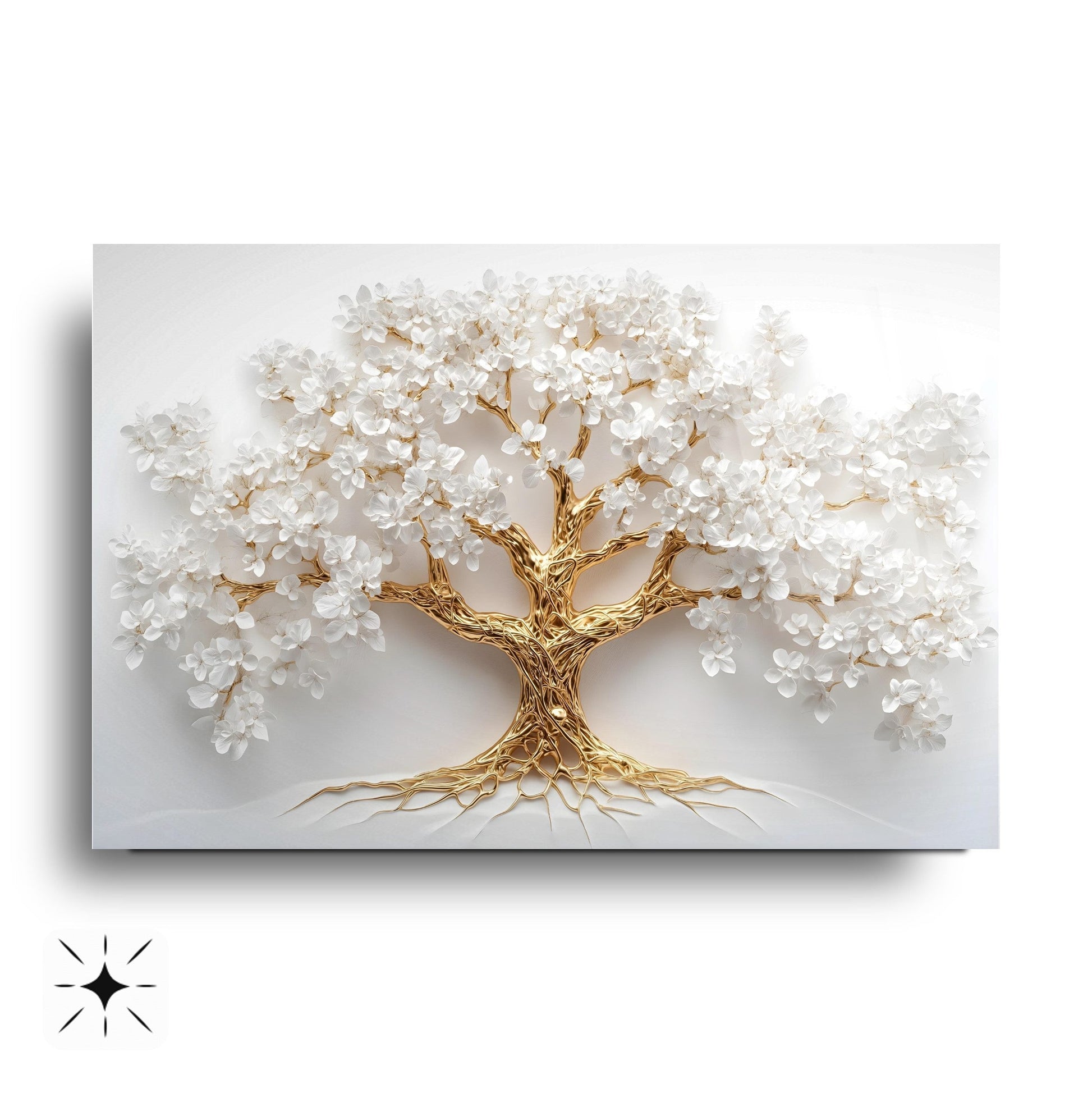 Gold ve beyazın zarafetini 3D kabartmalı hayat ağacı deseniyle birleştiren bu cam tablo, yaşam alanlarına şıklık ve anlam katar. Ultra-clear temperli cam yüzeyi ve UV baskı teknolojisi sayesinde hem dayanıklı hem de uzun ömürlü bir dekoratif seçenektir. Çerçevesiz tasarımı ve kolay montaj imkanı ile modern duvar dekoru arayanlar için idealdir. Cam tablo, hayat ağacı temalı cam baskı, kırılmaz cam dekor ve estetik duvar süsü arayışında olanlara özel bir dokunuş sunar.