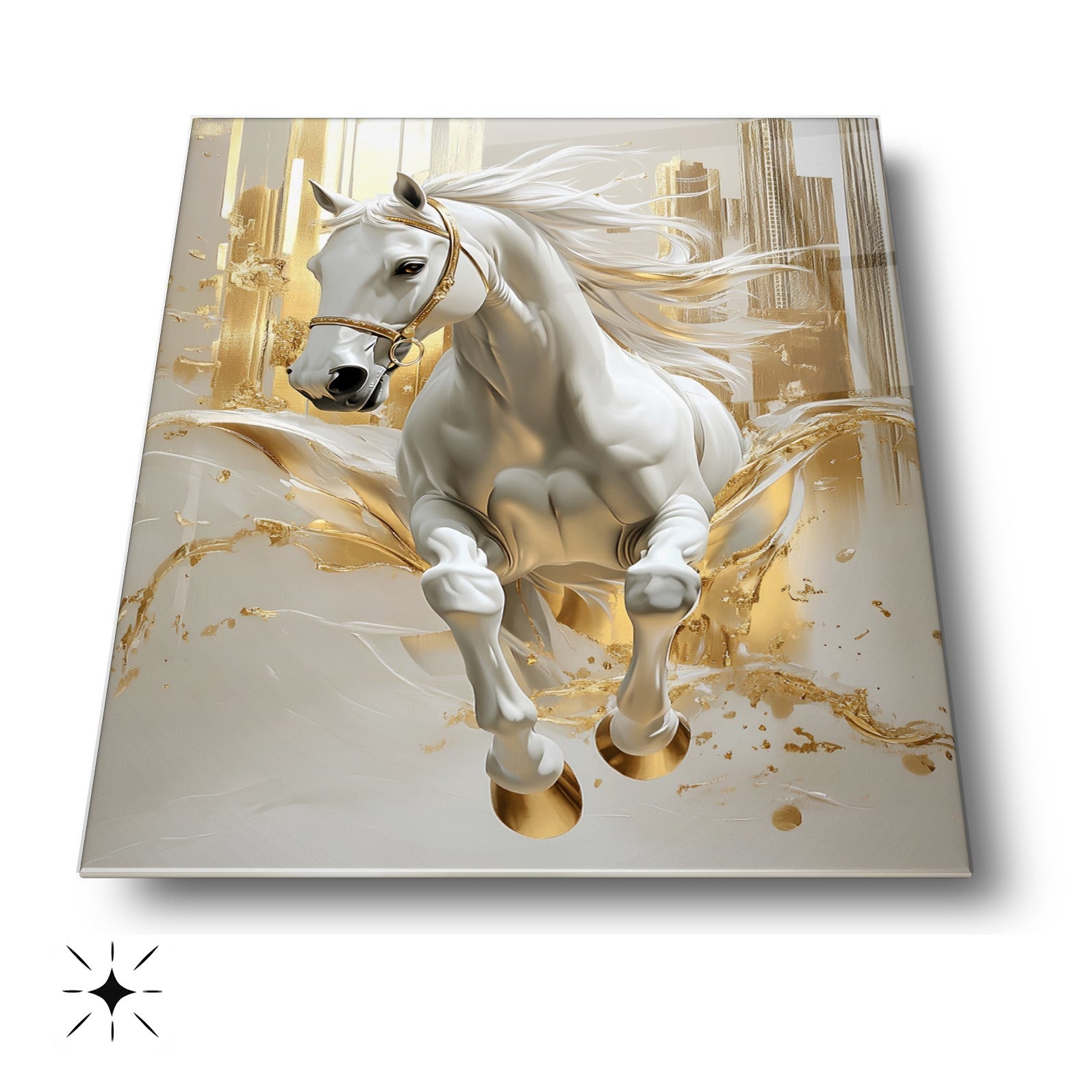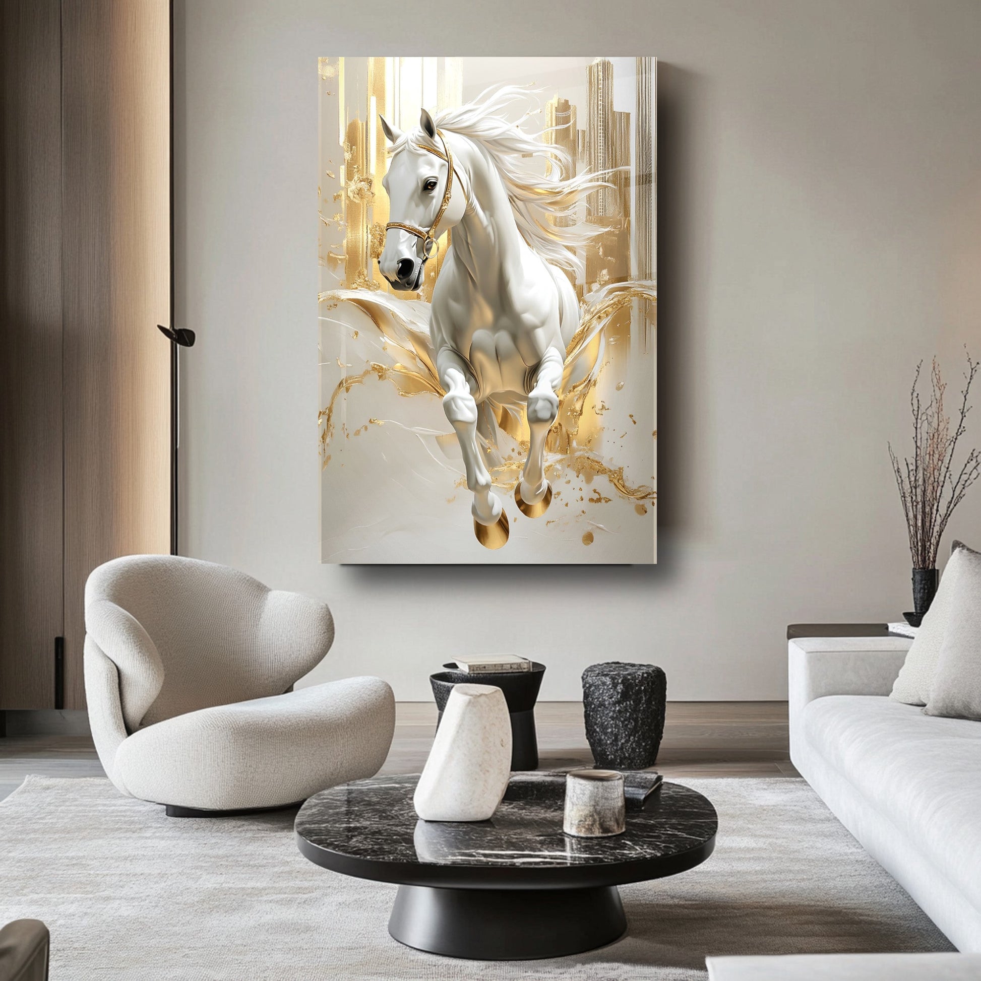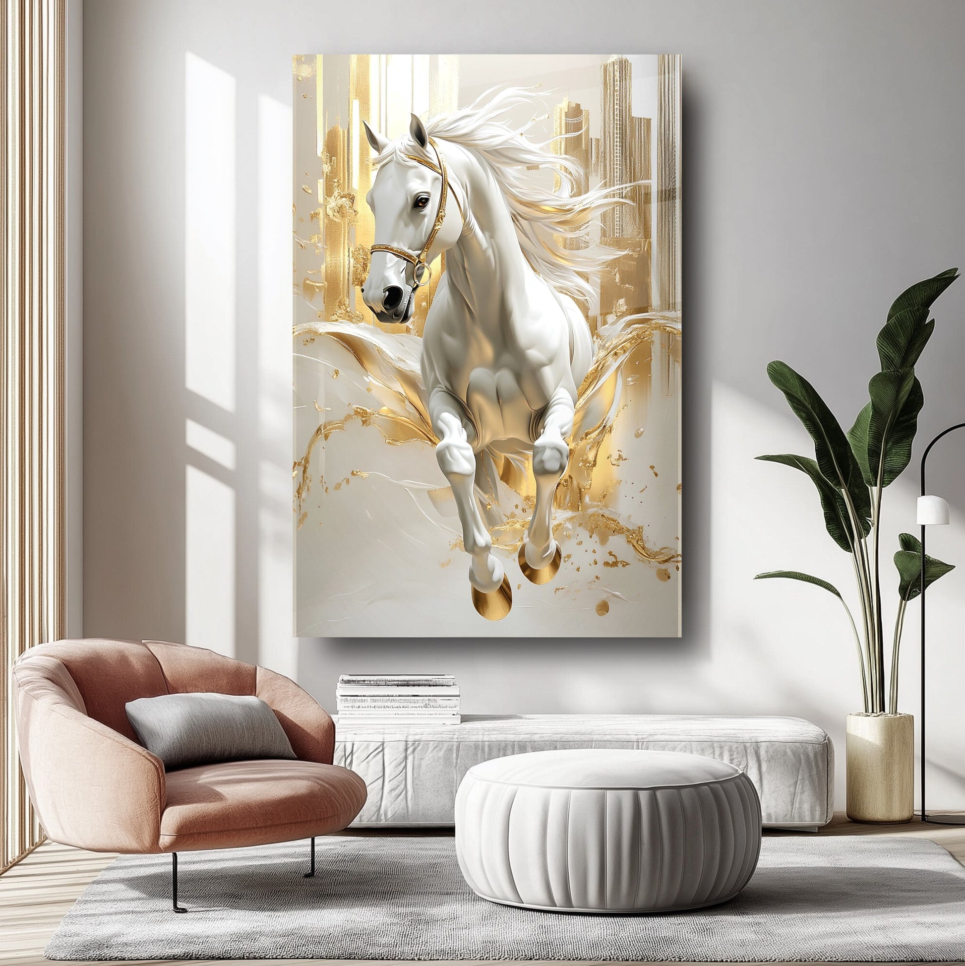 Asaletin ve Lüksün Simgesi: Gold Beyaz At Modern Kırılmaz Cam Tablo