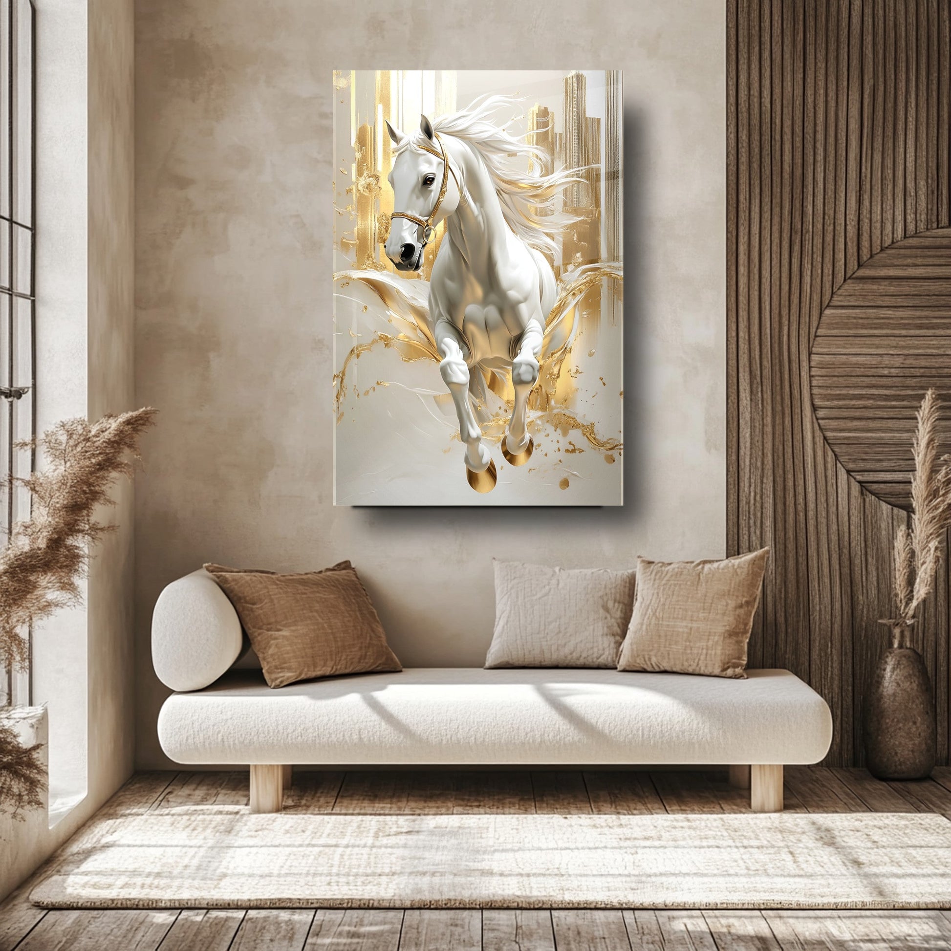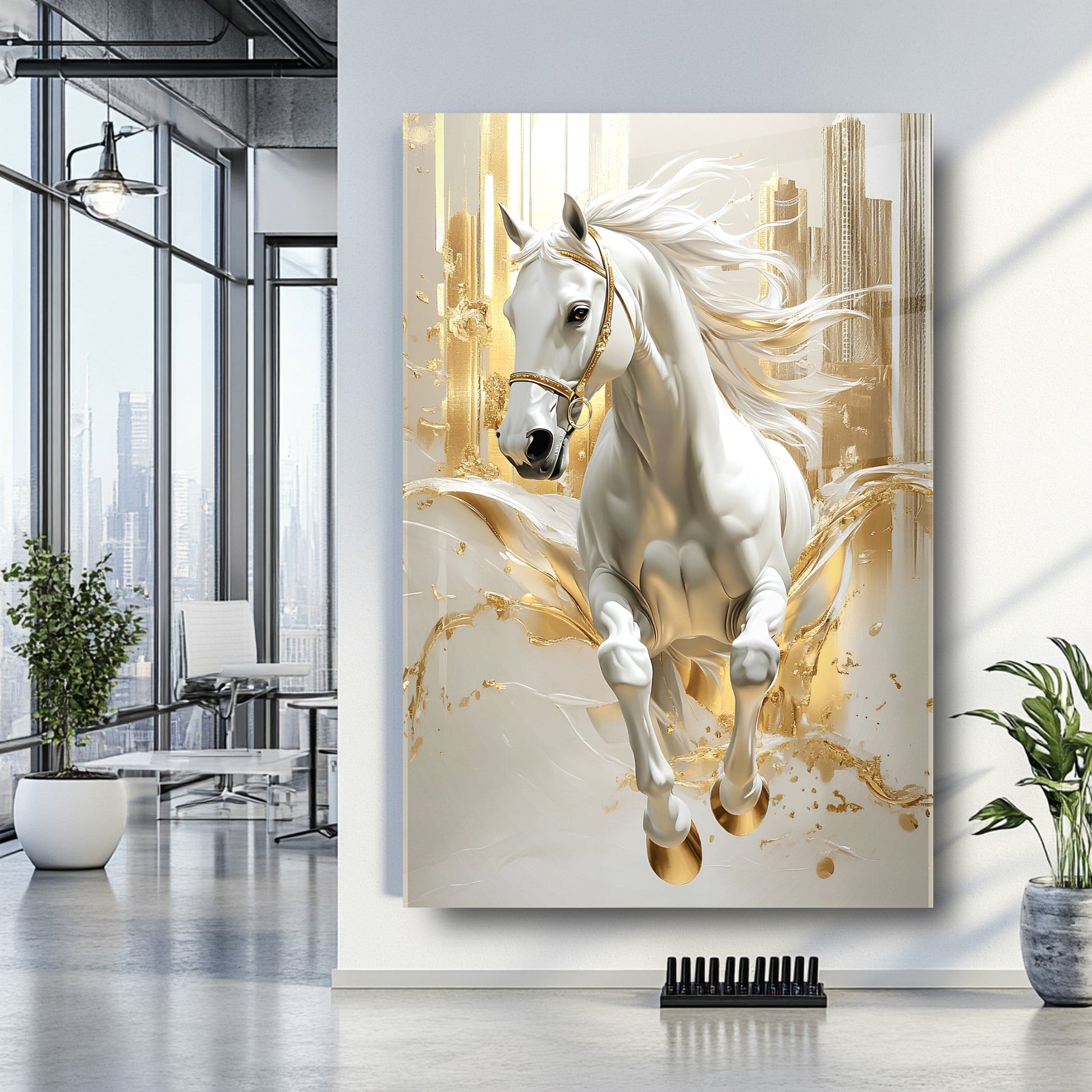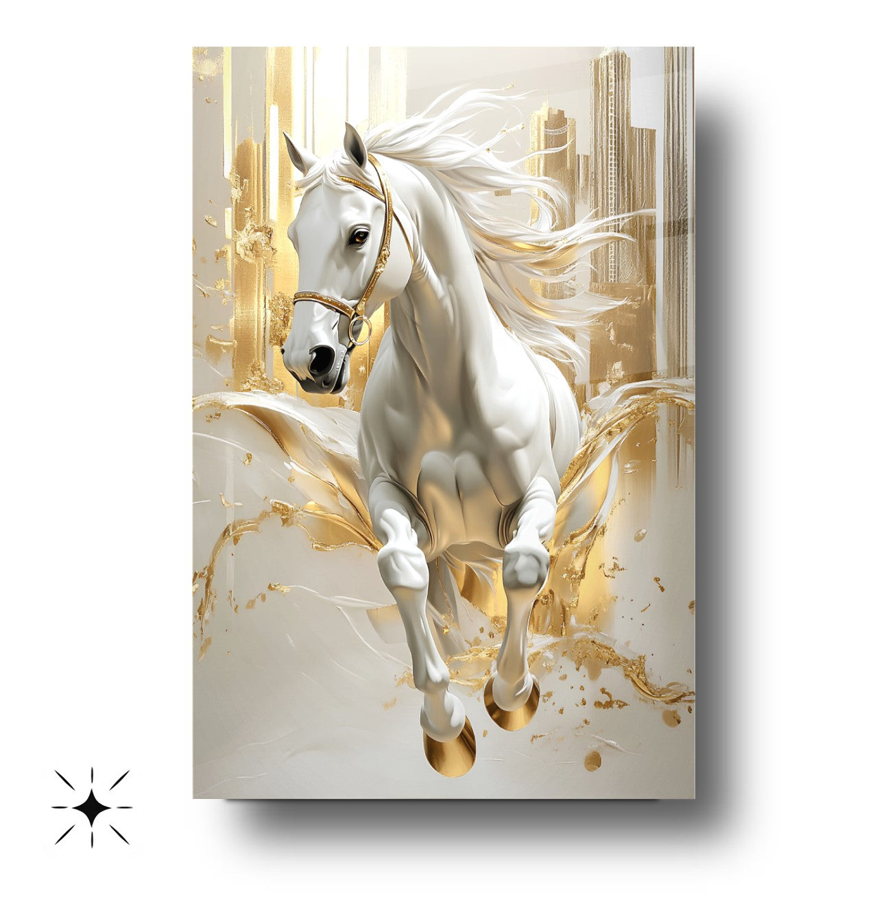 Asaletin ve Lüksün Simgesi: Gold Beyaz At Modern Kırılmaz Cam Tablo