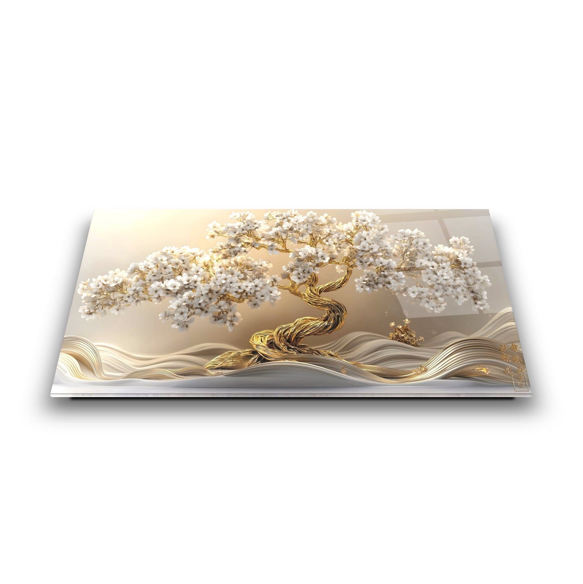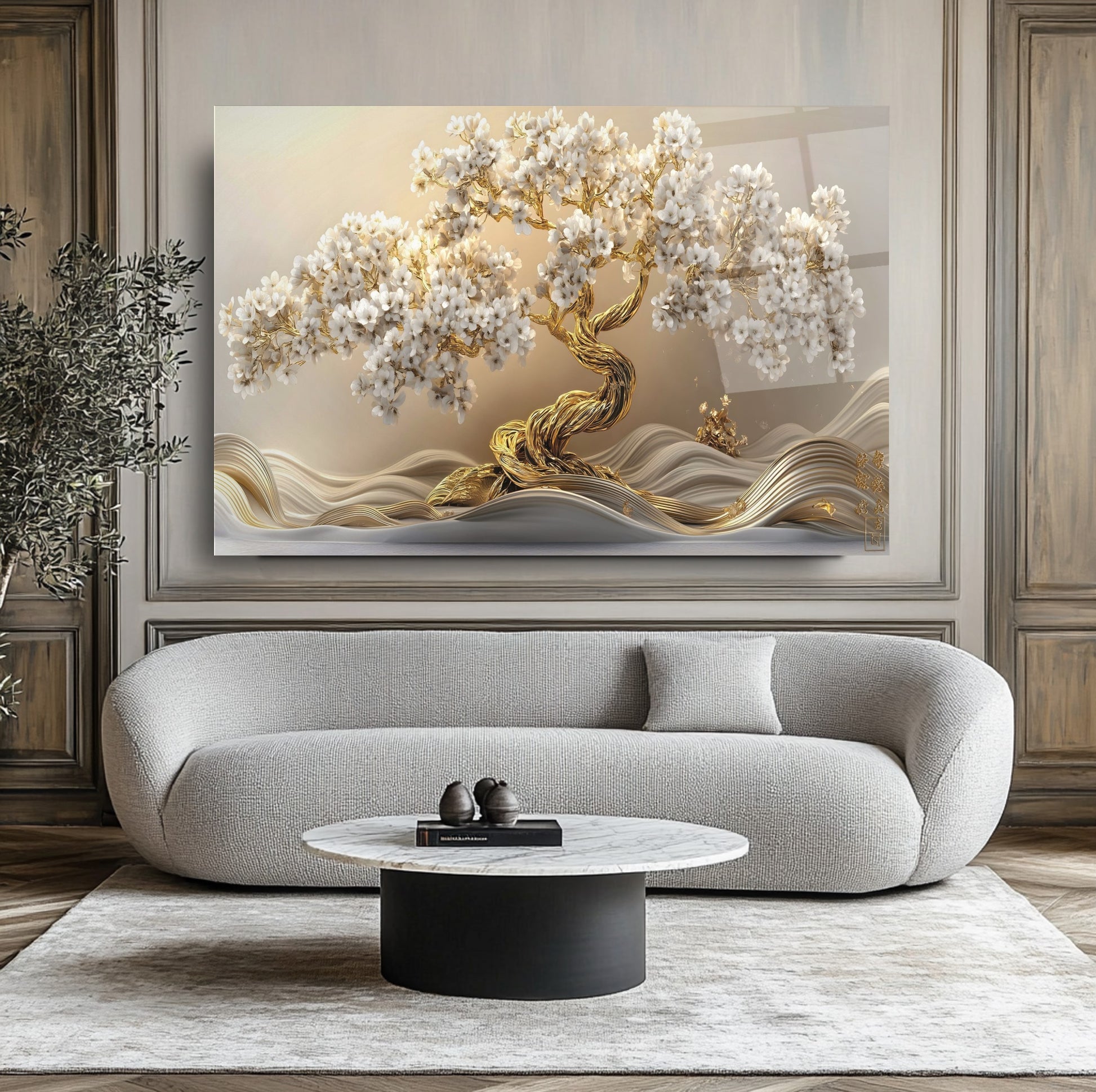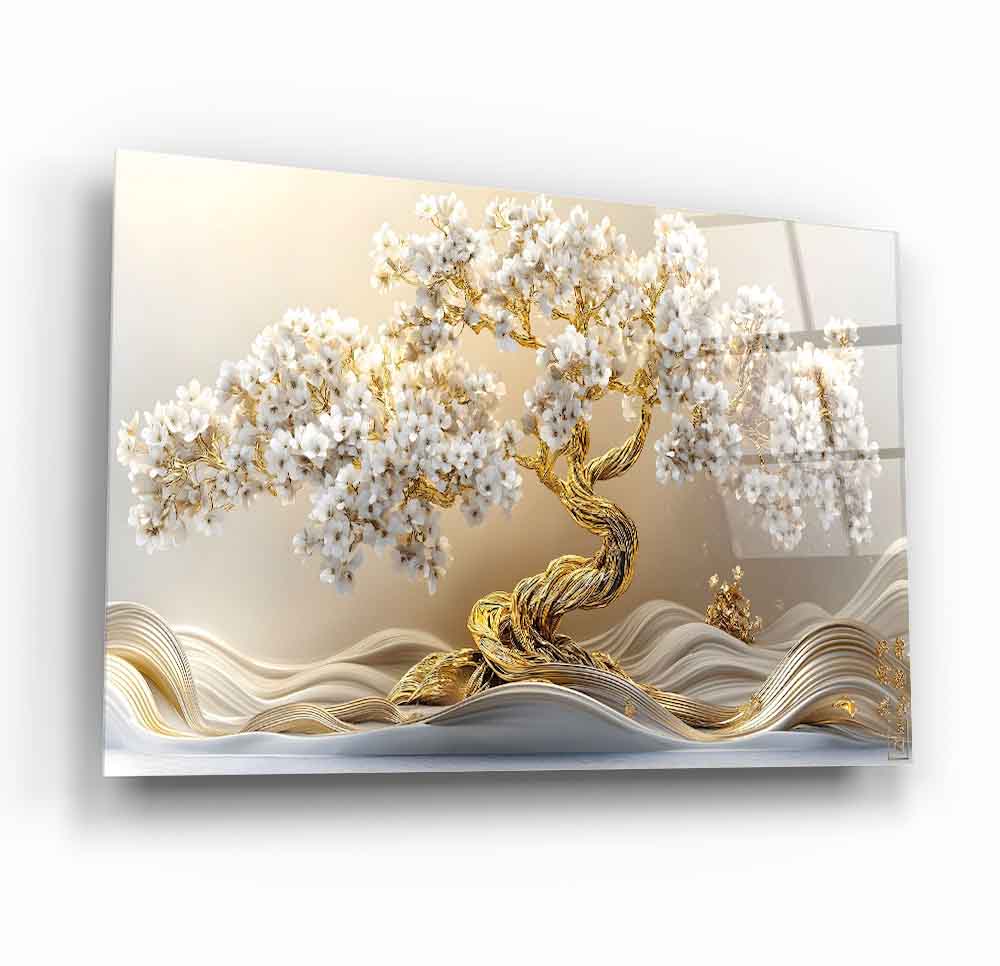 Mekanlarınıza Beyaz Saflık ve Altın Işıltılı Bir Yaşam: Gold Beyaz Hayat Ağacı Cam Tablo