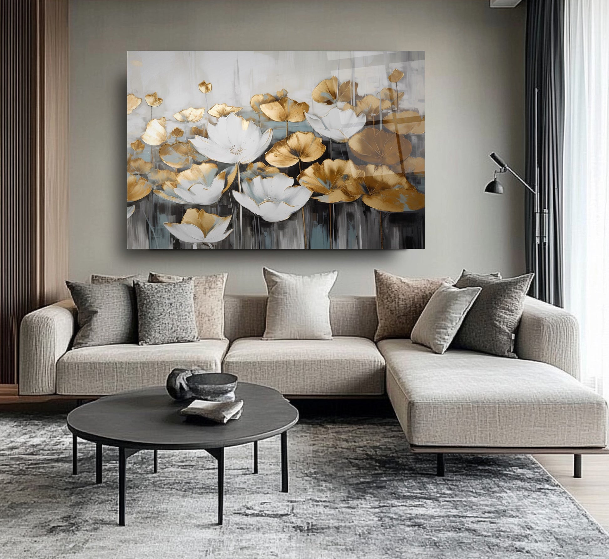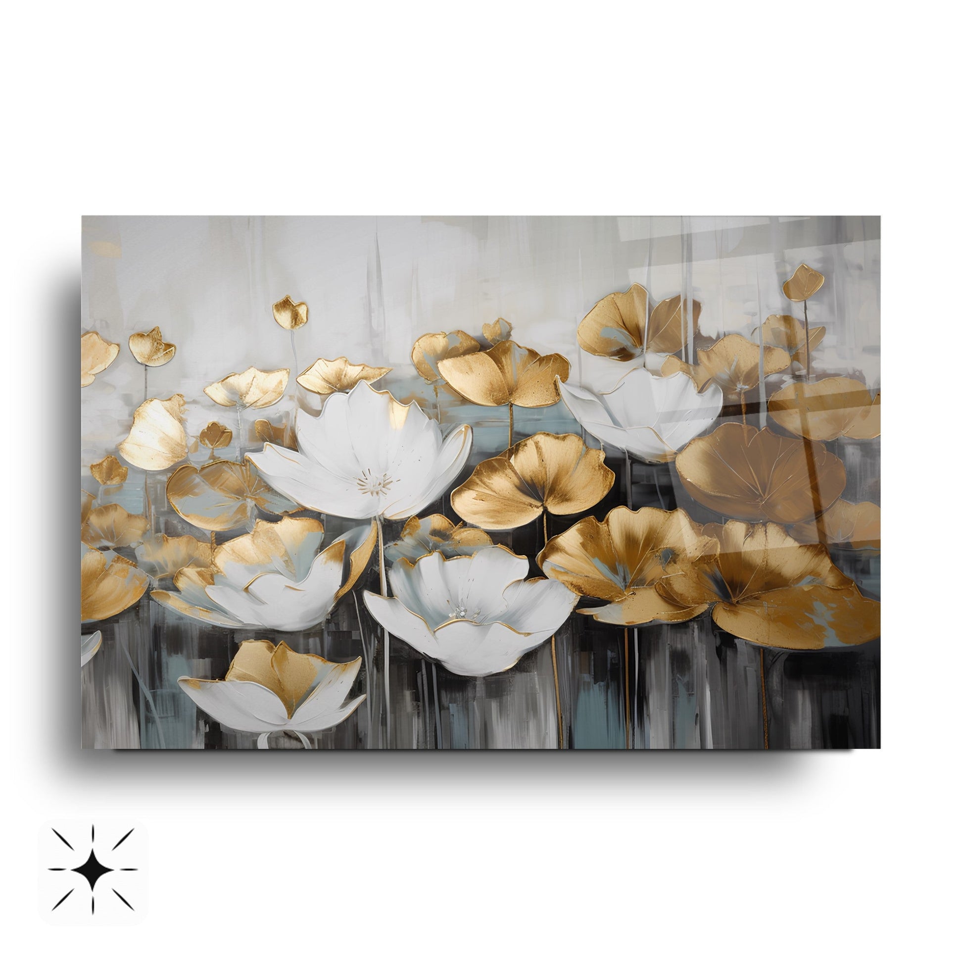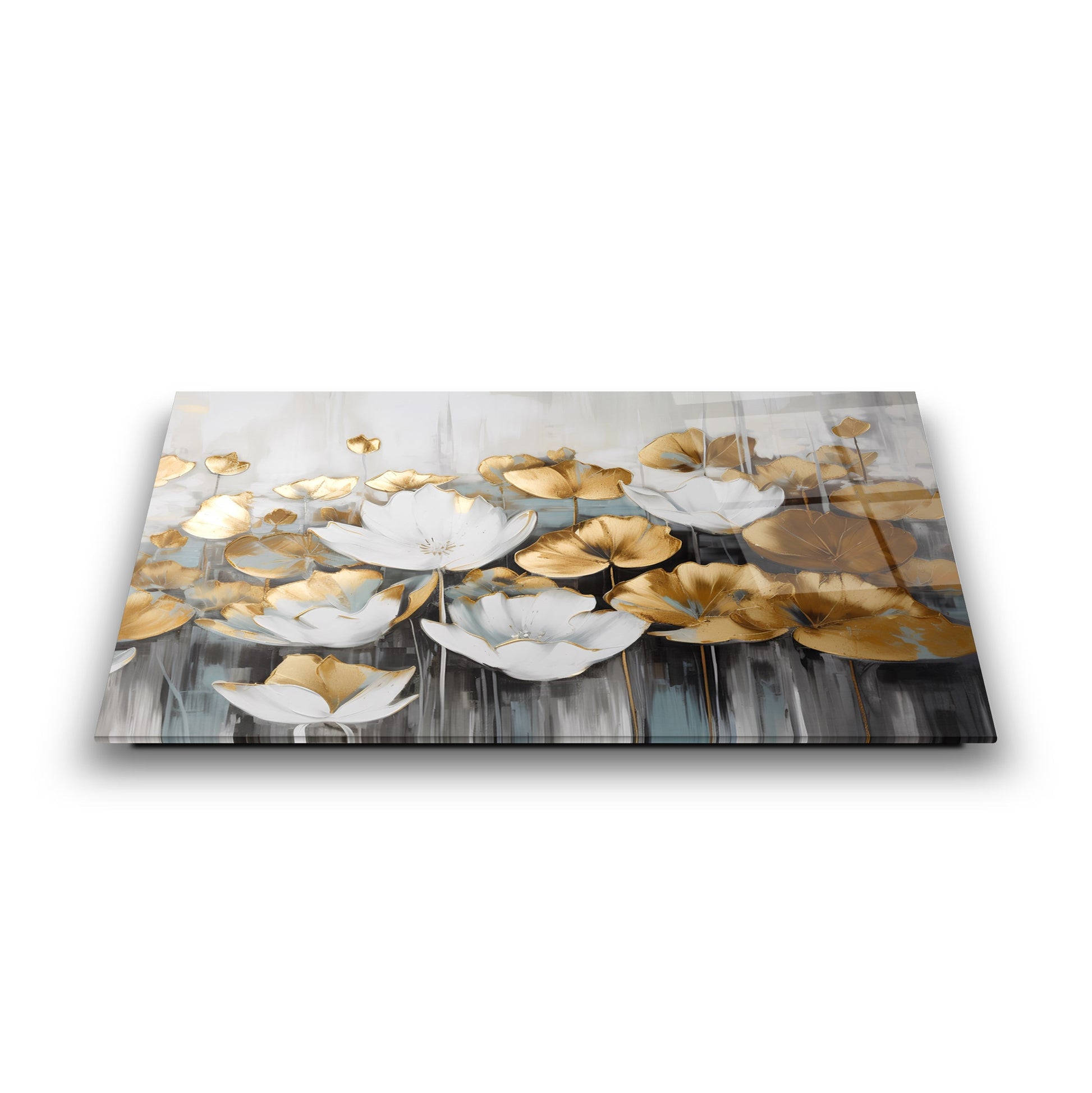 Beyaz çiçek desenleriyle bezeli bu şık cam tablo, altın detayları ve kabartmalı dokusuyla mekânınıza zarif bir atmosfer katıyor. HD UV baskı teknolojisiyle temperli cam üzerine yapılan baskı, renklerin solmadan uzun süre canlı kalmasını sağlar. Çerçevesiz modern tasarımı sayesinde salon, ofis veya antre gibi alanlarda estetik bir odak noktası oluşturur. Doğa ve zarafeti bir arada arayanlar için ideal bir seçimdir.