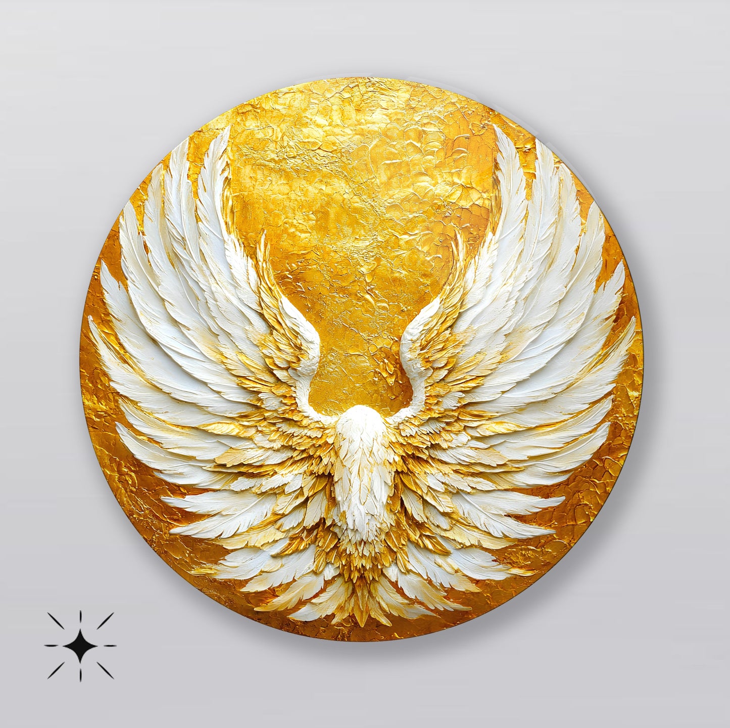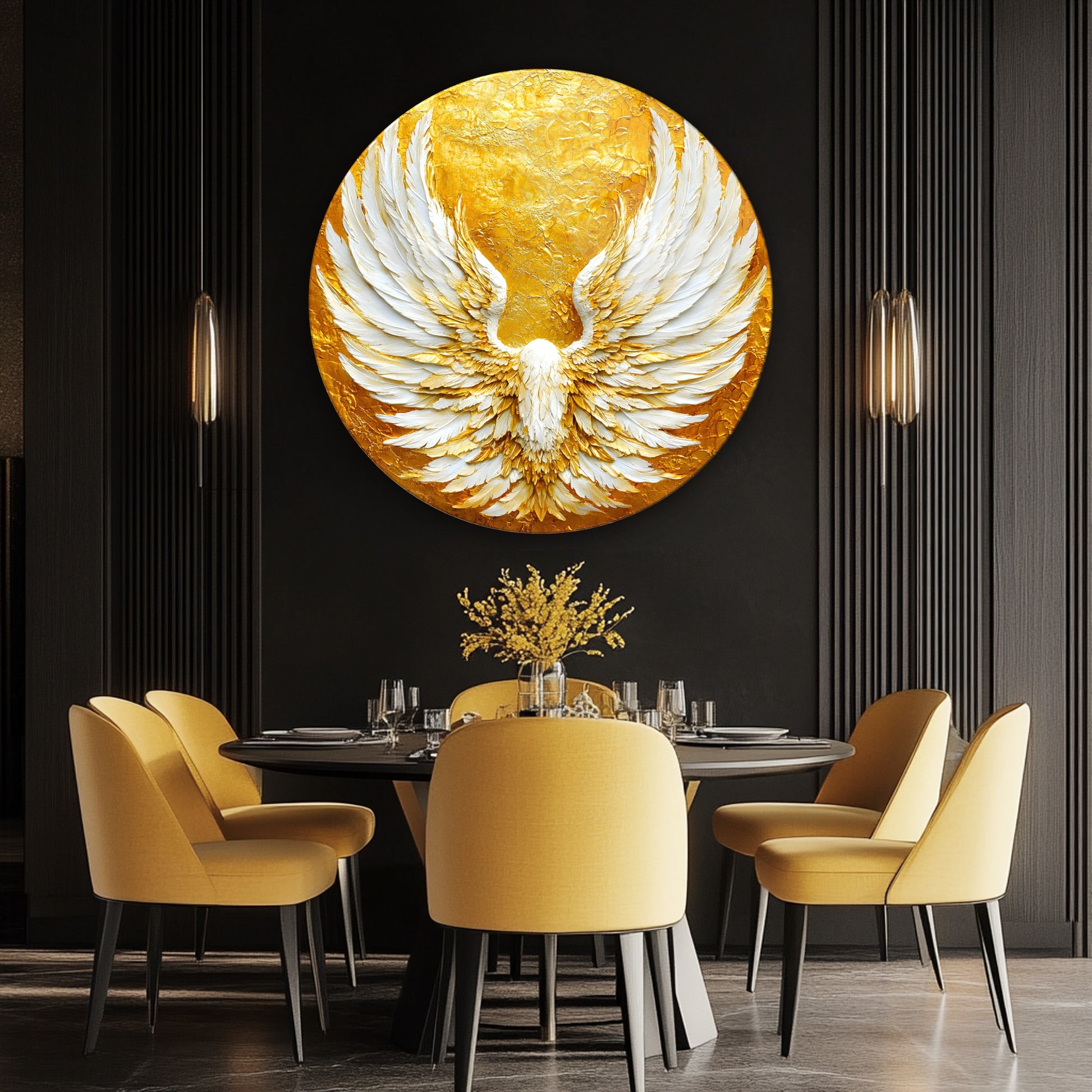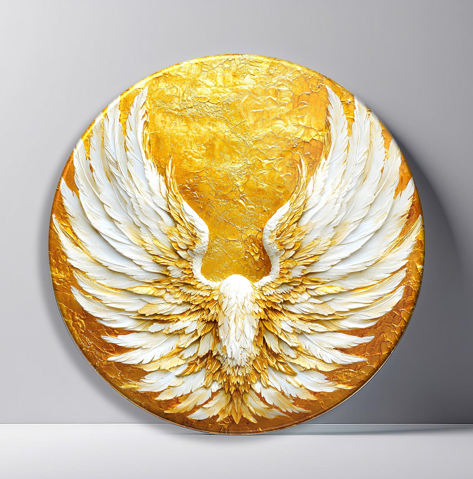 Gold Beyaz Melek Kanadı Yuvarlak Cam Tablo