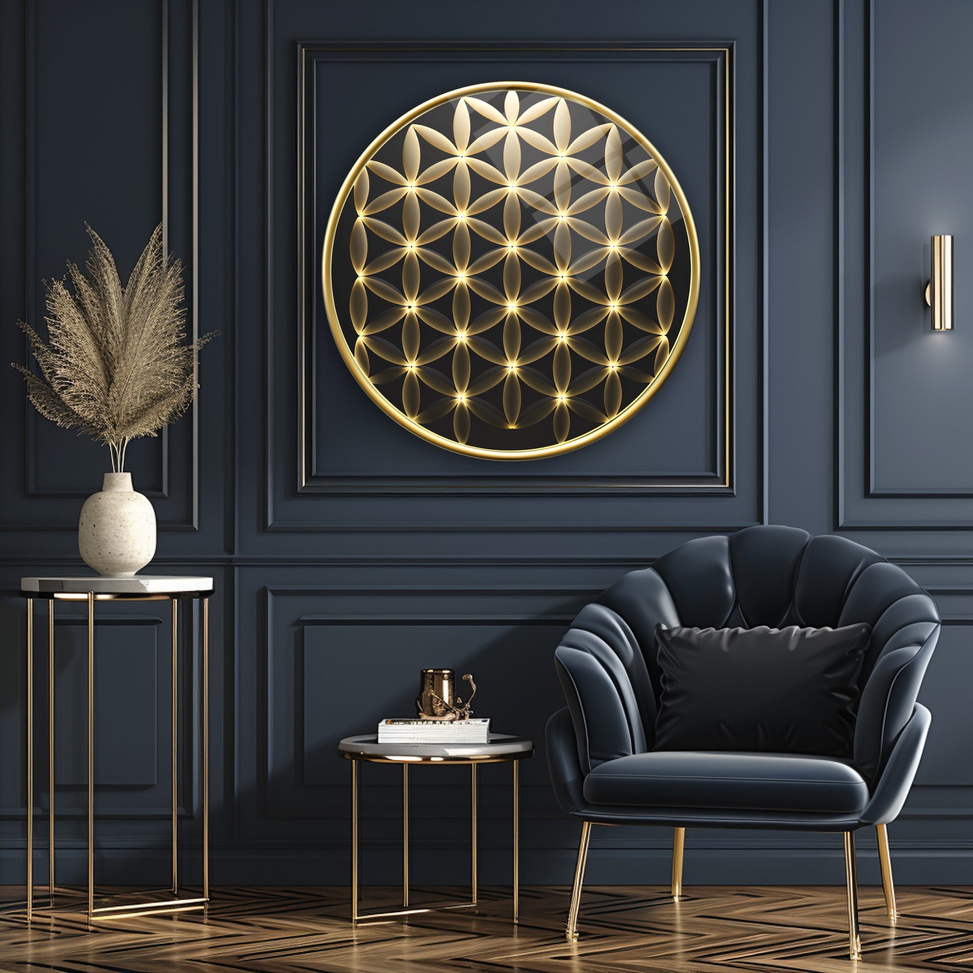 Gold desenlerin etnik ve mistik yaşam çiçeği motifiyle harmanlandığı bu yuvarlak cam tablo, hem ev hem de ofis dekorasyonlarına zarif ve anlamlı bir dokunuş katar. CamDeko’nun kırılmaz temperli camına uygulanan gerçek UV baskı sayesinde renkler canlı kalır ve tablo uzun ömürlüdür. Modern tasarımıyla yaşam alanlarınızda mistik bir atmosfer yaratır, özellikle salon, çalışma odası veya bekleme alanları için idealdir. Estetik ve dayanıklılığı bir arada sunan şık bir dekorasyon seçeneği.