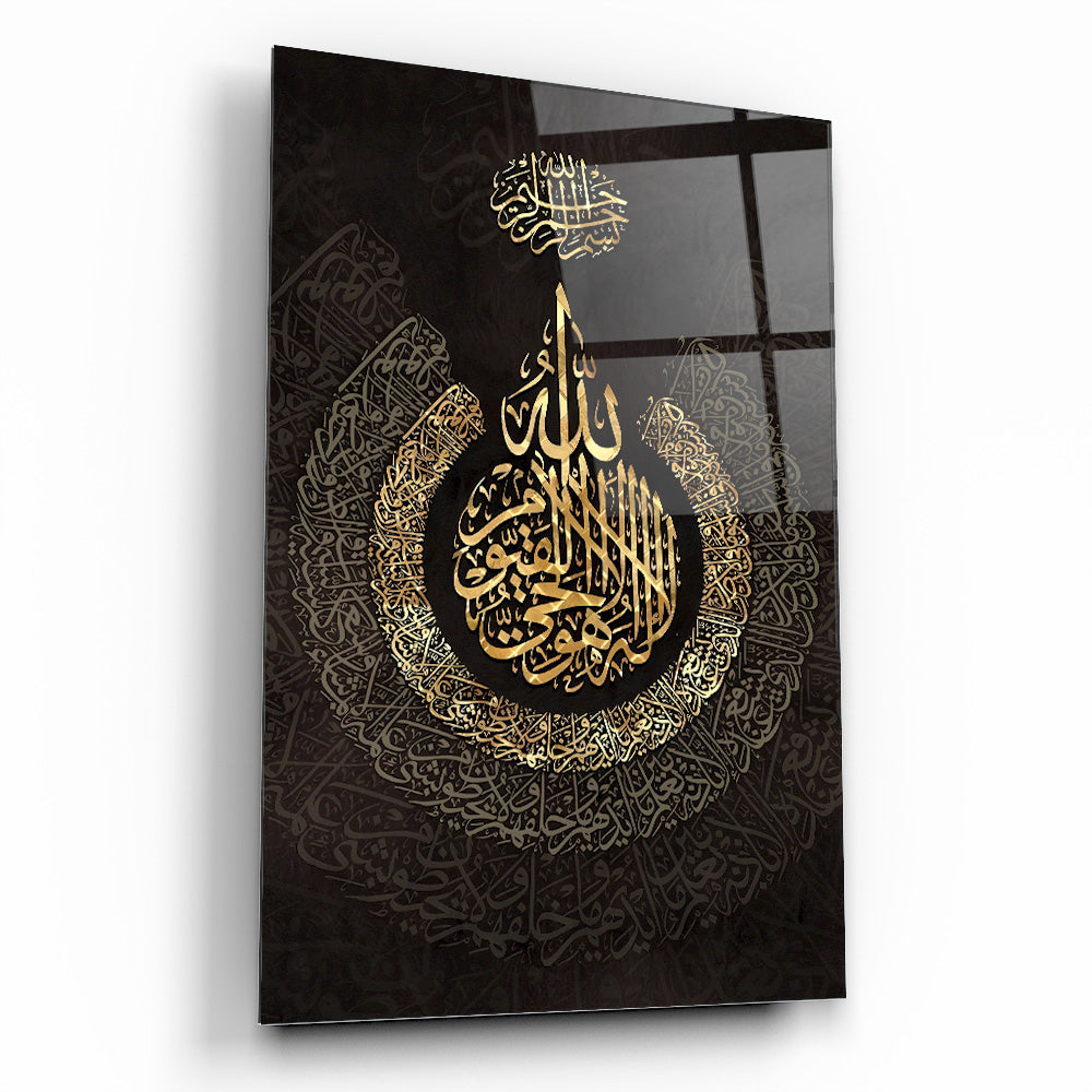 Mekanlarınıza Manevi Bir İhtişam Katın: Gold Detay Ayetel Kürsi Dini İslami Cam Tablo