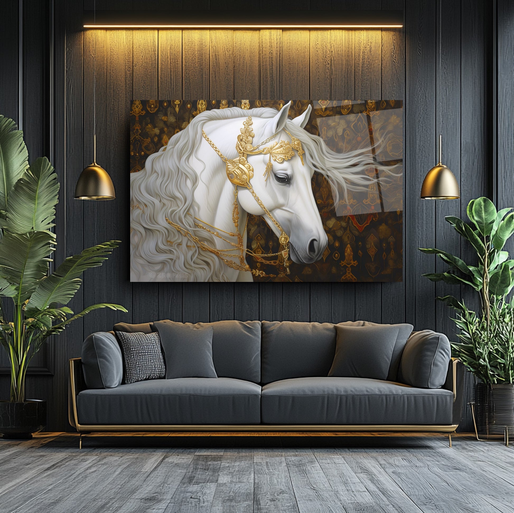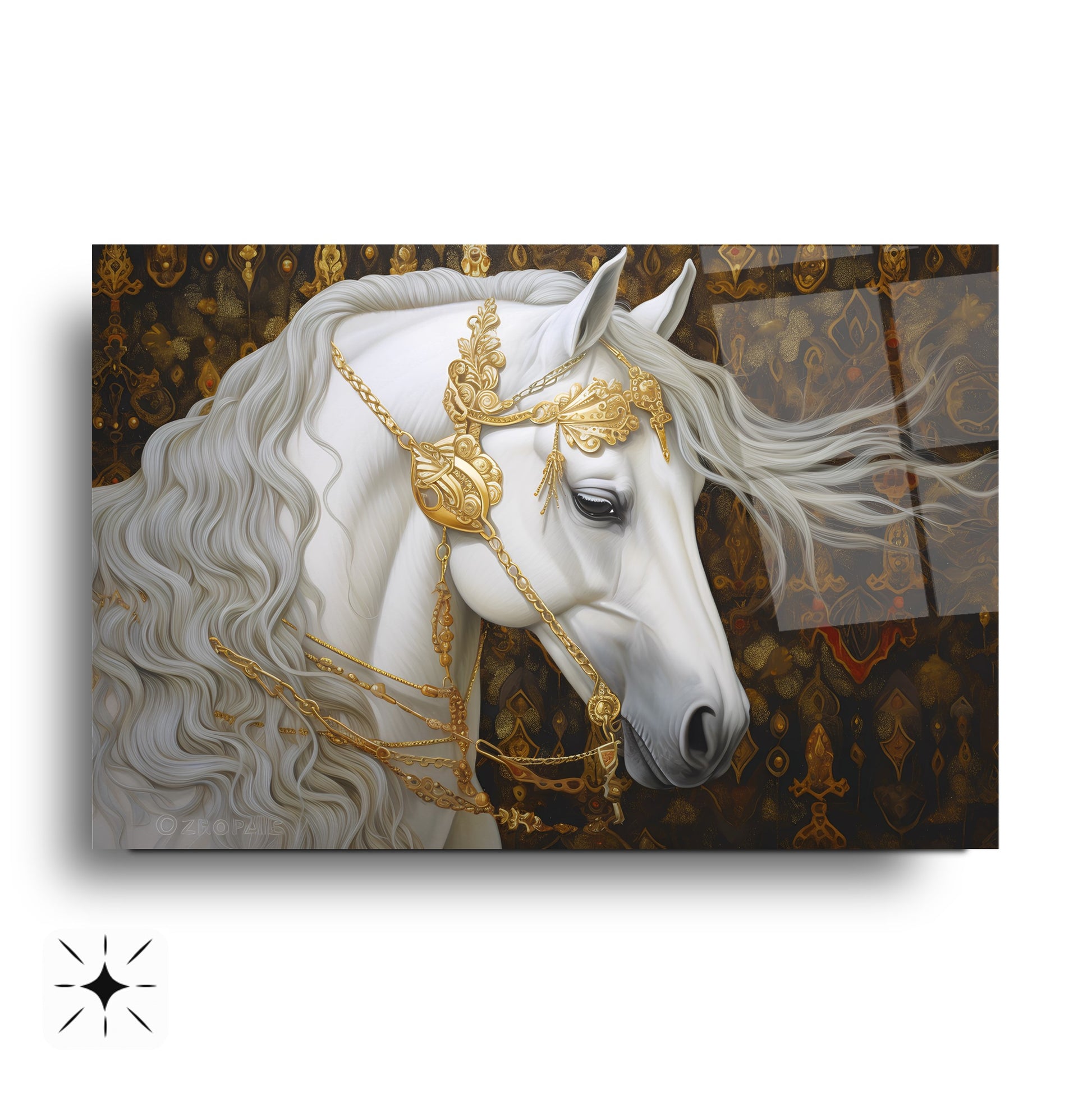 Derin siyah zemin üzerinde canlı beyaz bir at figürü, altın detaylarla zarif bir etki oluşturuyor. Akıcı fırça darbeleri ve kıvrımlı gövde formu, tablonun her açıdan dinamizm ve hareket hissi vermesini sağlıyor. Ultra-clear temperli cam ve HD UV baskı sayesinde renkler solmadan kalıyor; çerçevesiz minimal tasarımıyla salon, ofis veya antre gibi alanlarda estetik bir odak noktası sunar. Güç, zarafet ve kalite arayanlar için ideal bir modern duvar dekorudur.