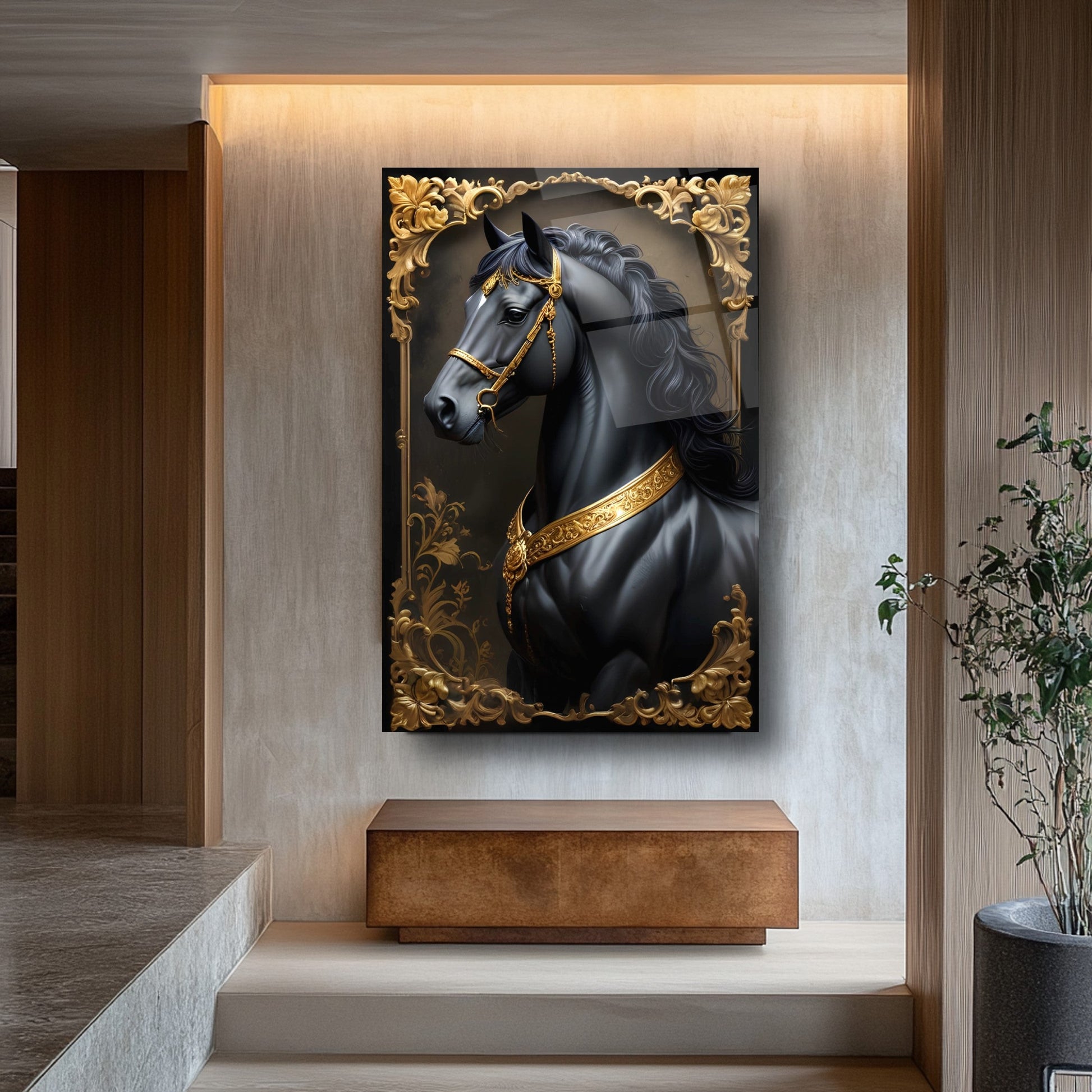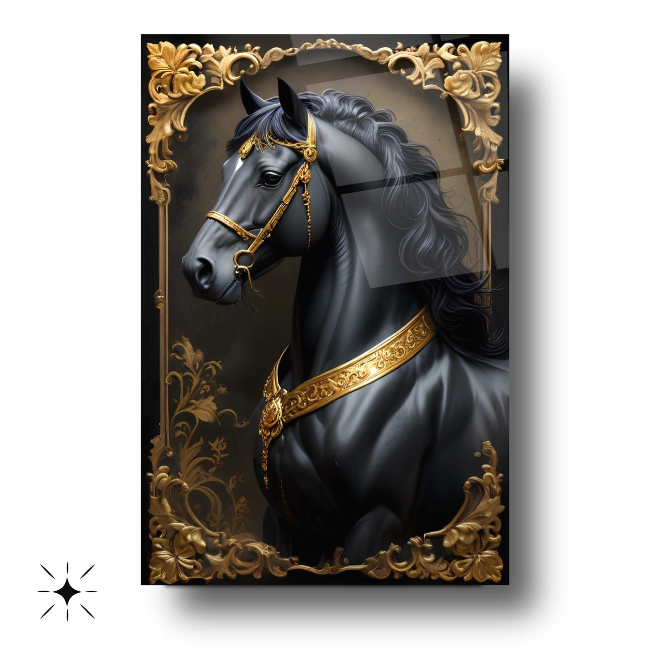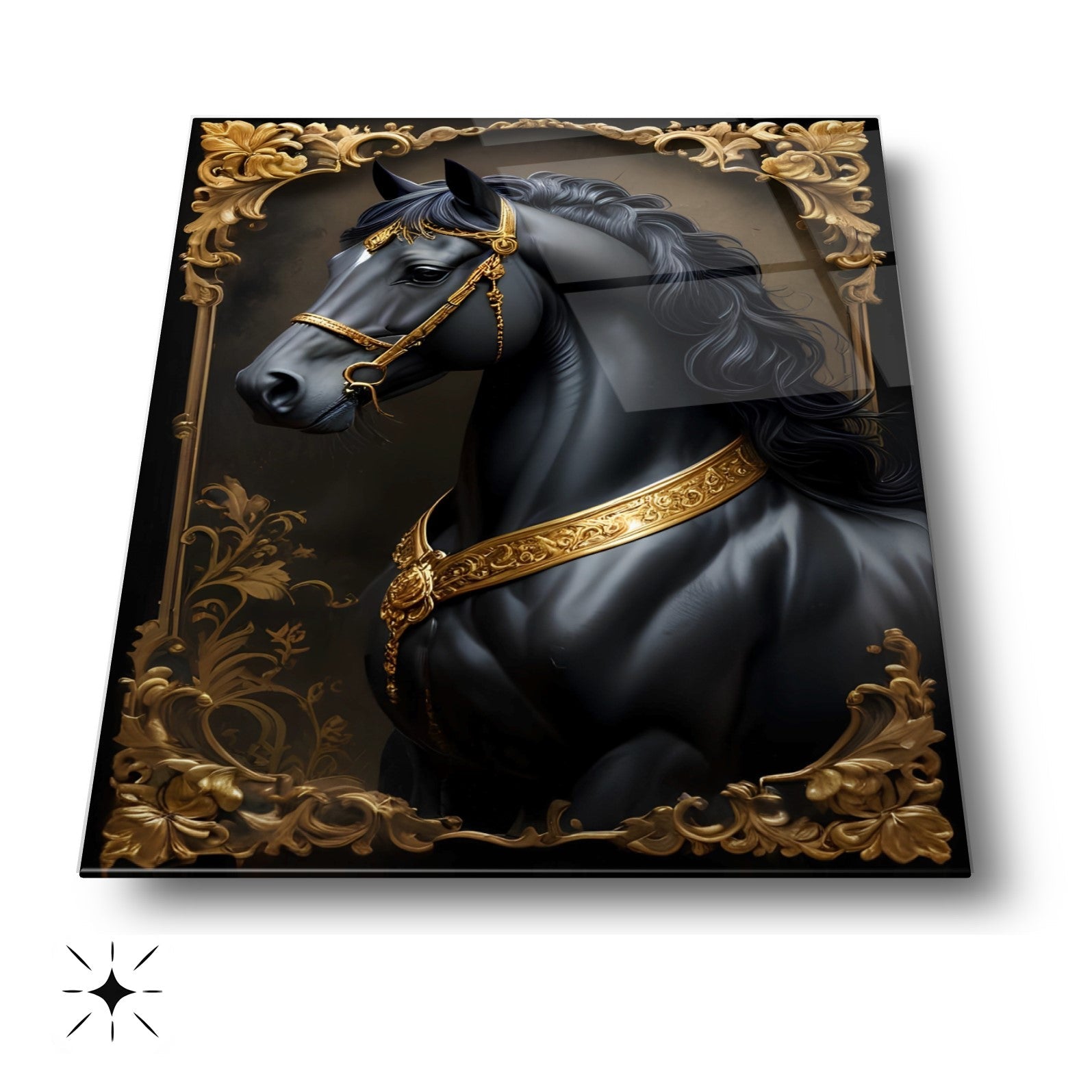 Vahşi Asaletin Lüks Yorumu: Gold Detay Çerçeve Siyah At Cam Tablo