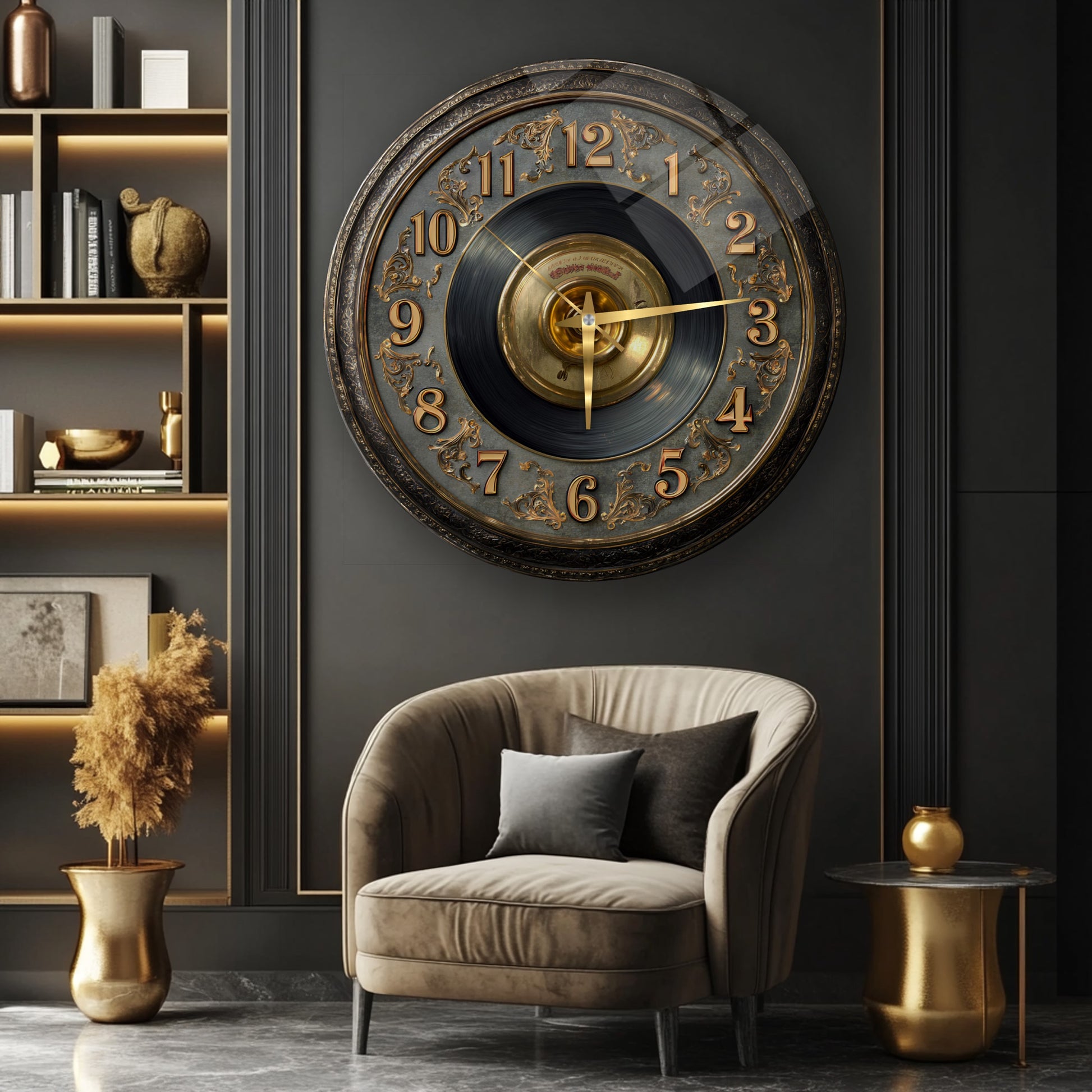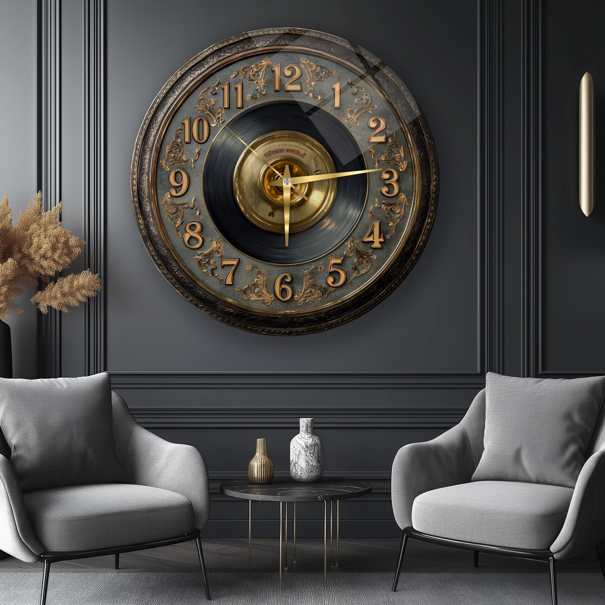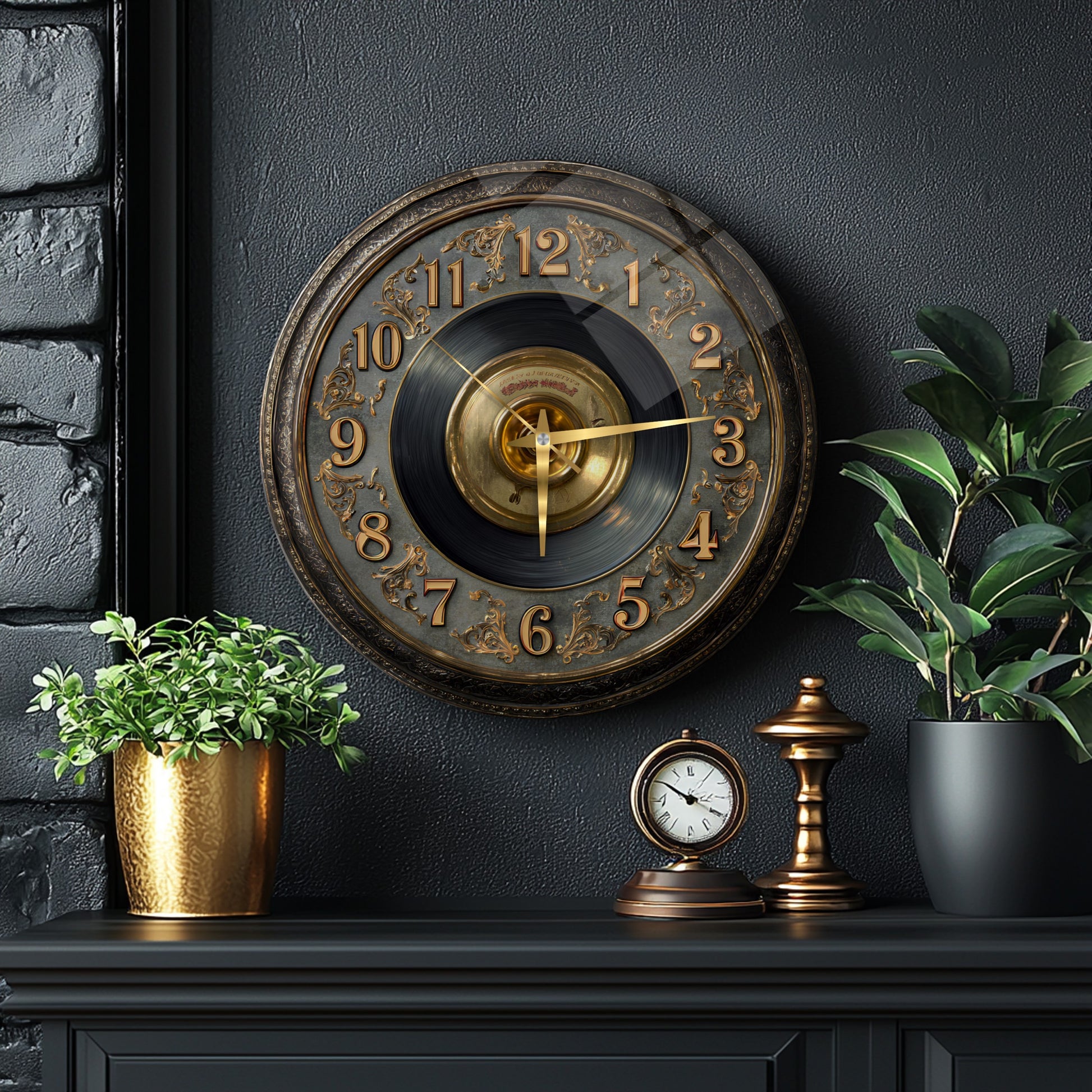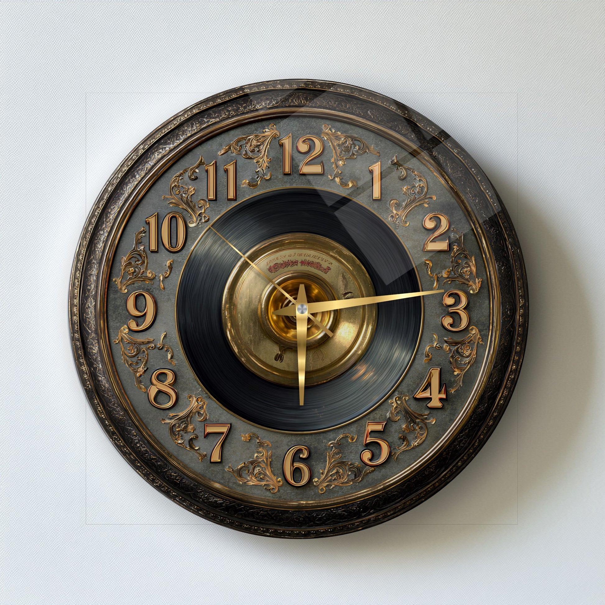 Gold Detay Taş Plak Cam Duvar Saati