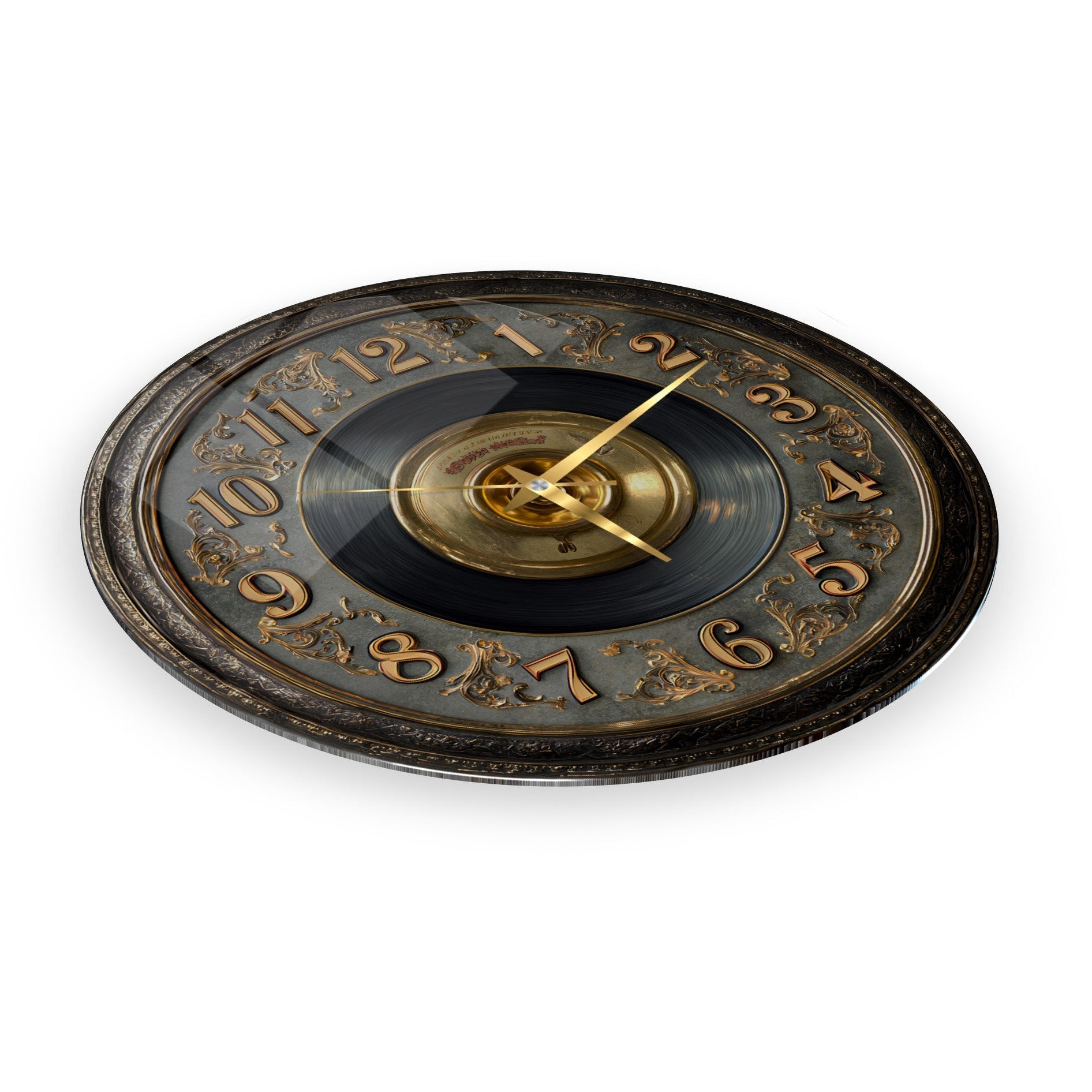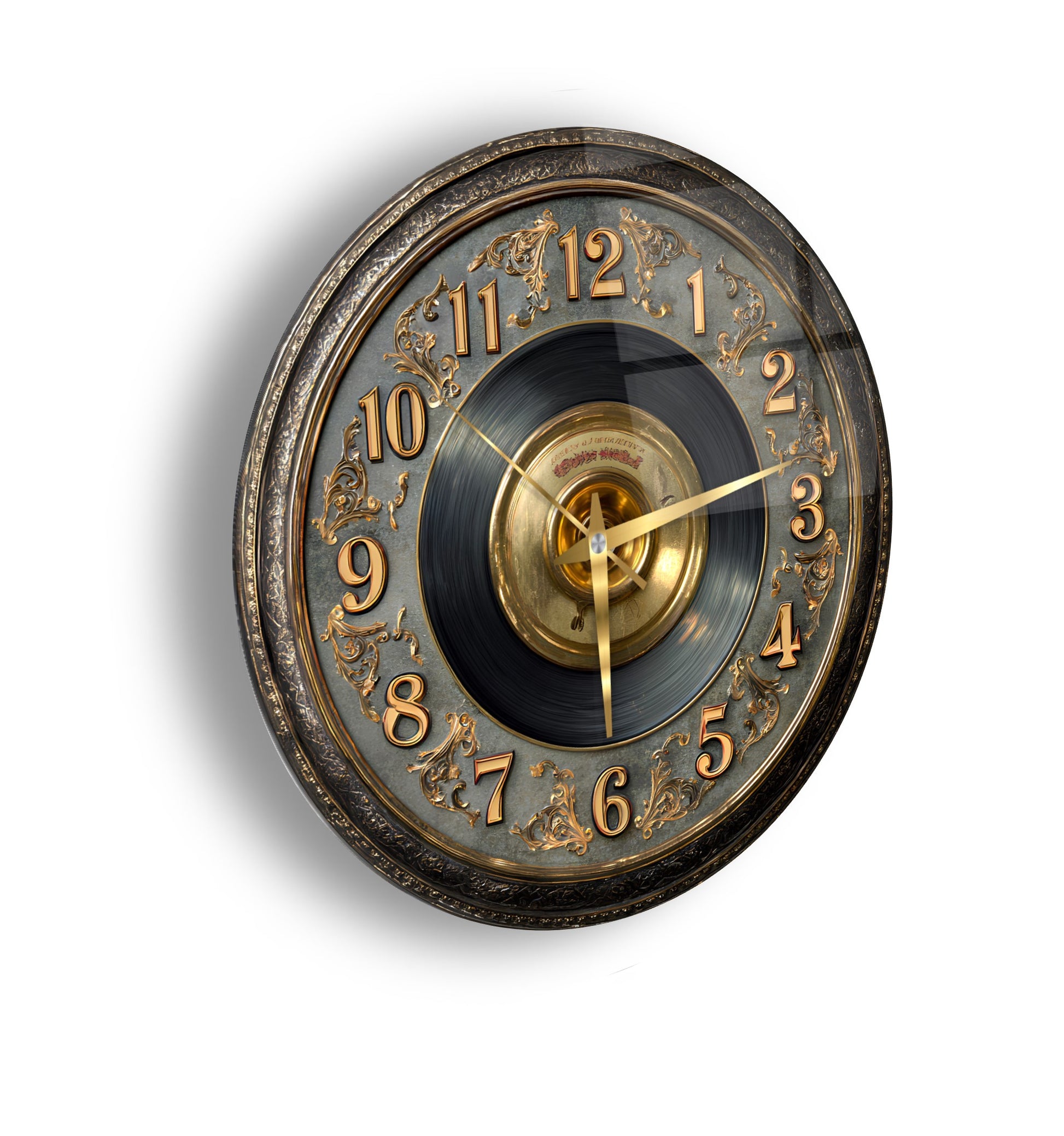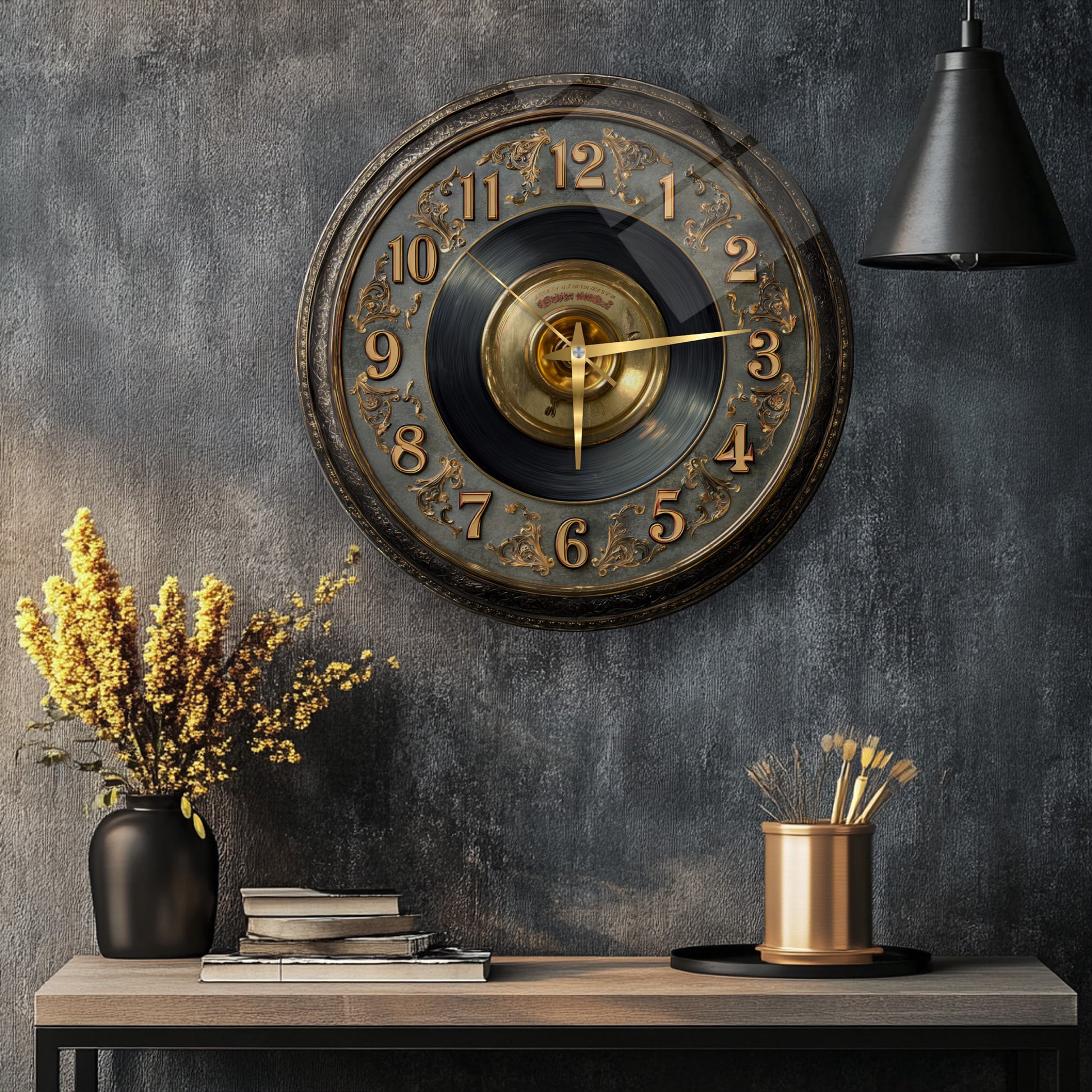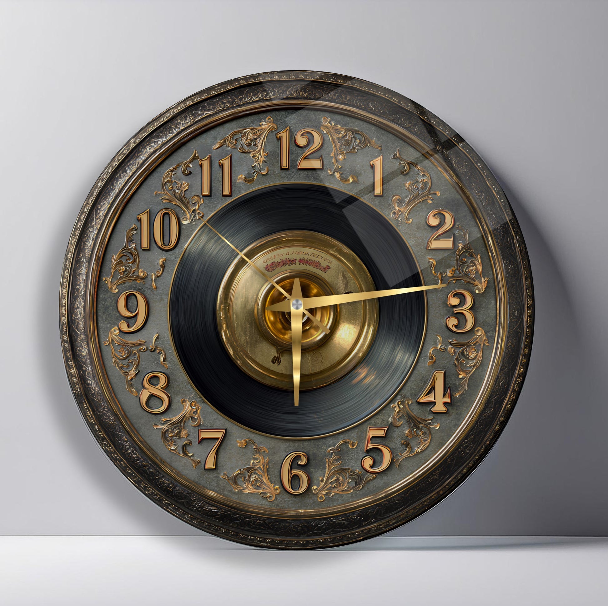 Gold Detay Taş Plak Cam Duvar Saati
