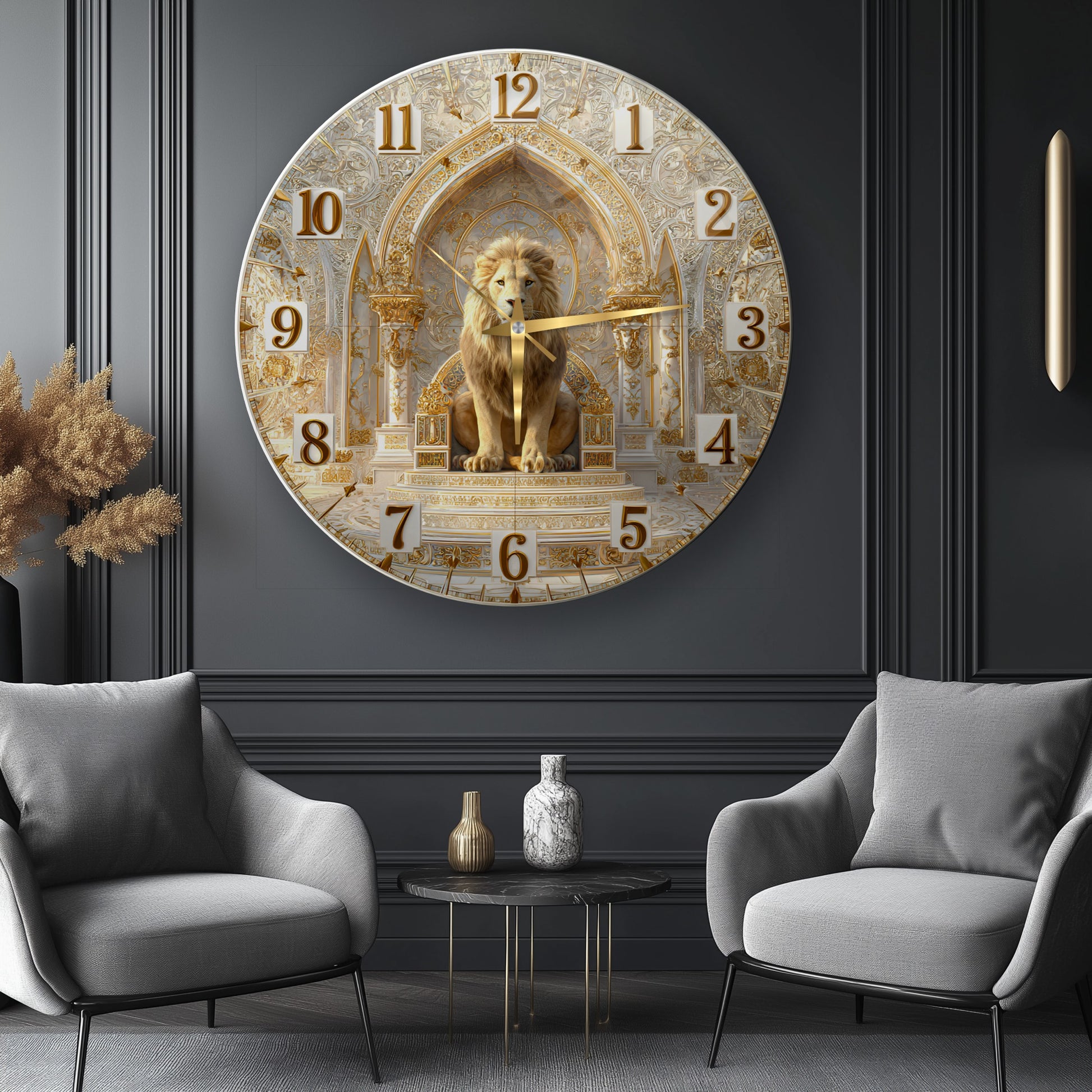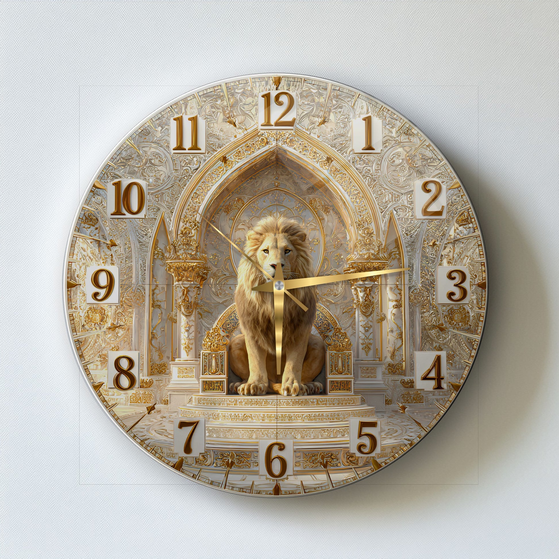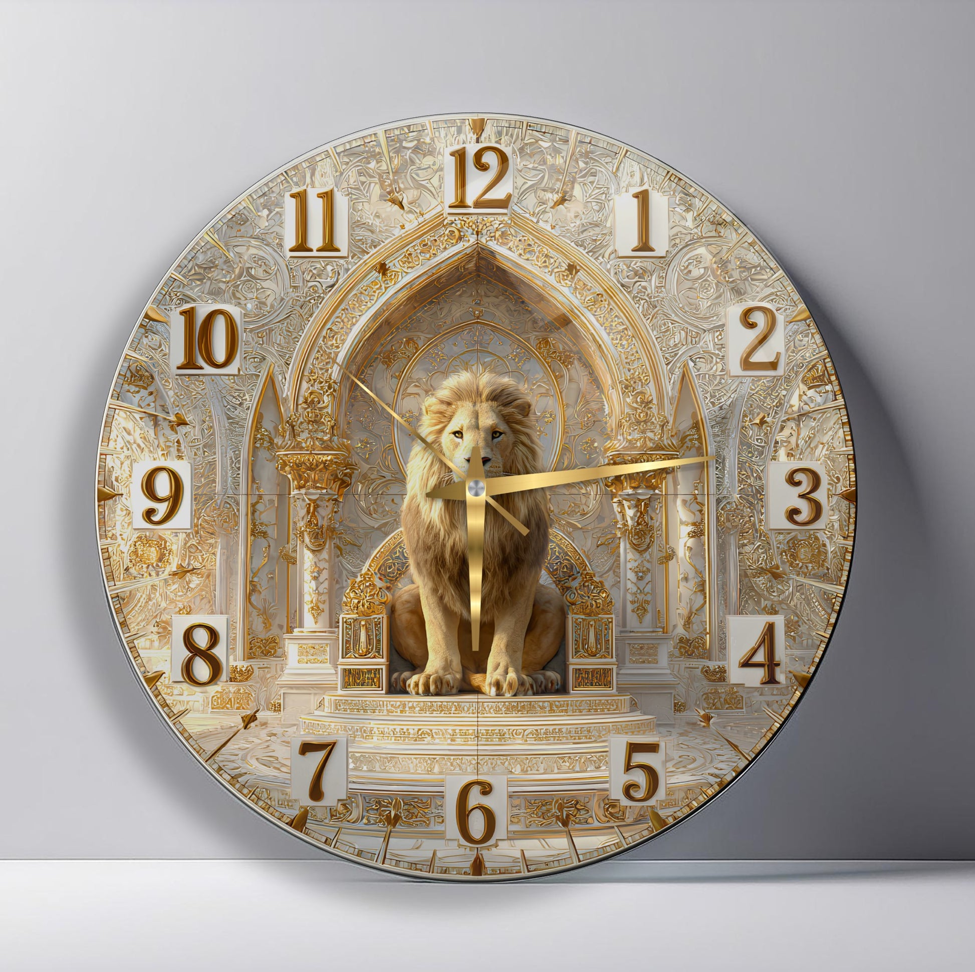 Gold Detay Aslan Cam Duvar Saati