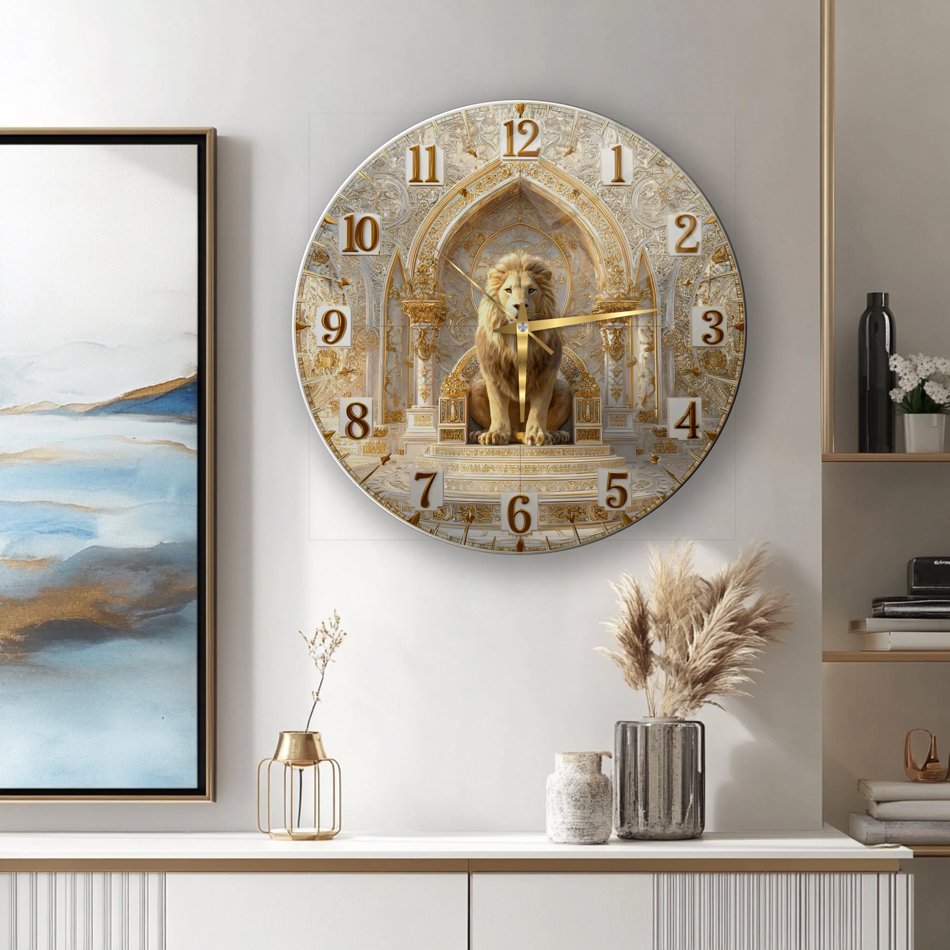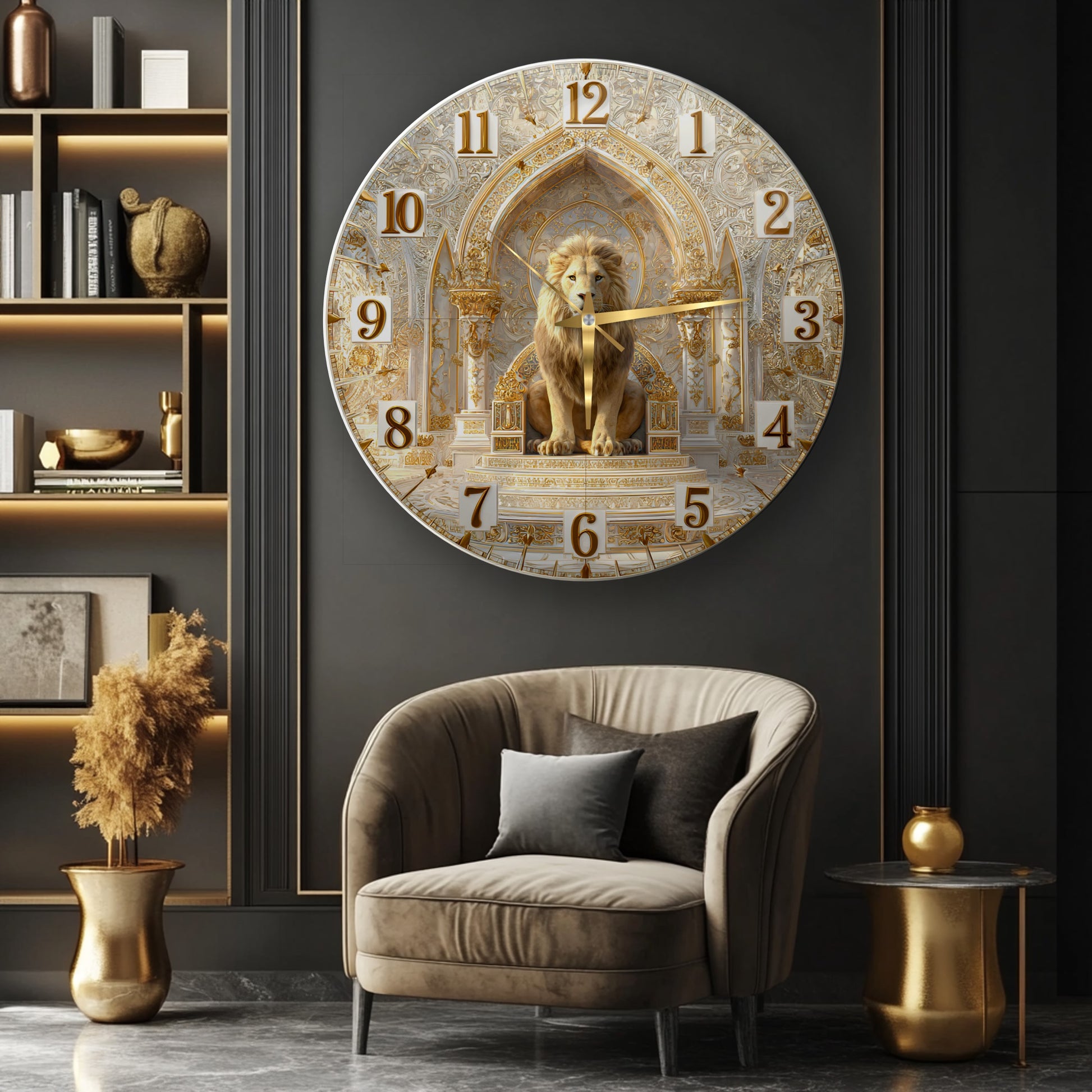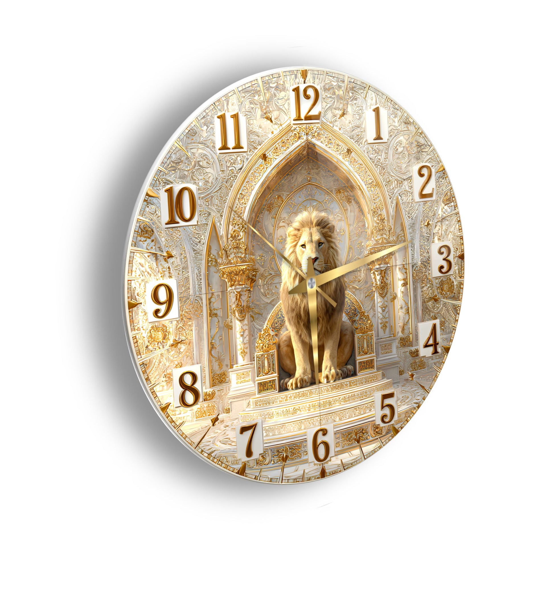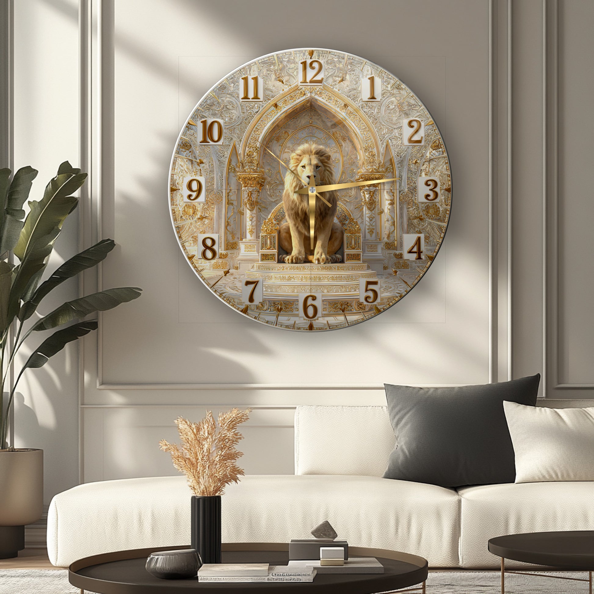 Gold Detay Aslan Cam Duvar Saati