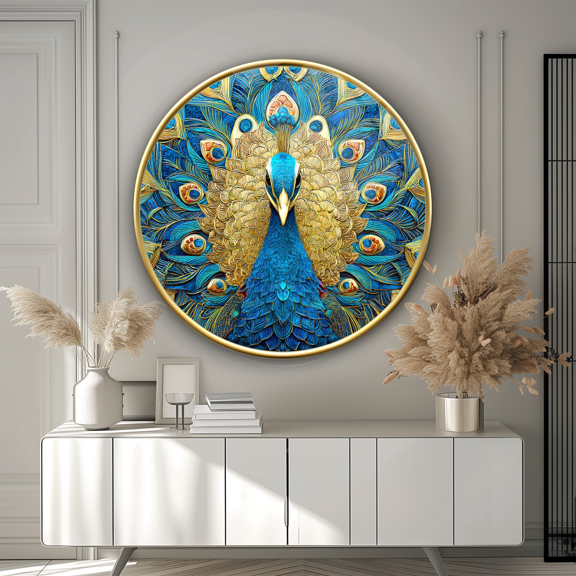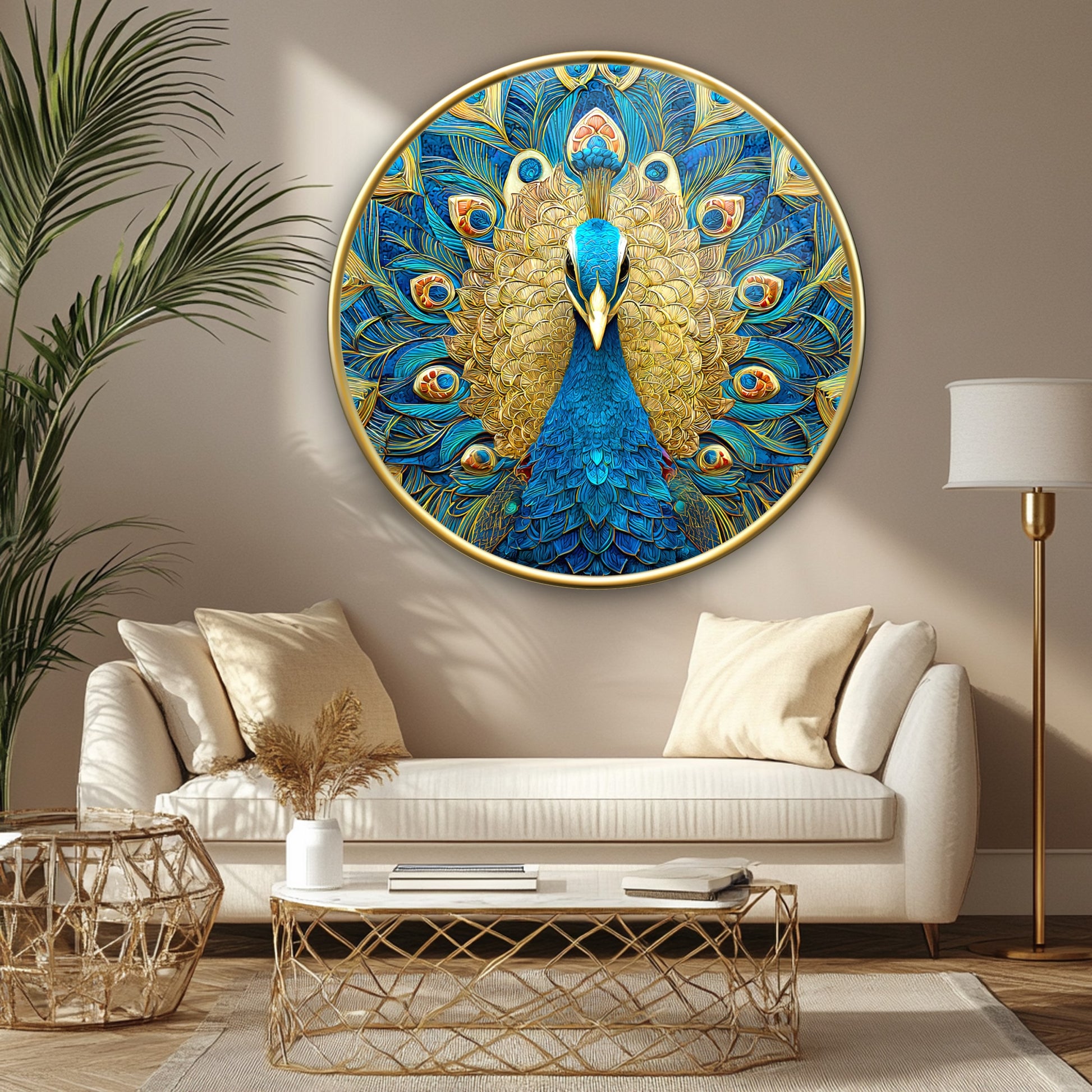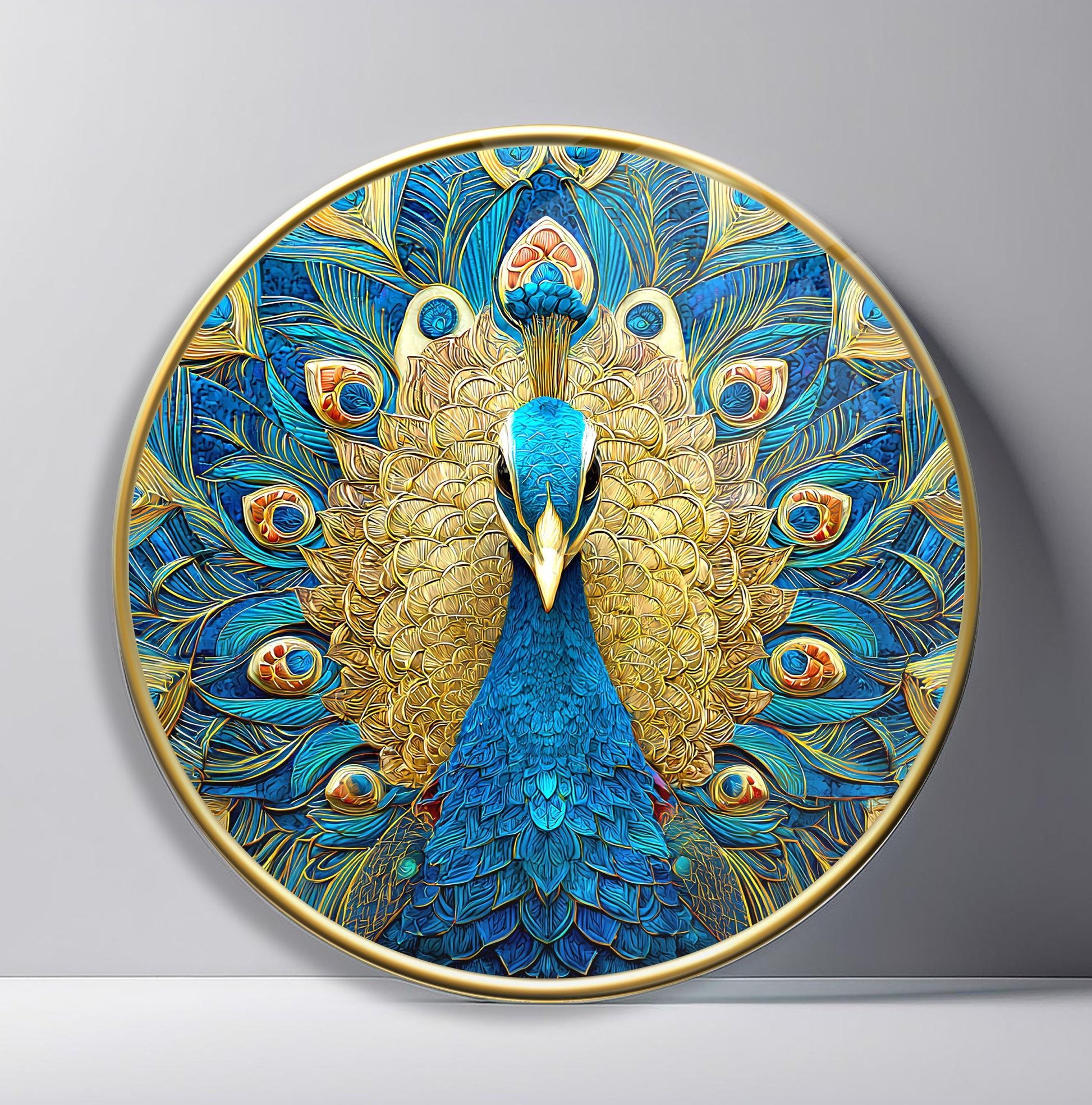 Gold Detay Tavus Kuşu Yuvarlak Cam Tablo
