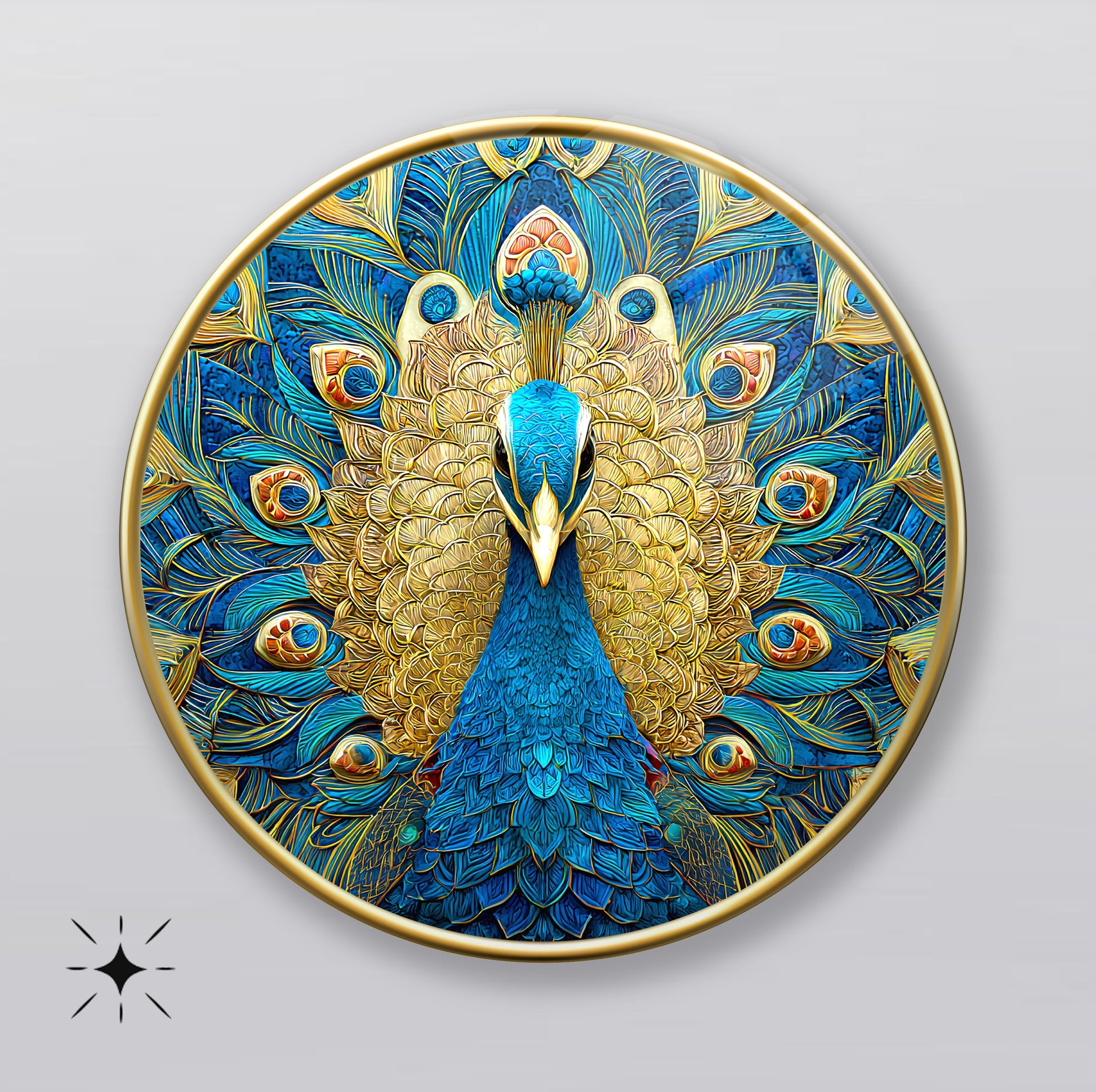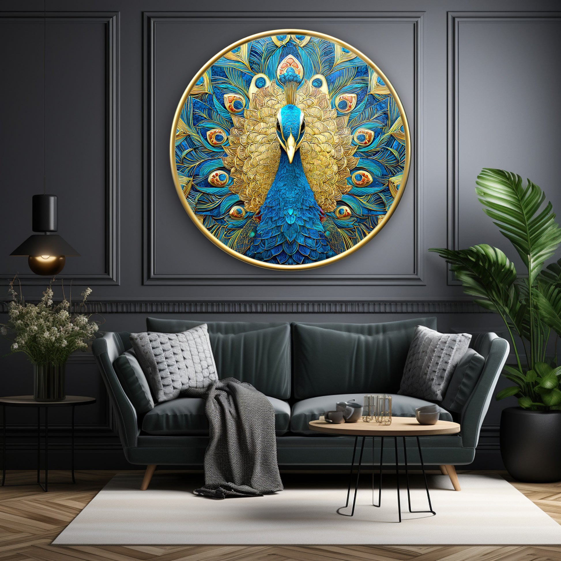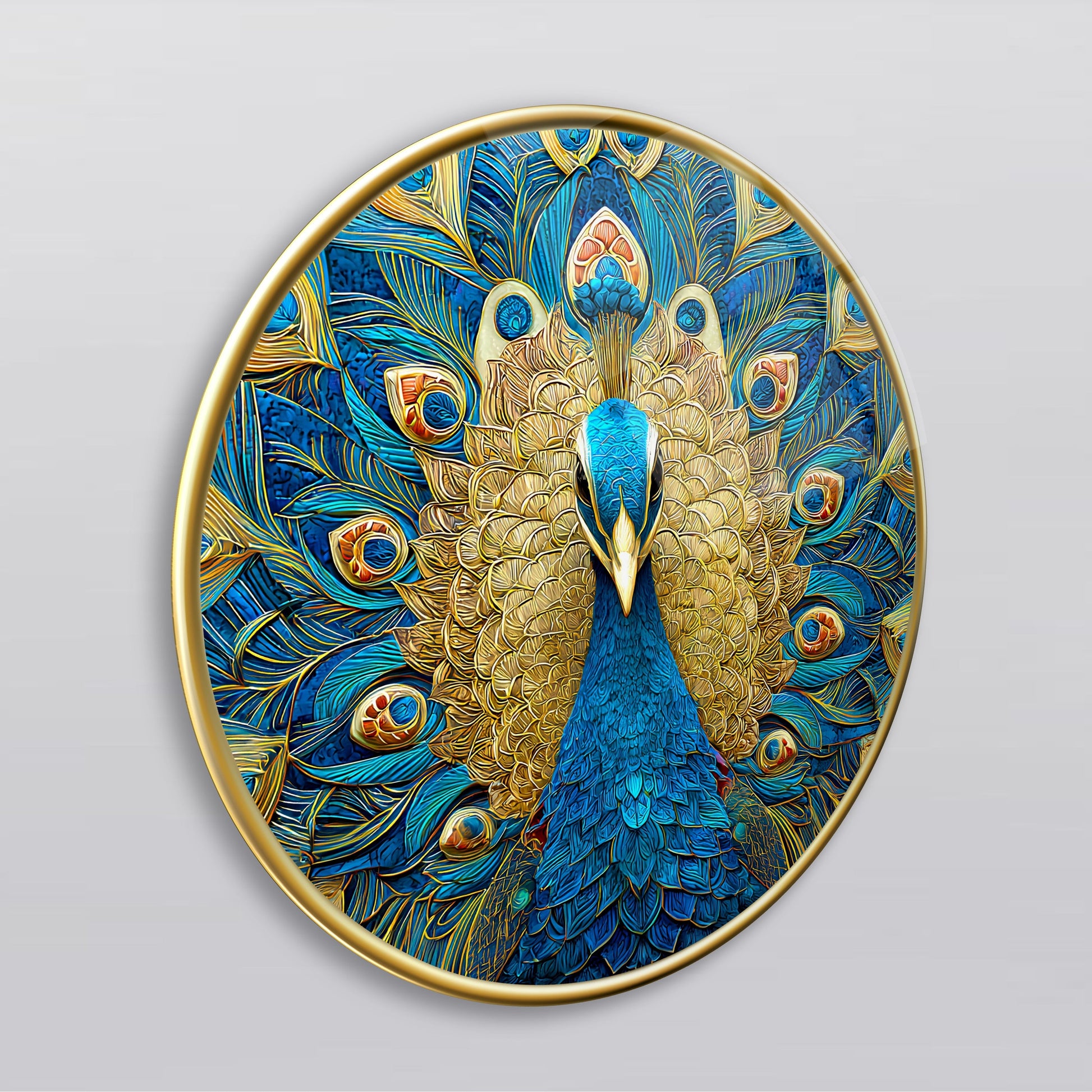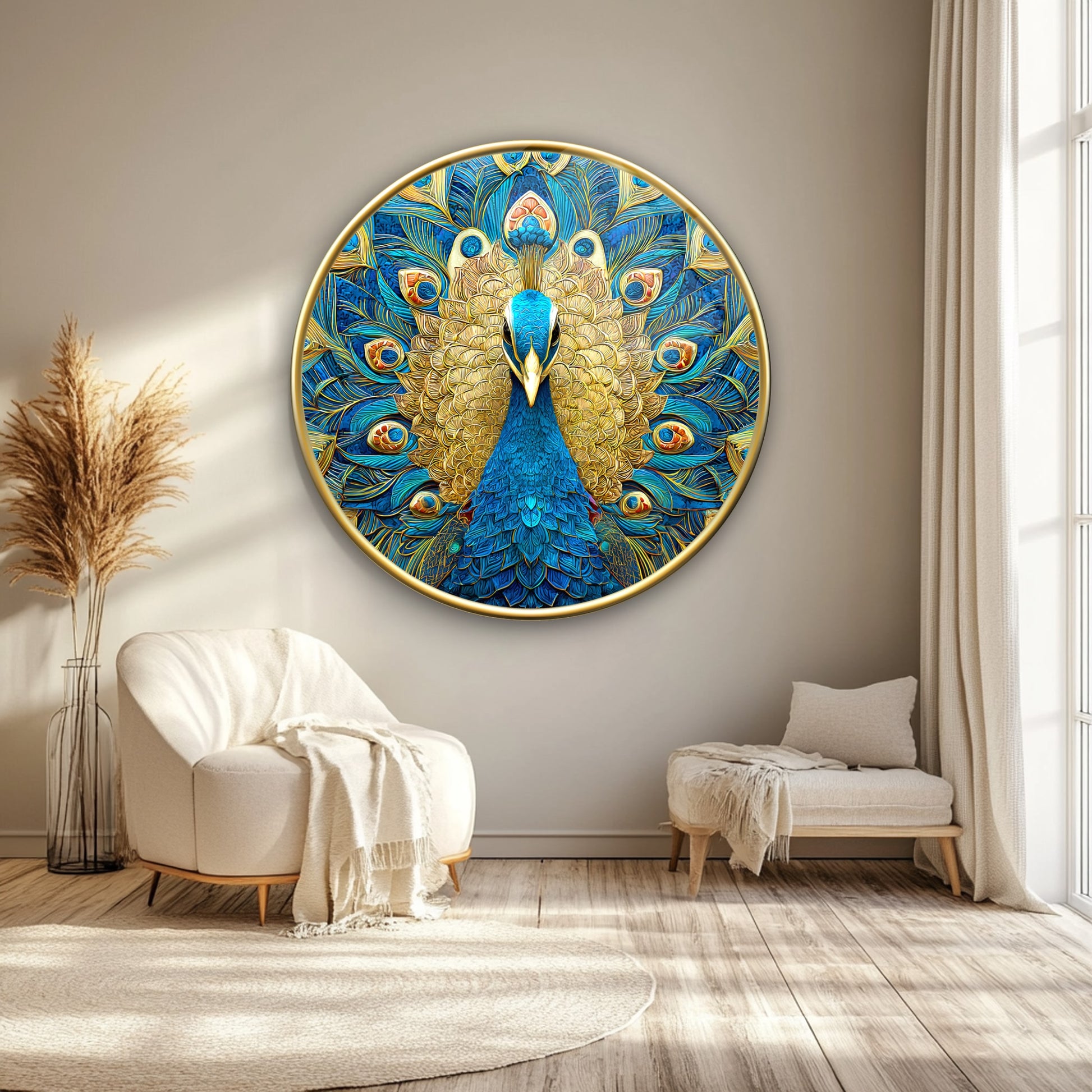 Gold Detay Tavus Kuşu Yuvarlak Cam Tablo
