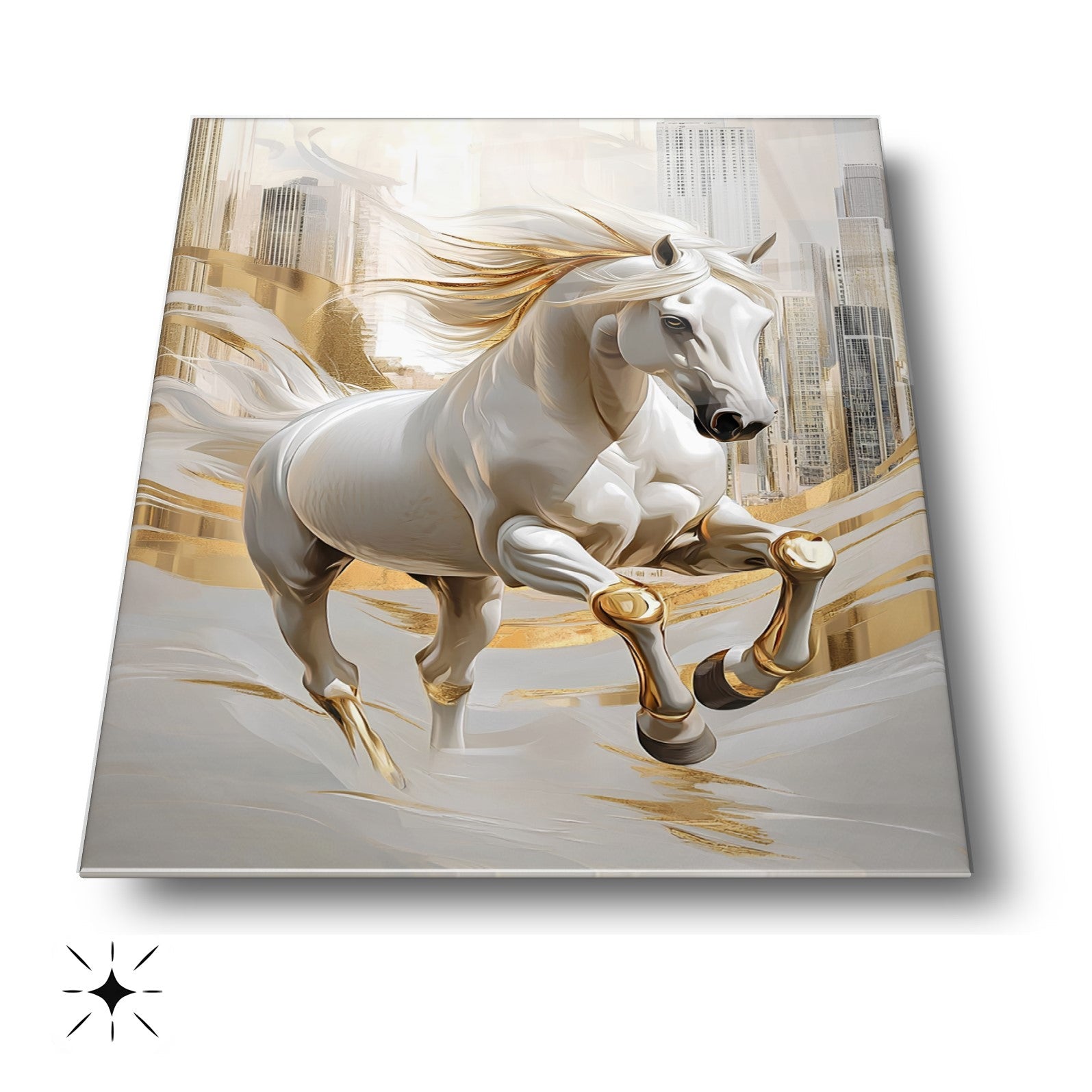 CamDeko'dan mekanlarınıza ihtişam ve modern bir dokunuş katan özel bir eser: Gold Detaylı At Bej Detay Kırılmaz Temperli Gerçek Cam Tablo! Gücün ve zarafetin sembolü at figürü, göz alıcı gold ve zarif bej detaylarıyla birleşerek evinize, ofisinize veya makam odanıza sofistike bir atmosfer katıyor.