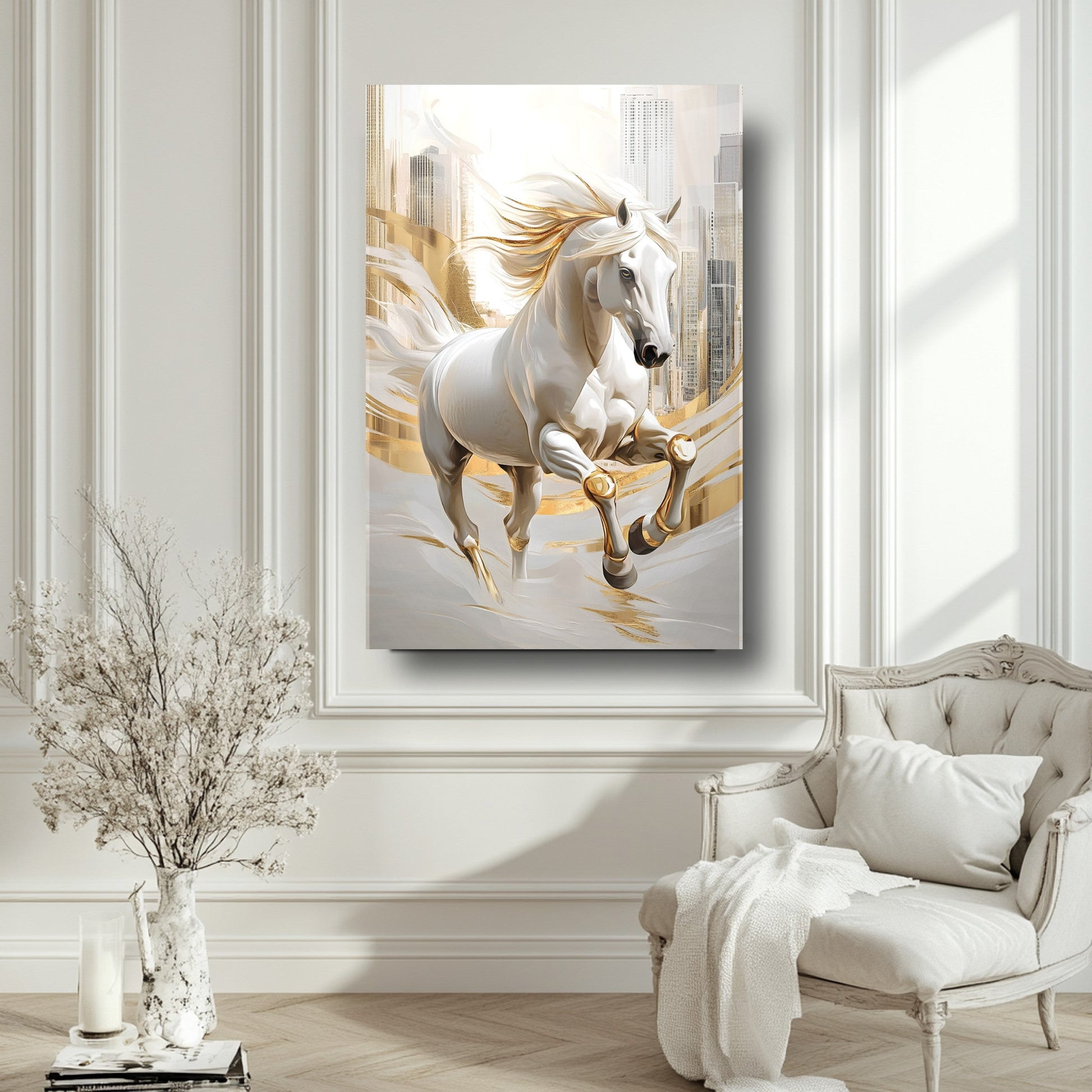 Asaletin ve Zarafetin Yeni Hali: Gold Detaylı At Bej Detay Cam Tablo