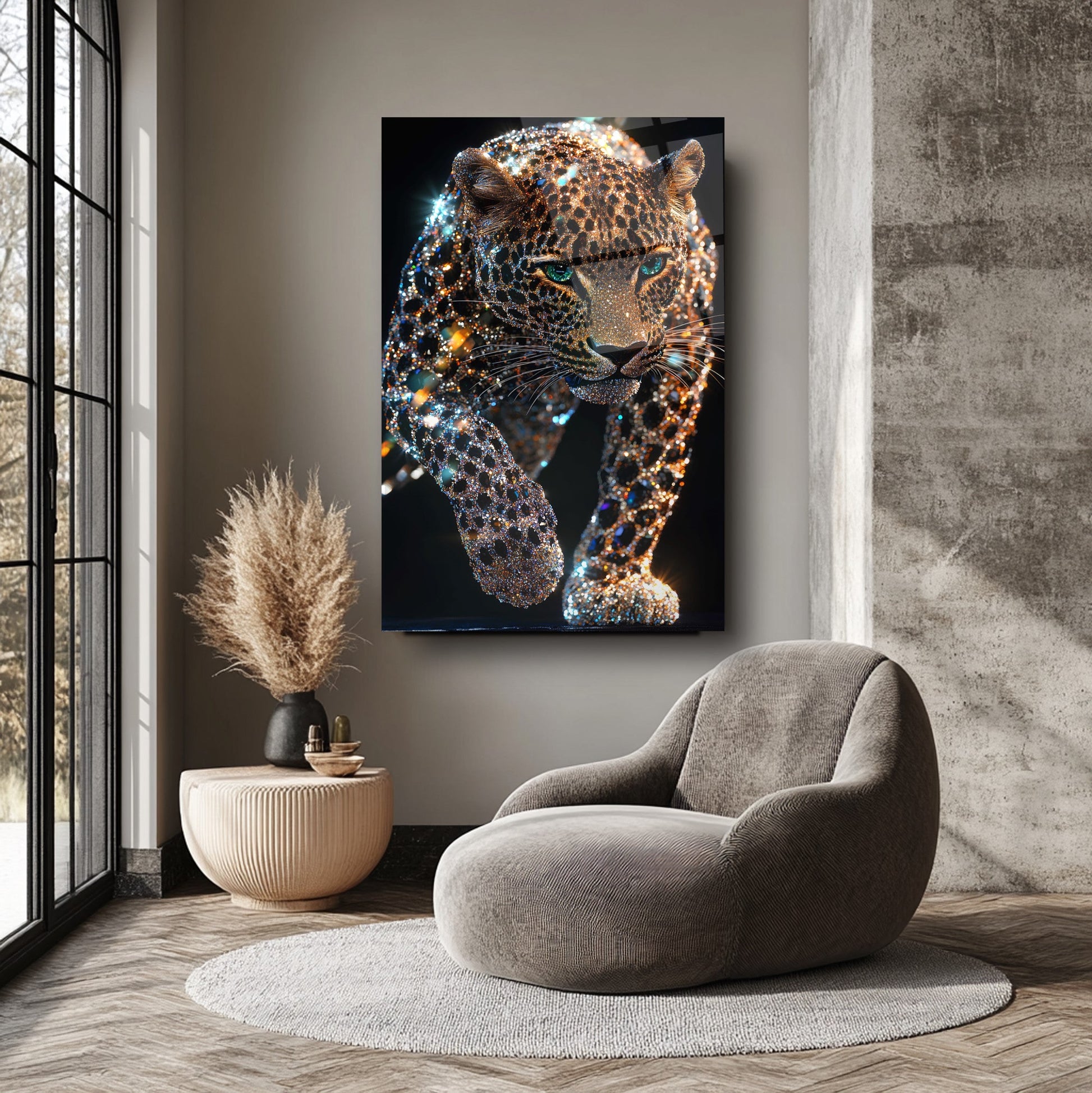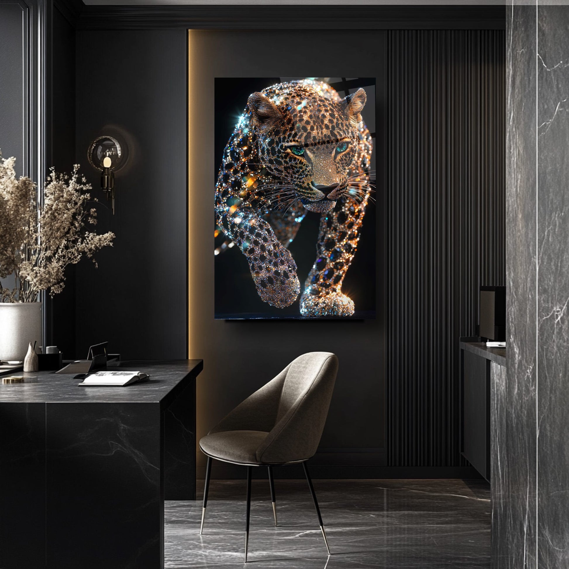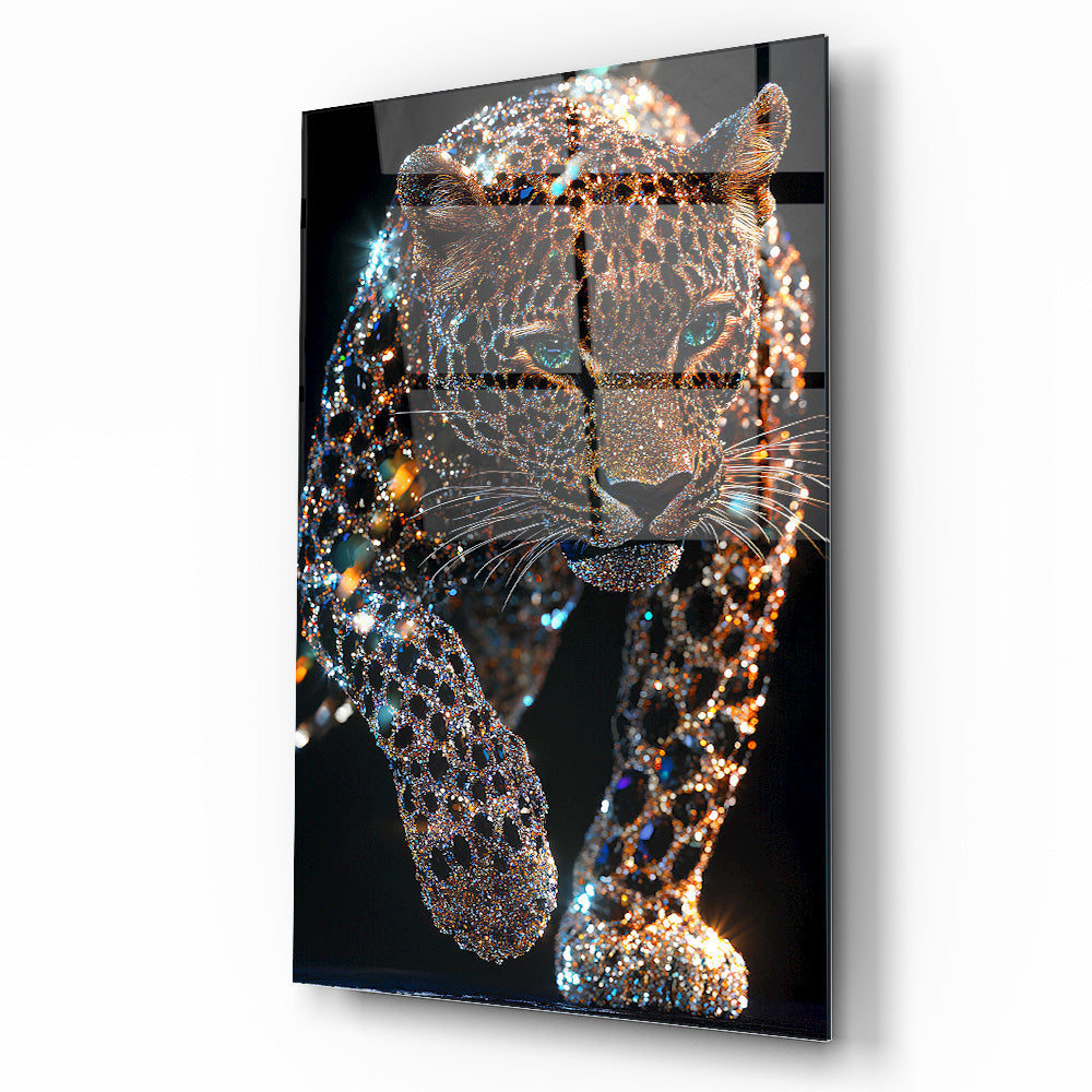 Lüks ve Gücün İhtişamlı Birleşimi: Gold Elmas Parlak Taşlı Leopar Cam Tablo