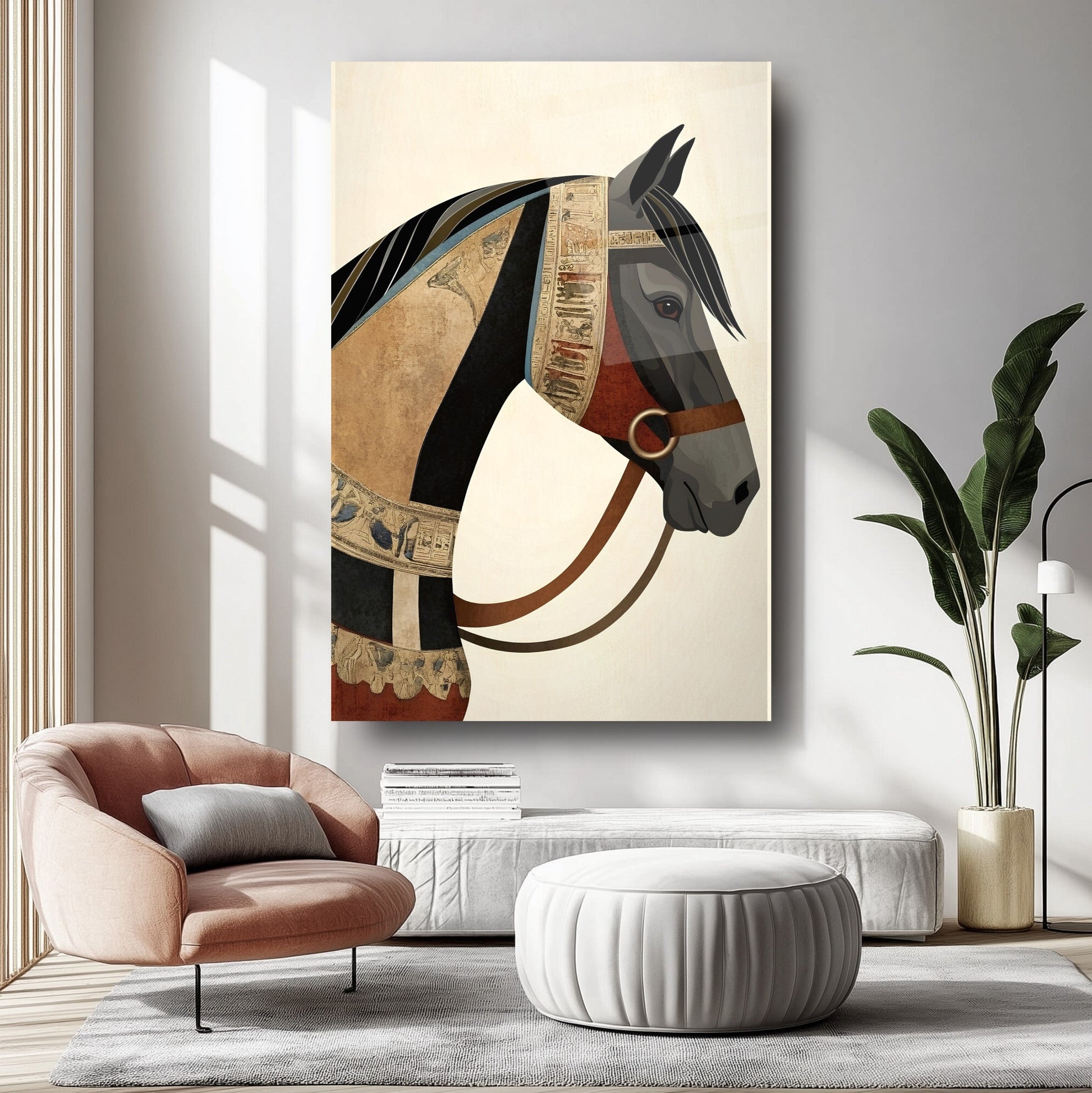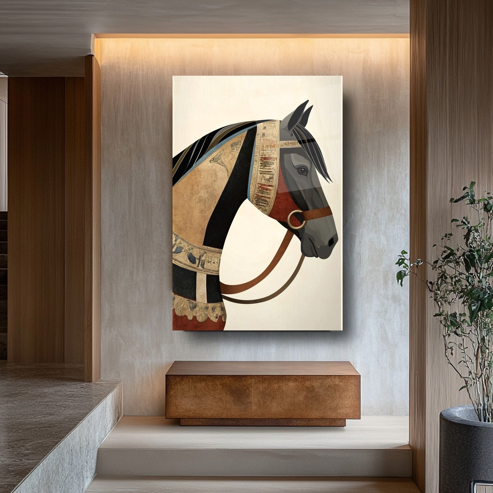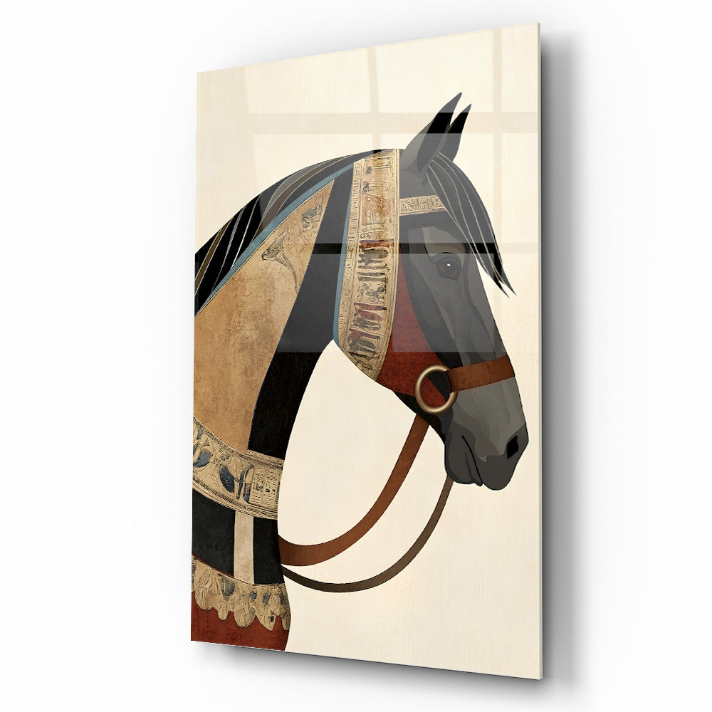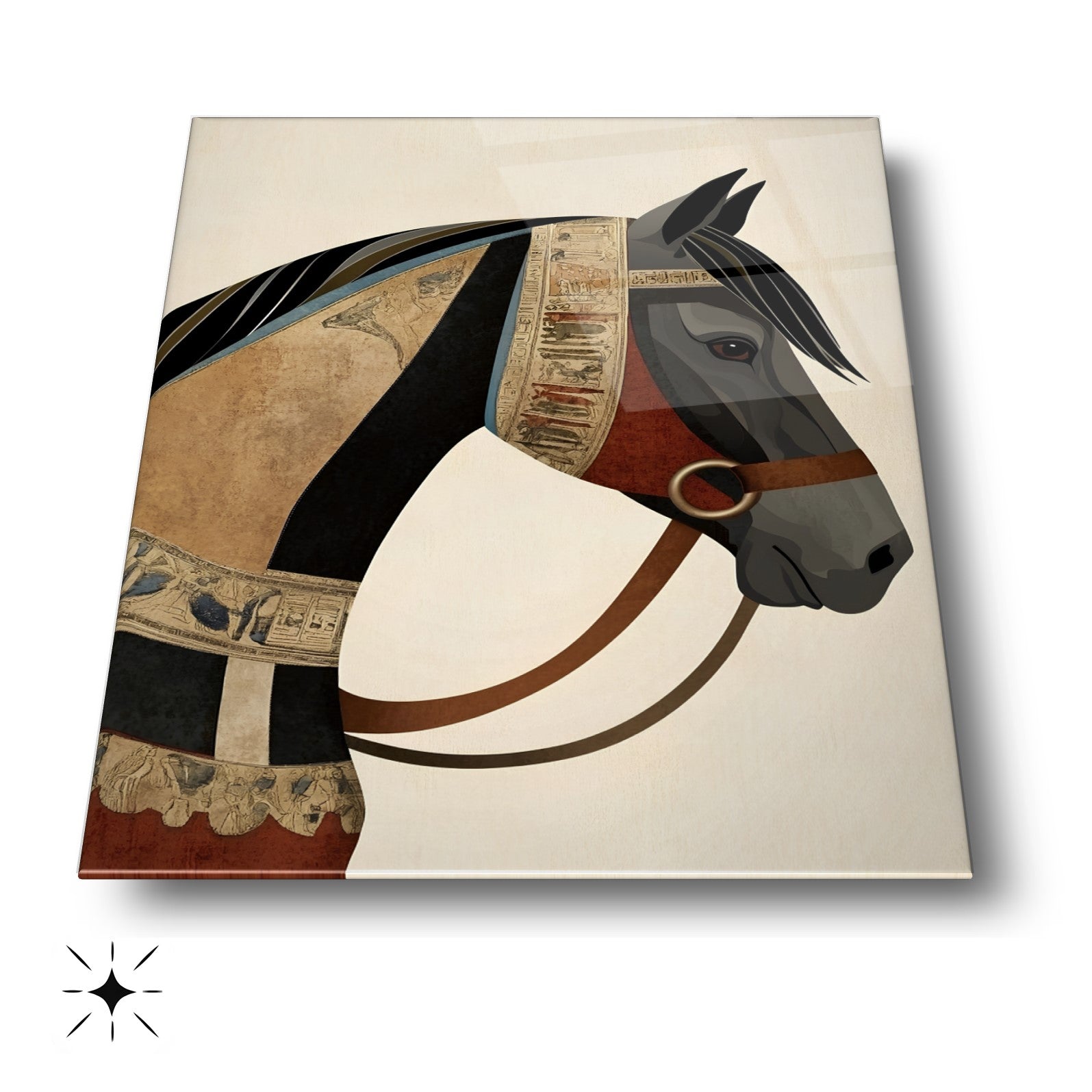 Zarafetin ve gücün birleşimi: Gold Eskitme Detaylı Siyah At Cam Tablo