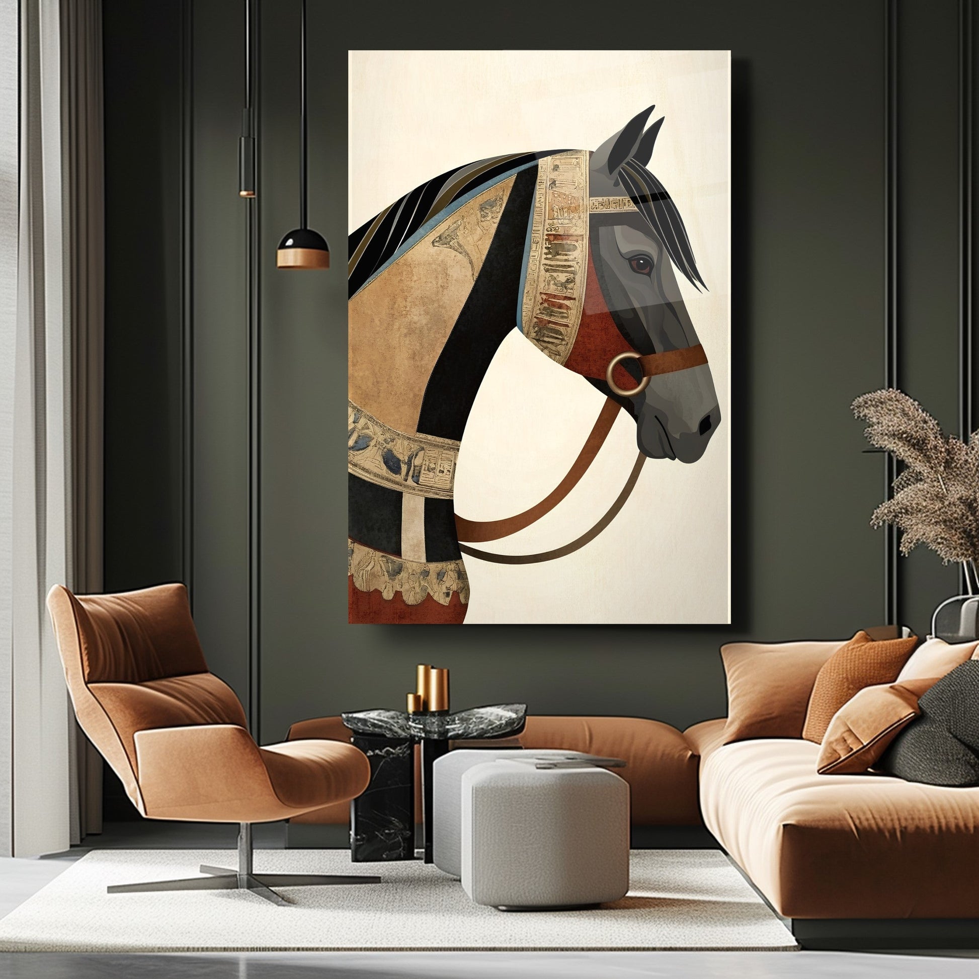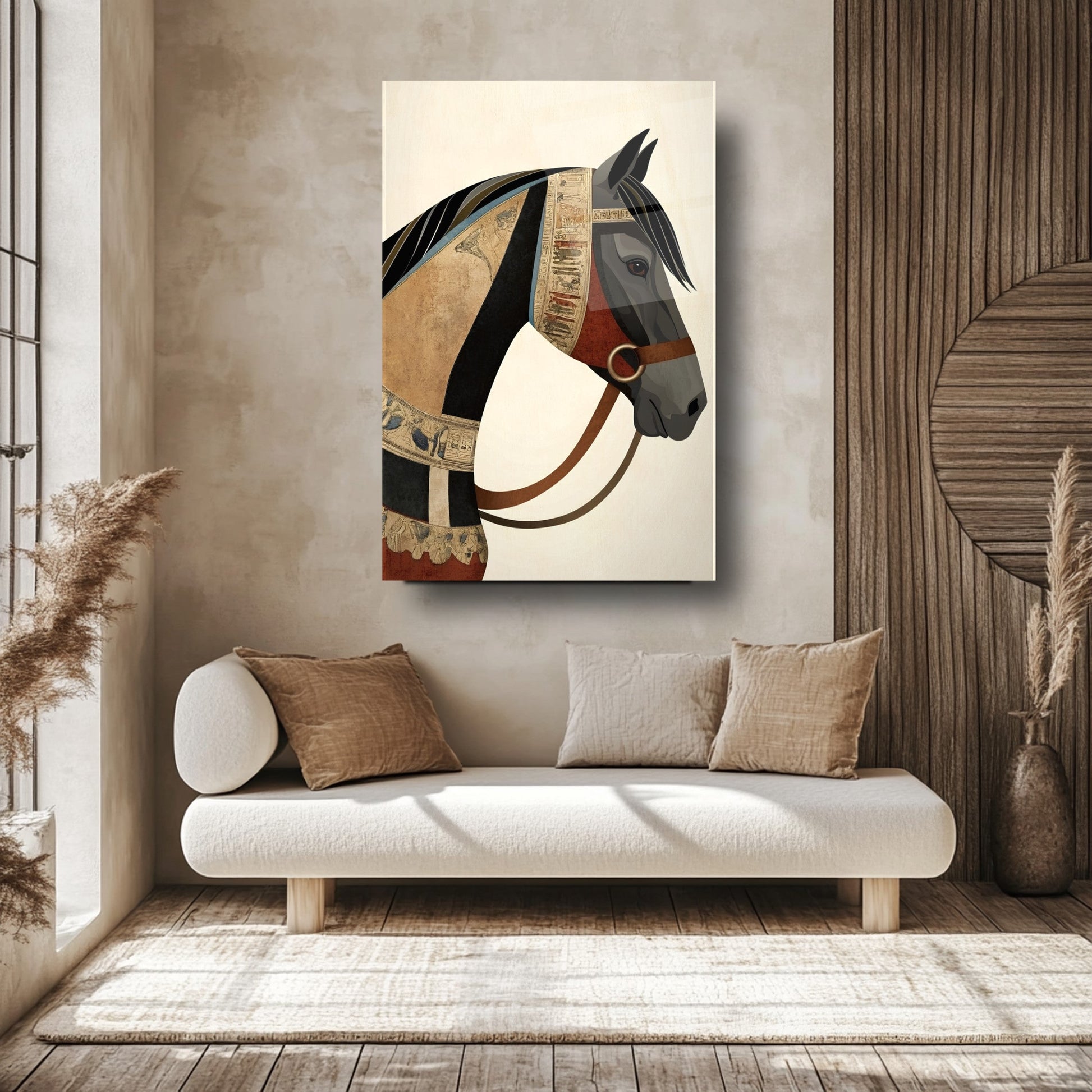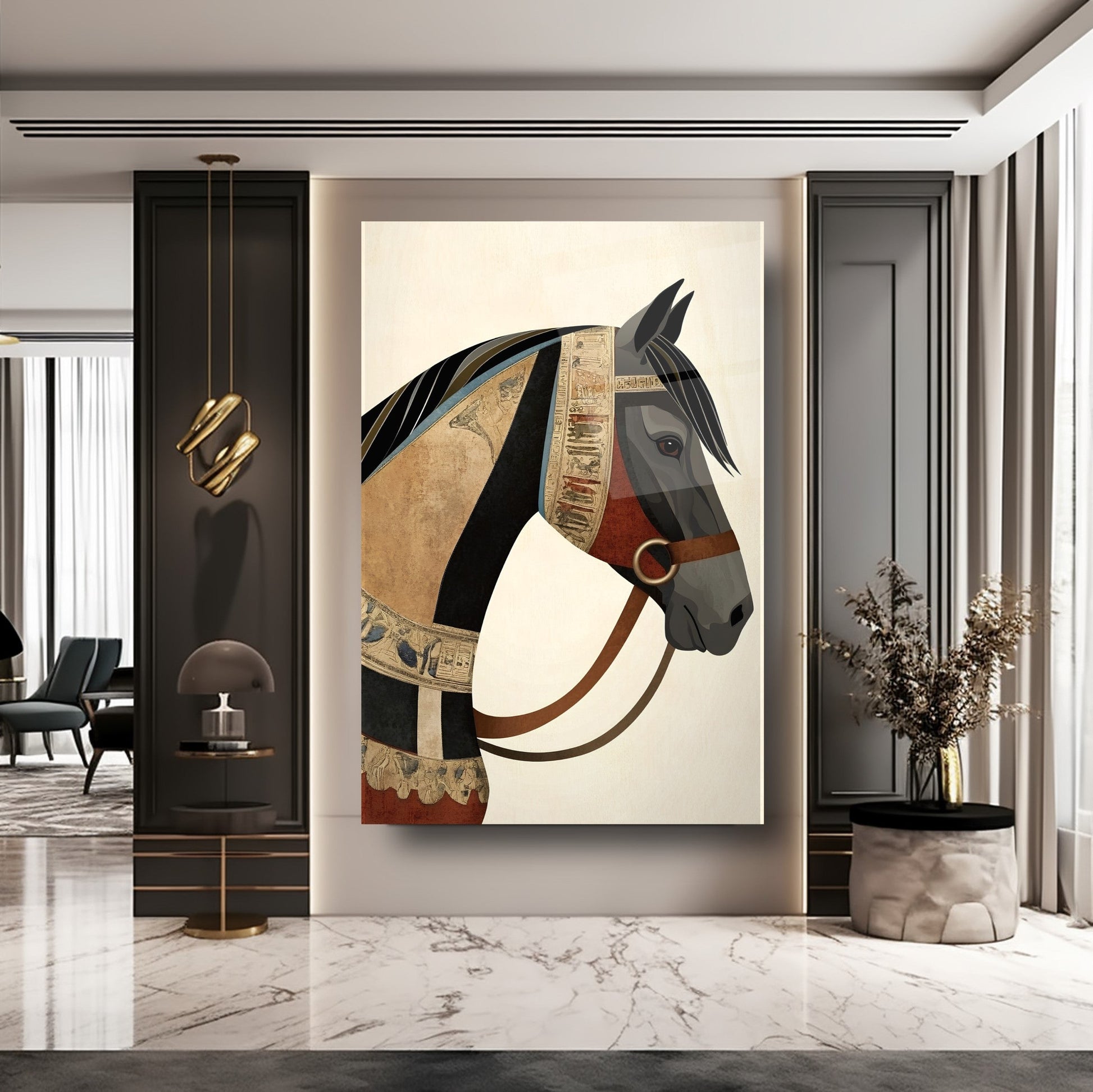 Zarafetin ve gücün birleşimi: Gold Eskitme Detaylı Siyah At Cam Tablo