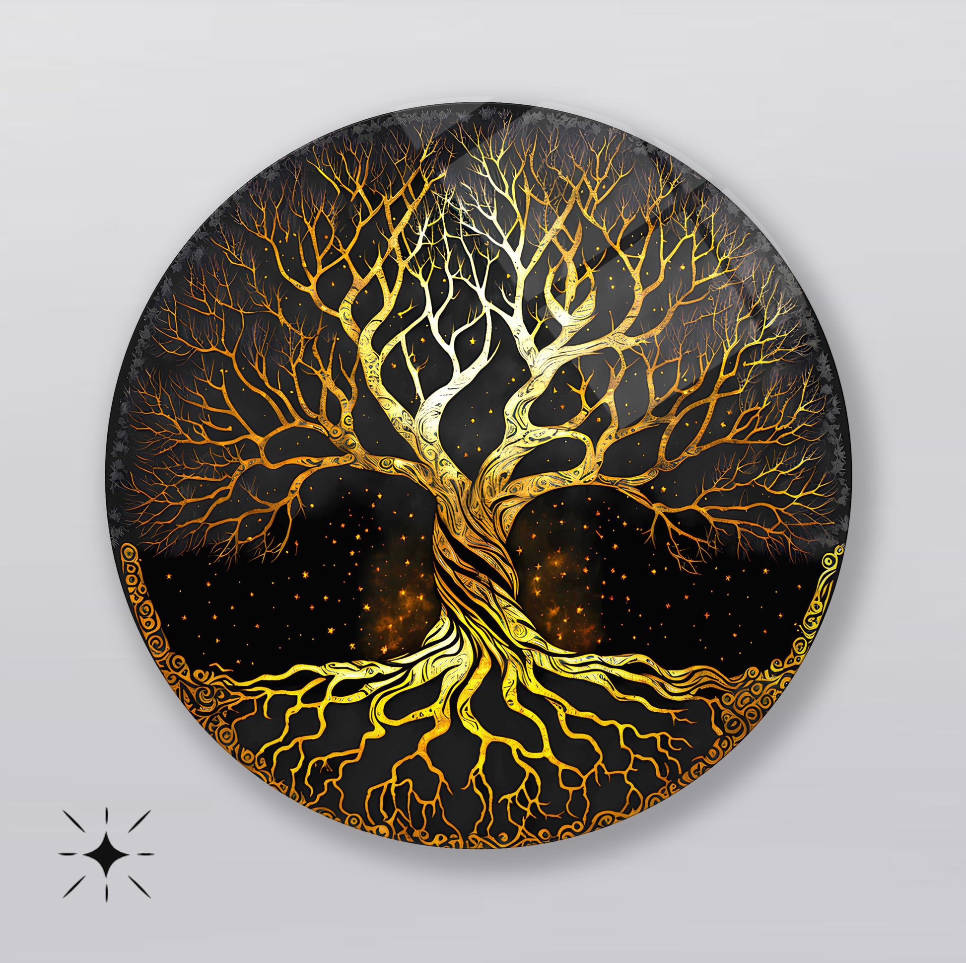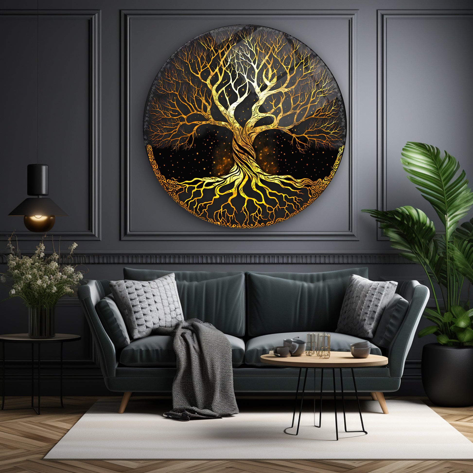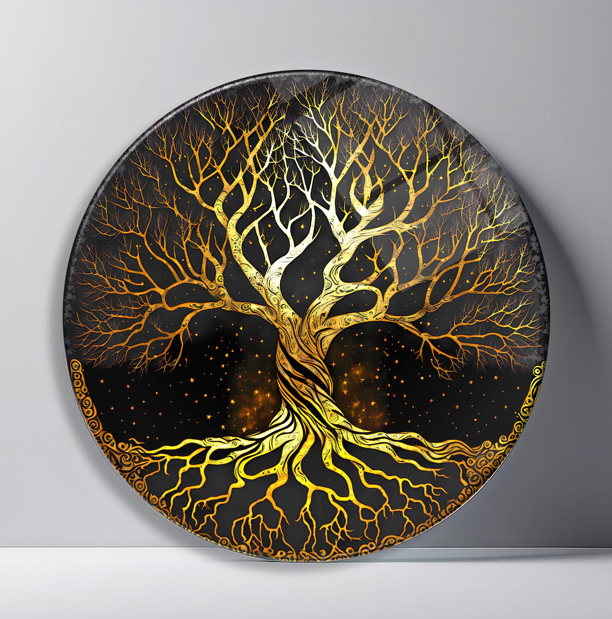 Gold Hayat Ağacı Yuvarlak Cam Tablo