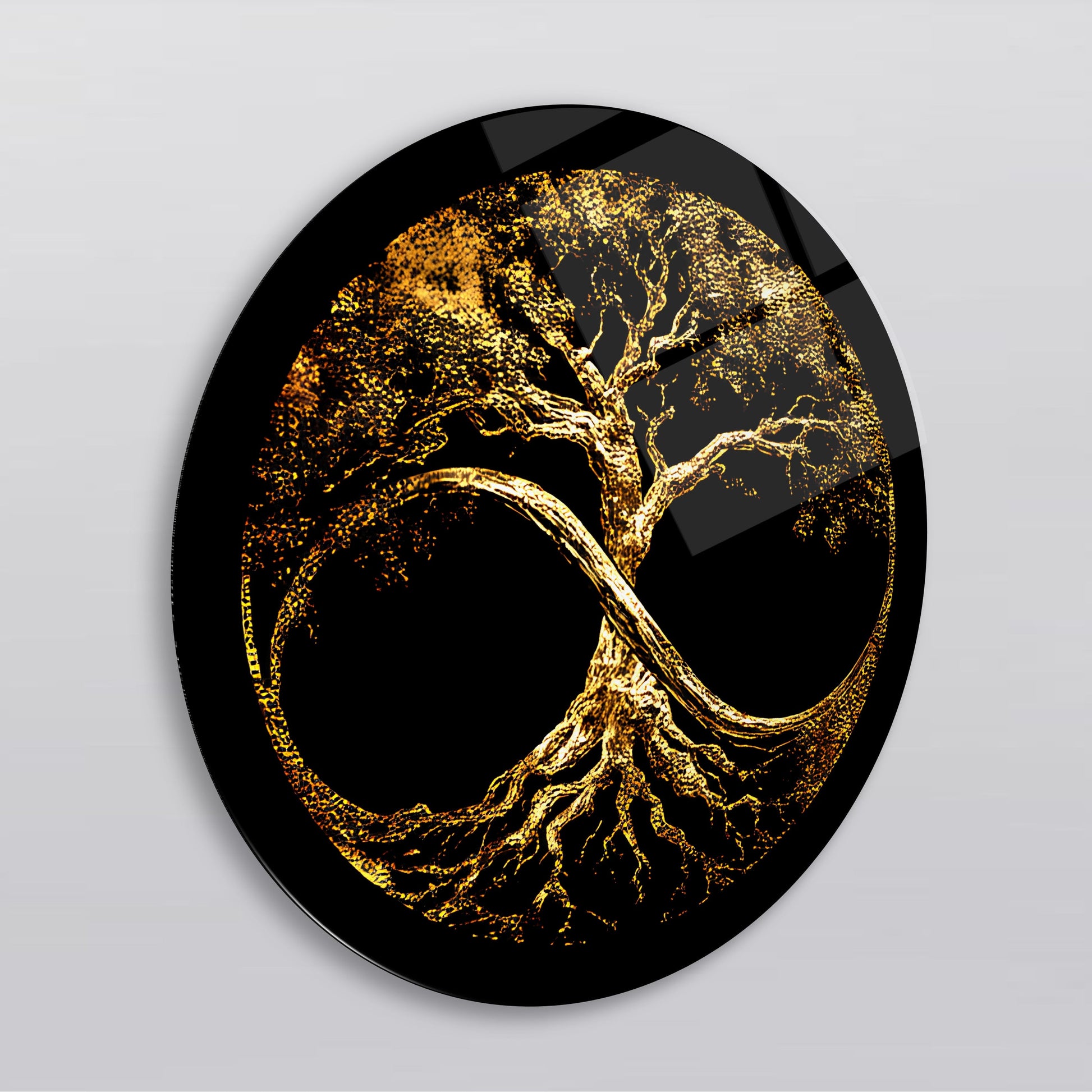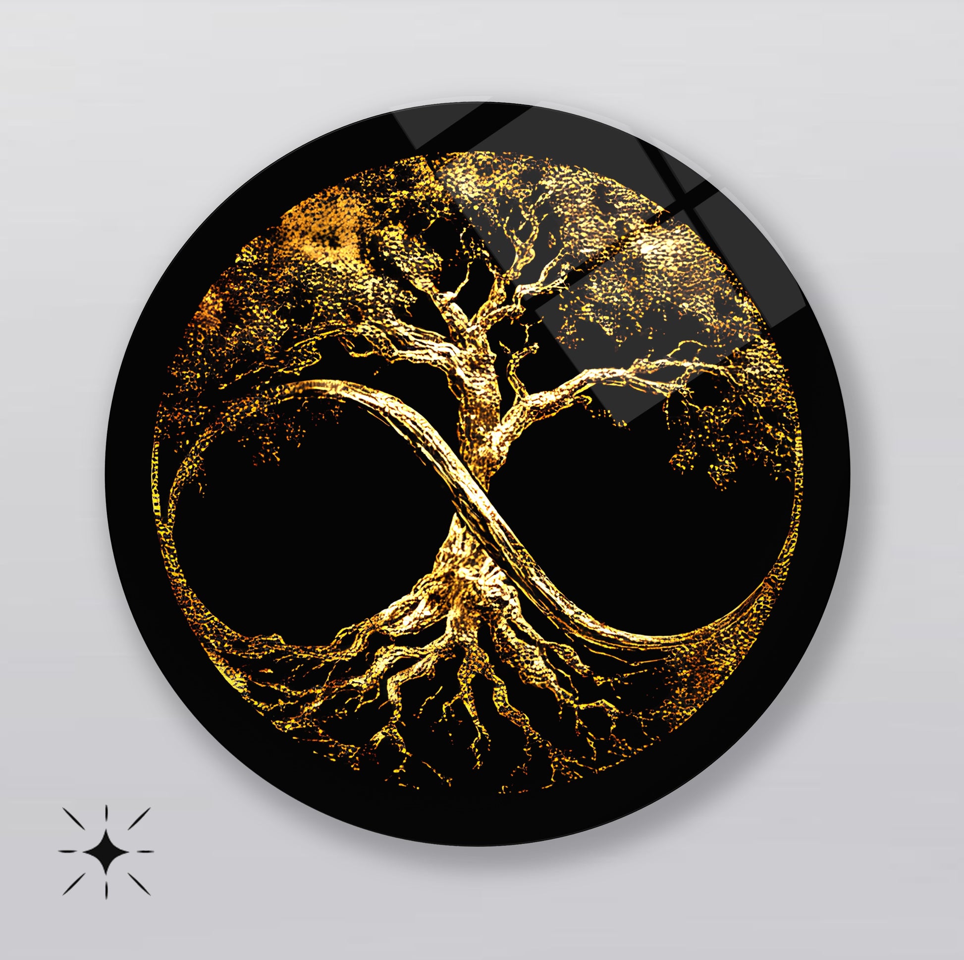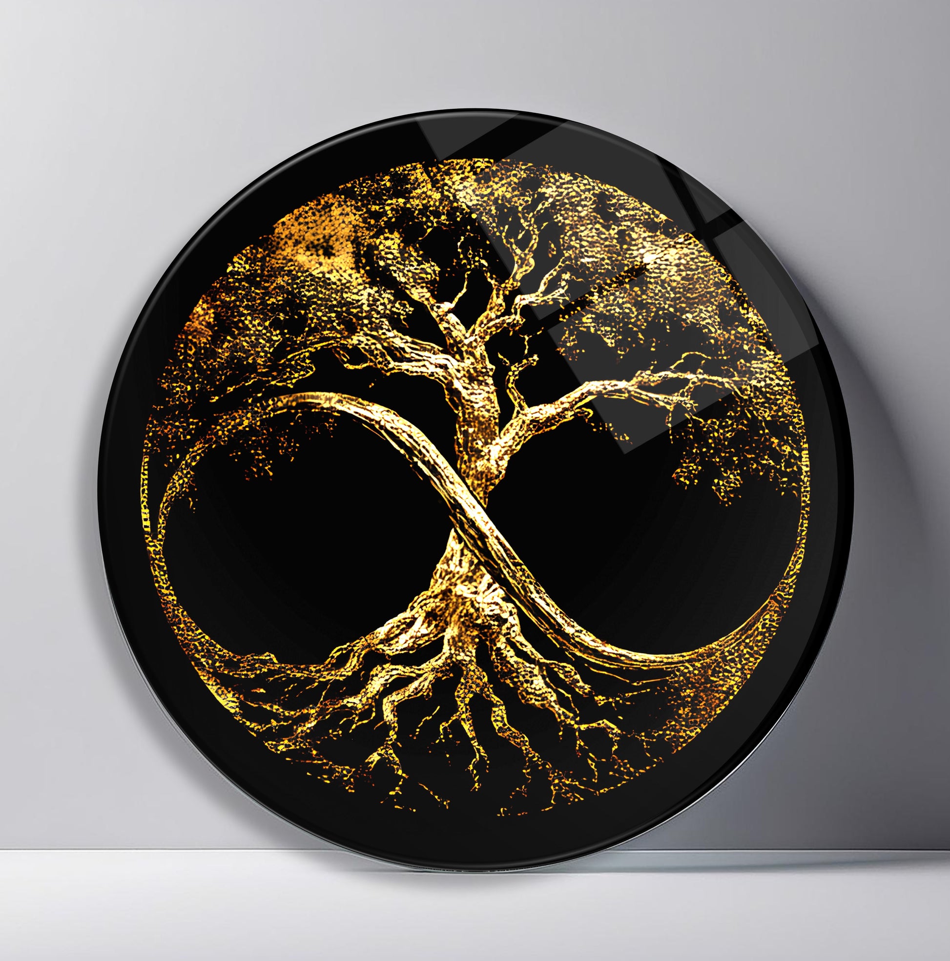 Hayat Ağacı ve Sonsuzluk Yuvarlak Cam Tablo