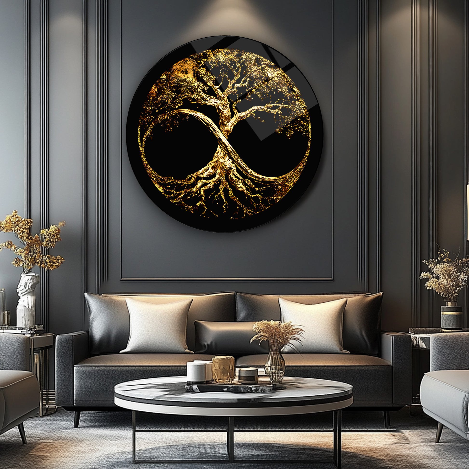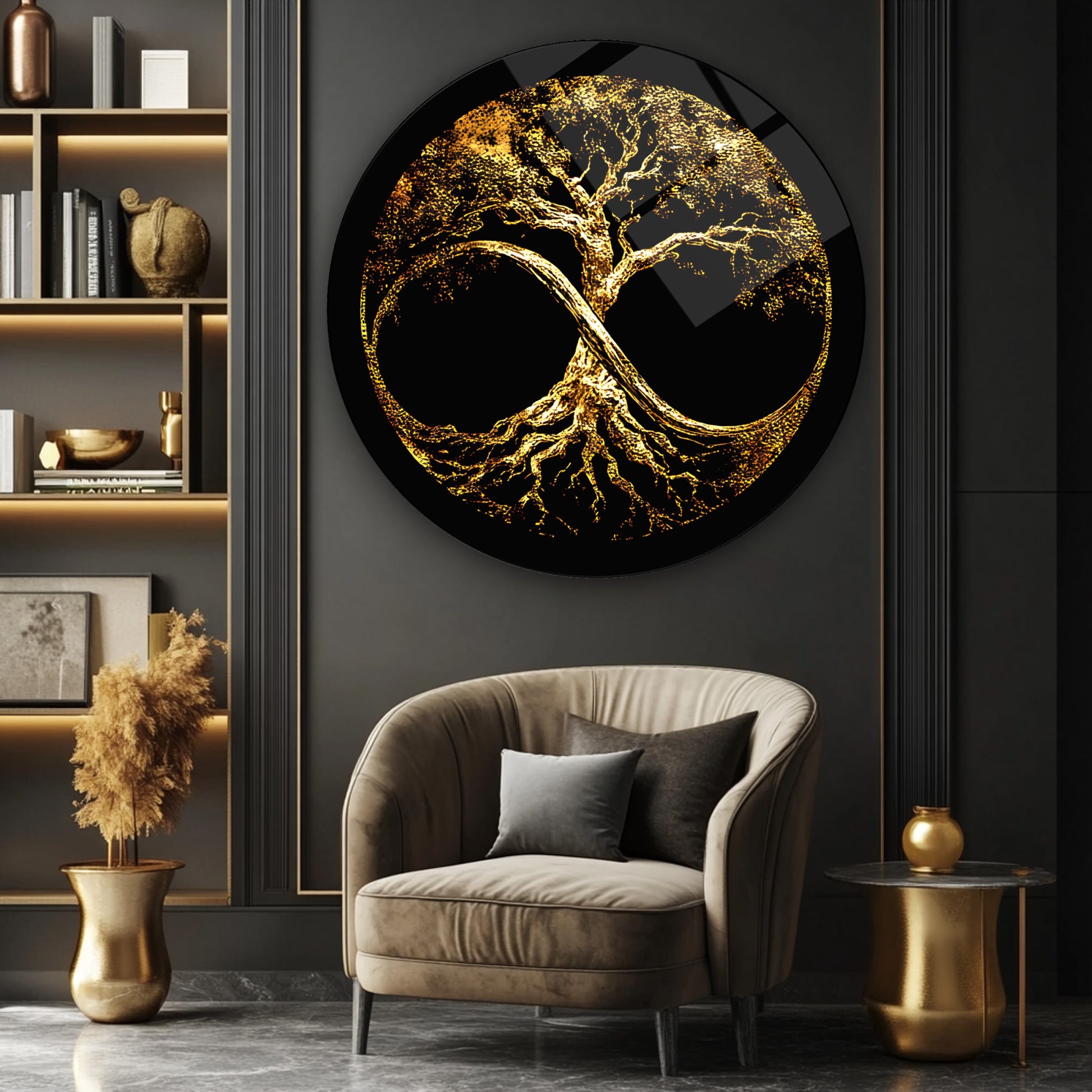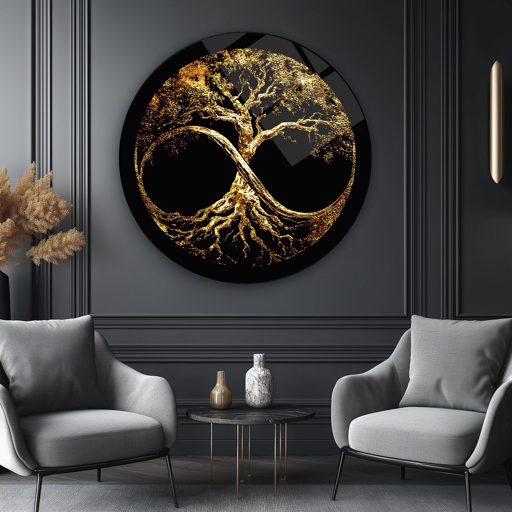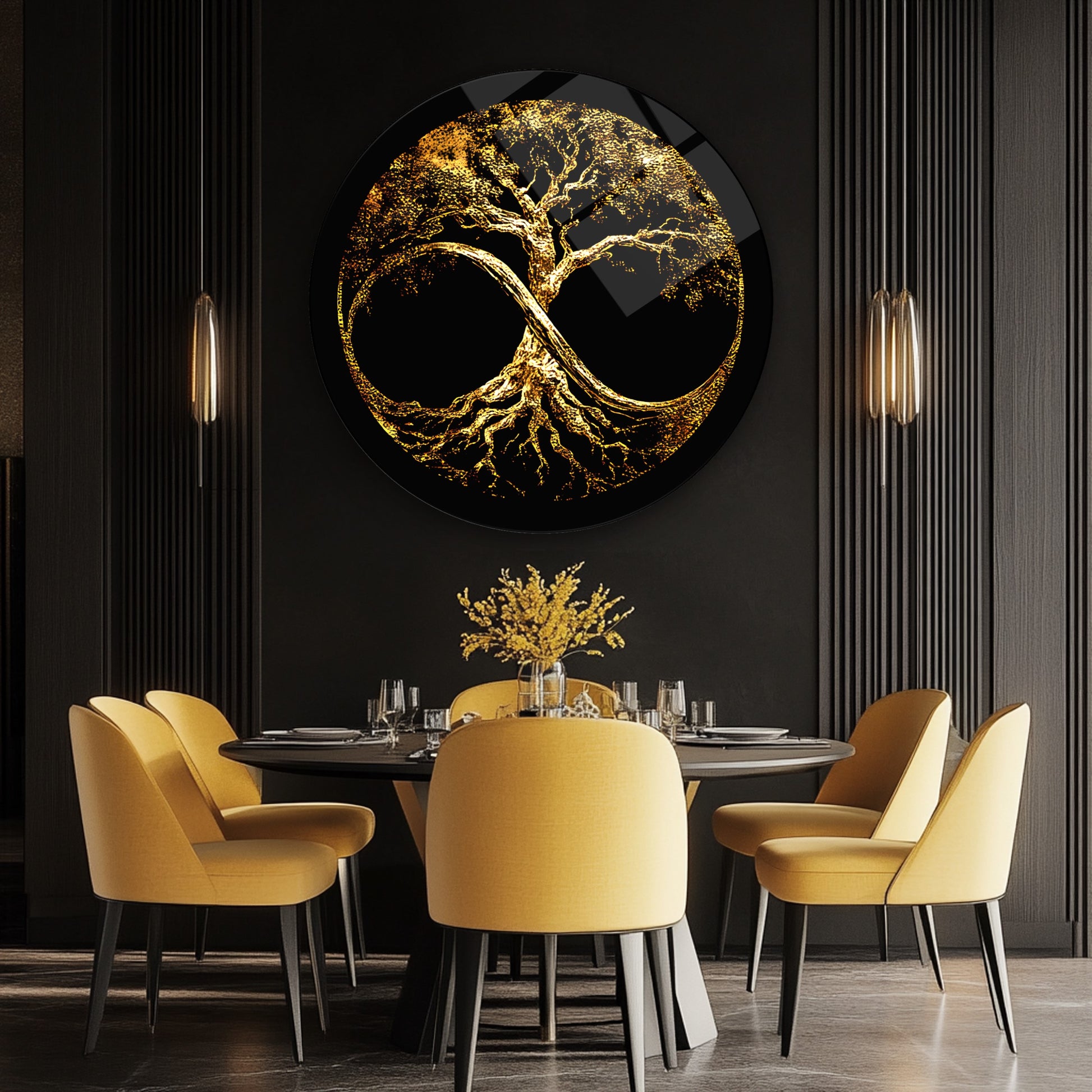 Hayat Ağacı ve Sonsuzluk Yuvarlak Cam Tablo
