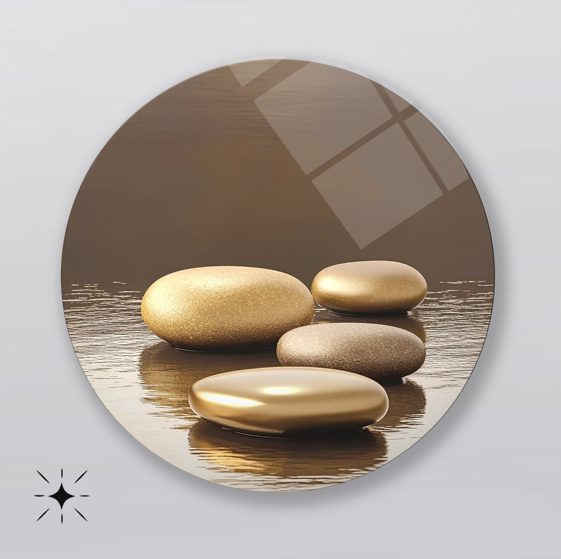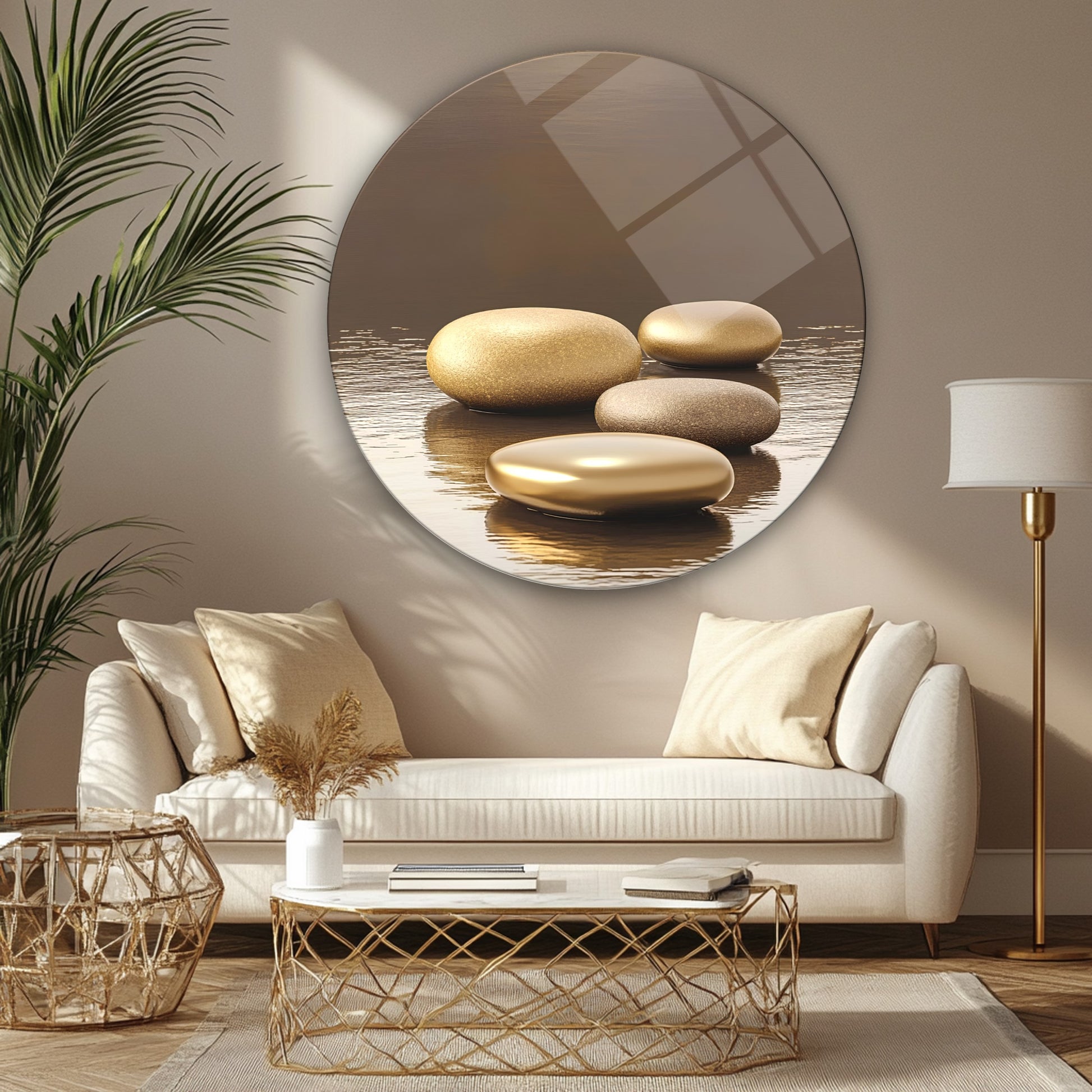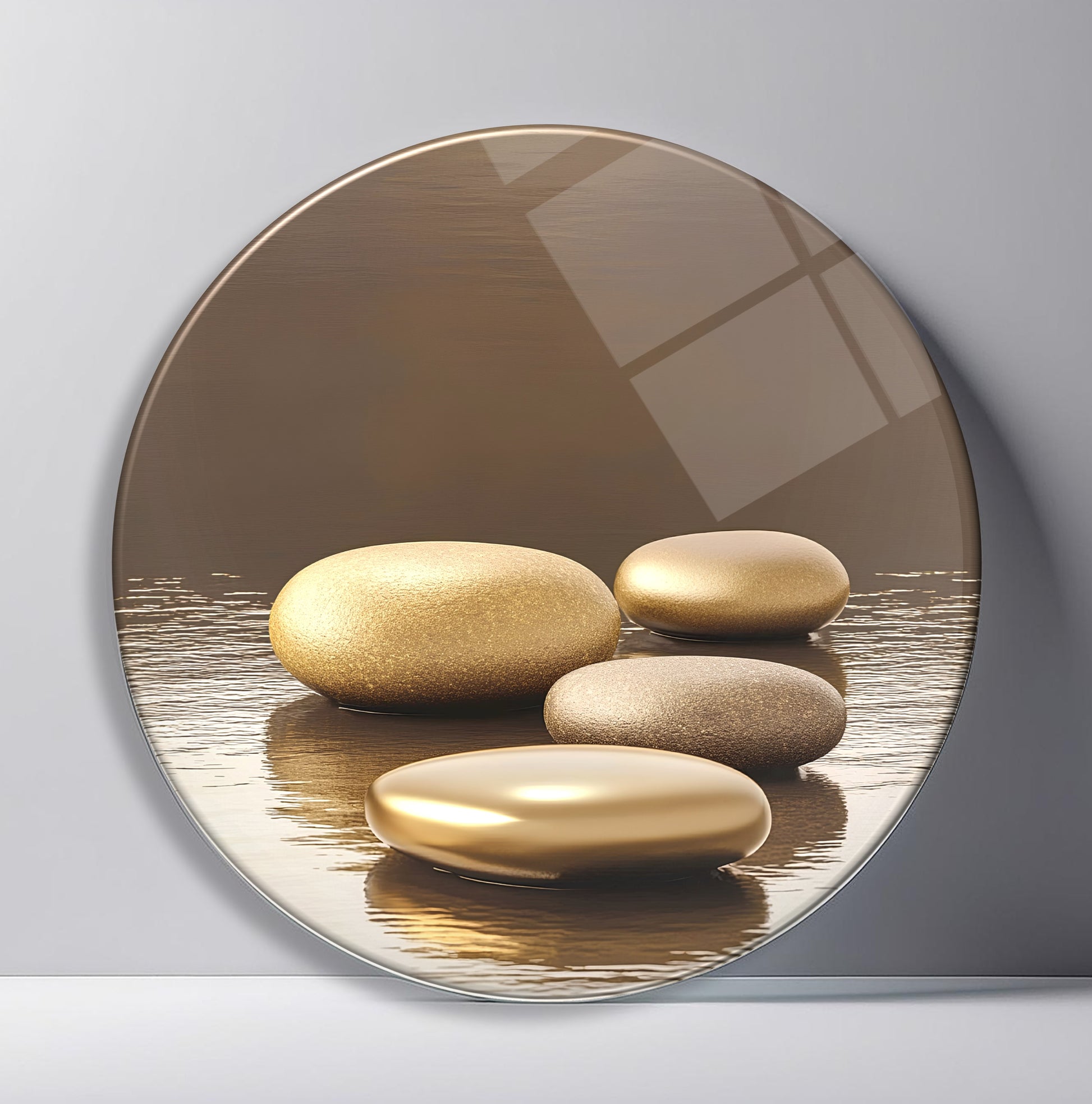 Gold Çakıl Taşları Yuvarlak Cam Tablo