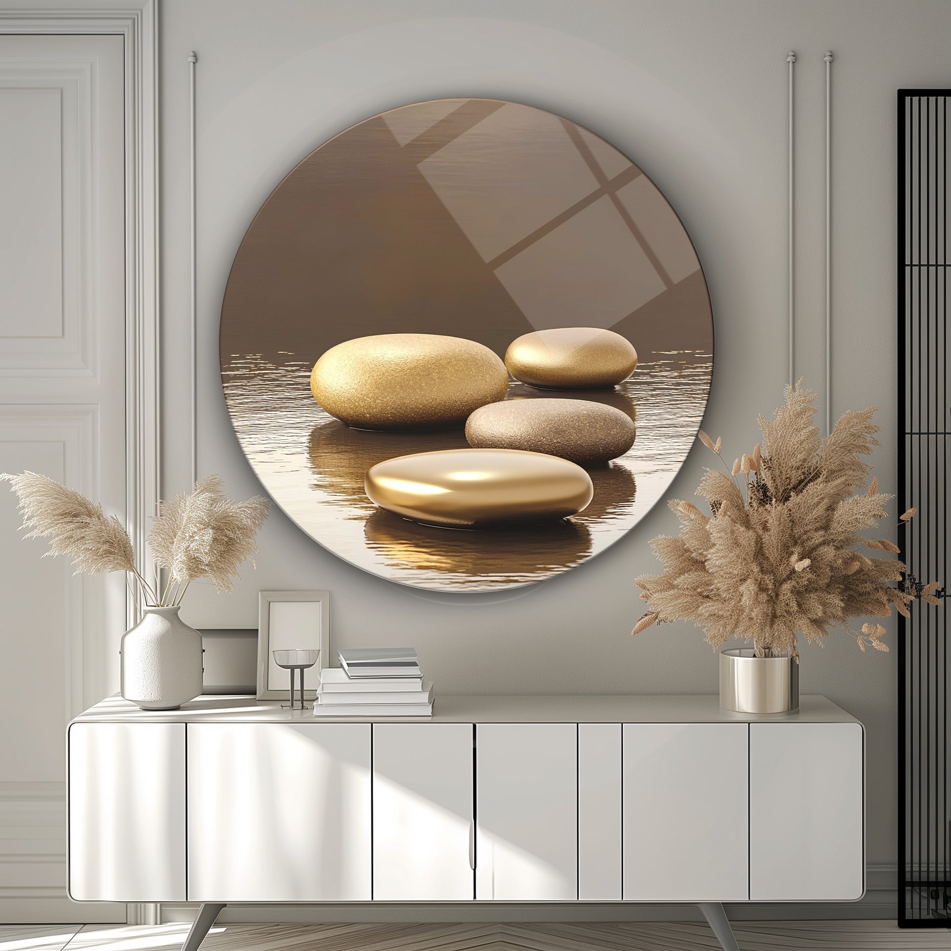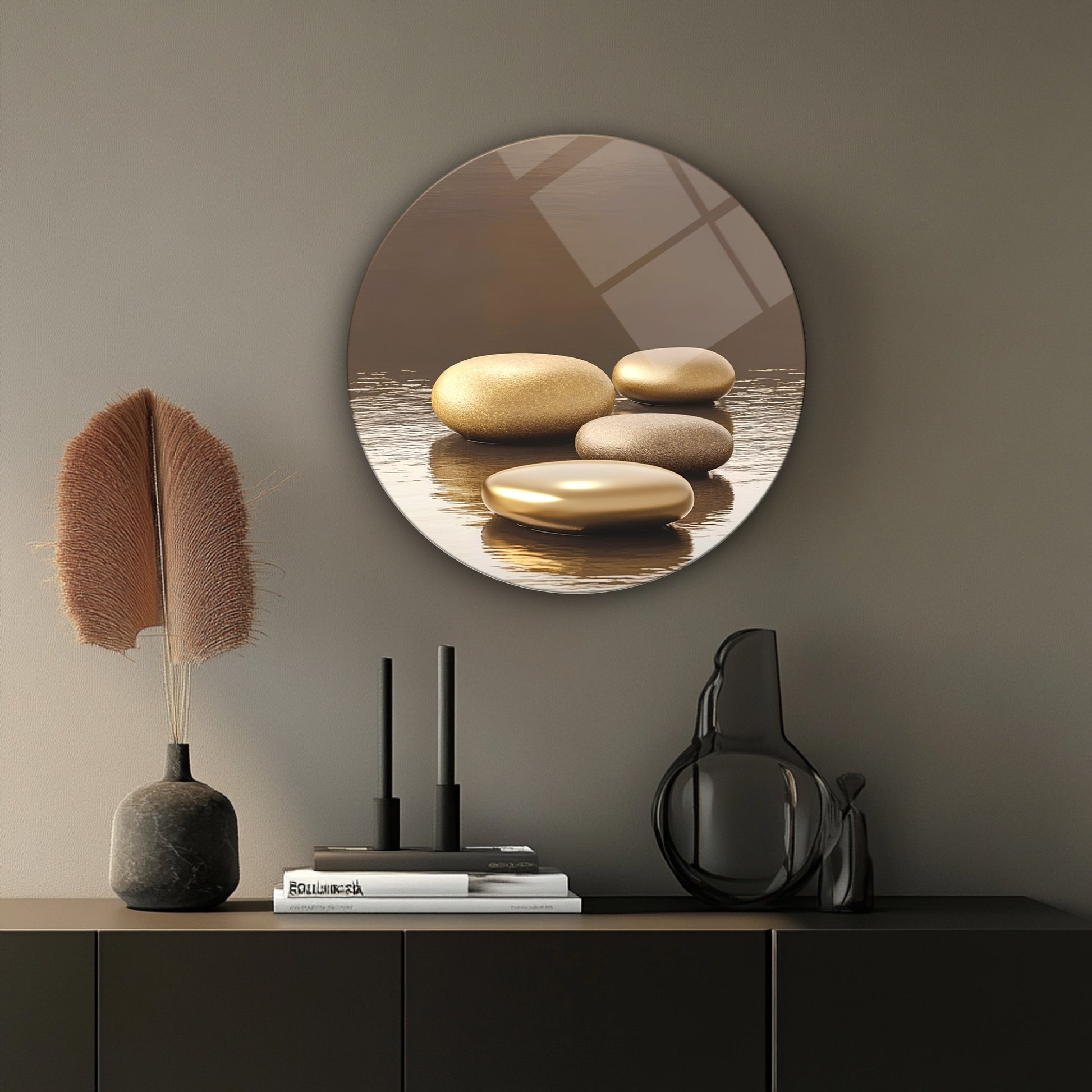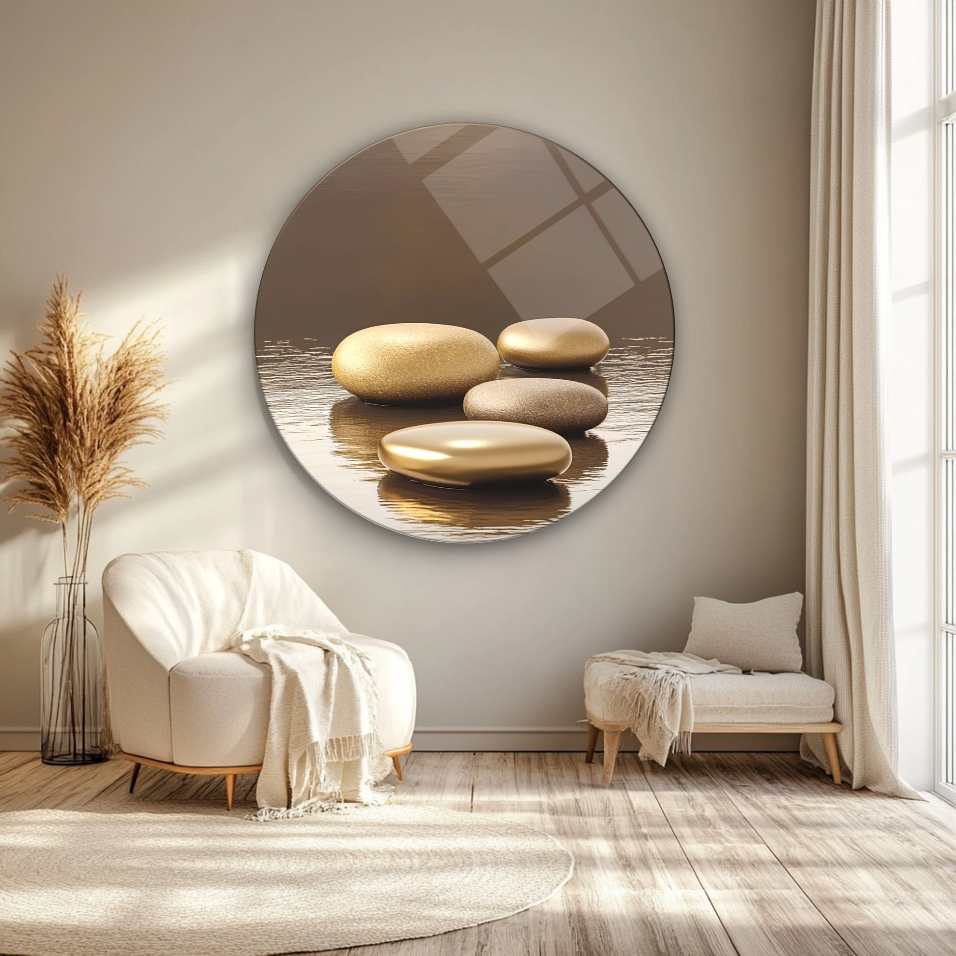 Gold Çakıl Taşları Yuvarlak Cam Tablo