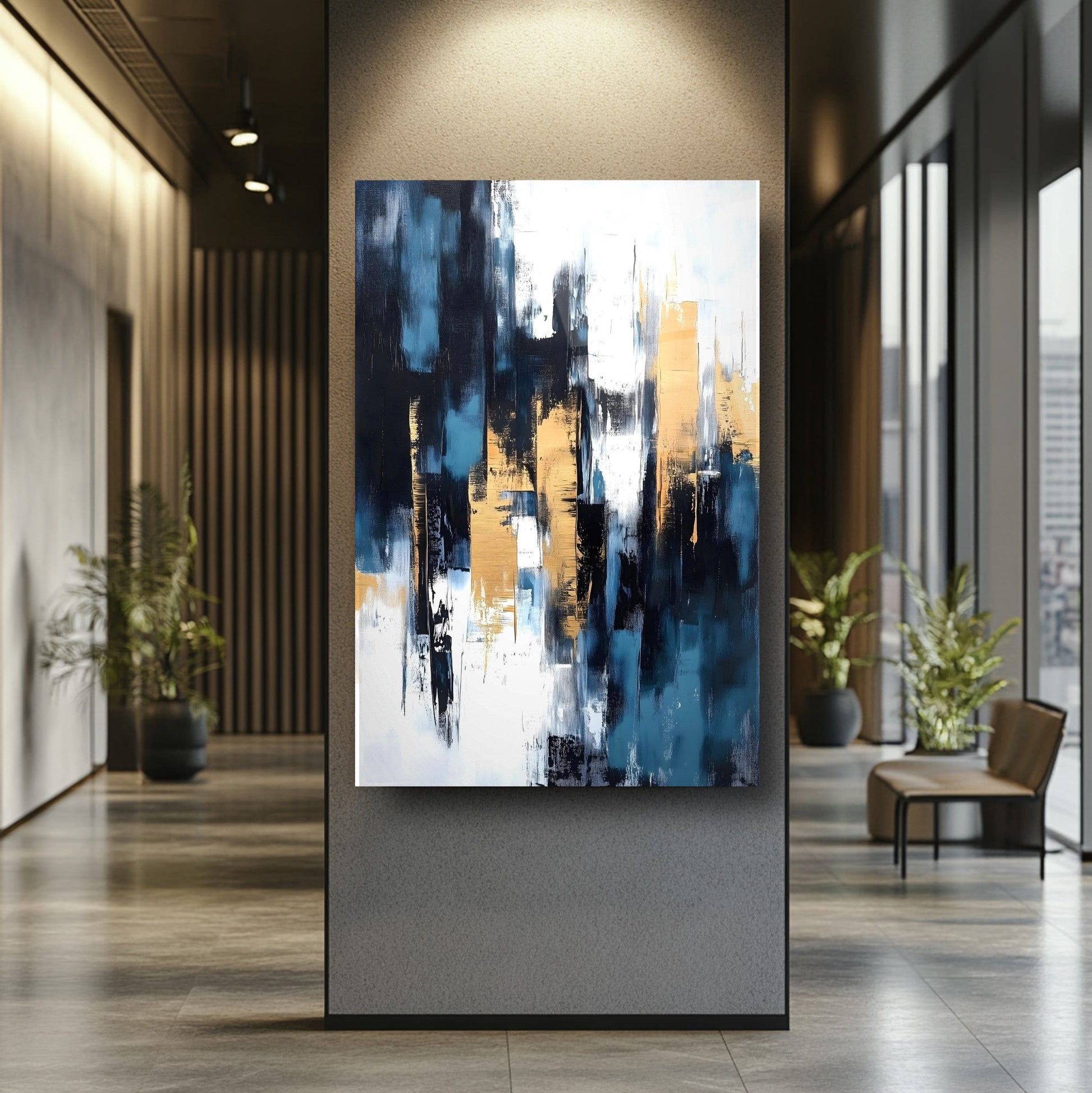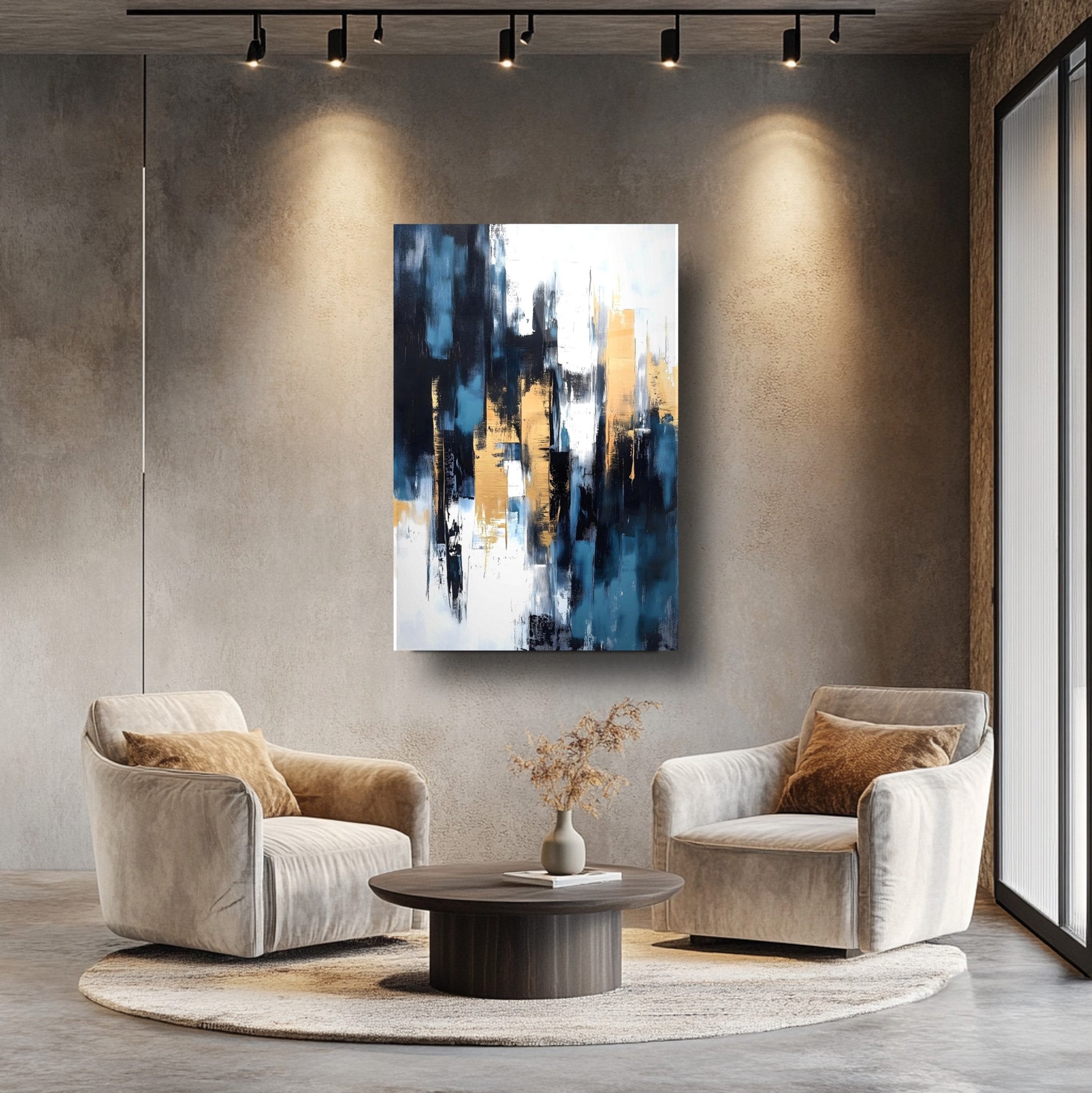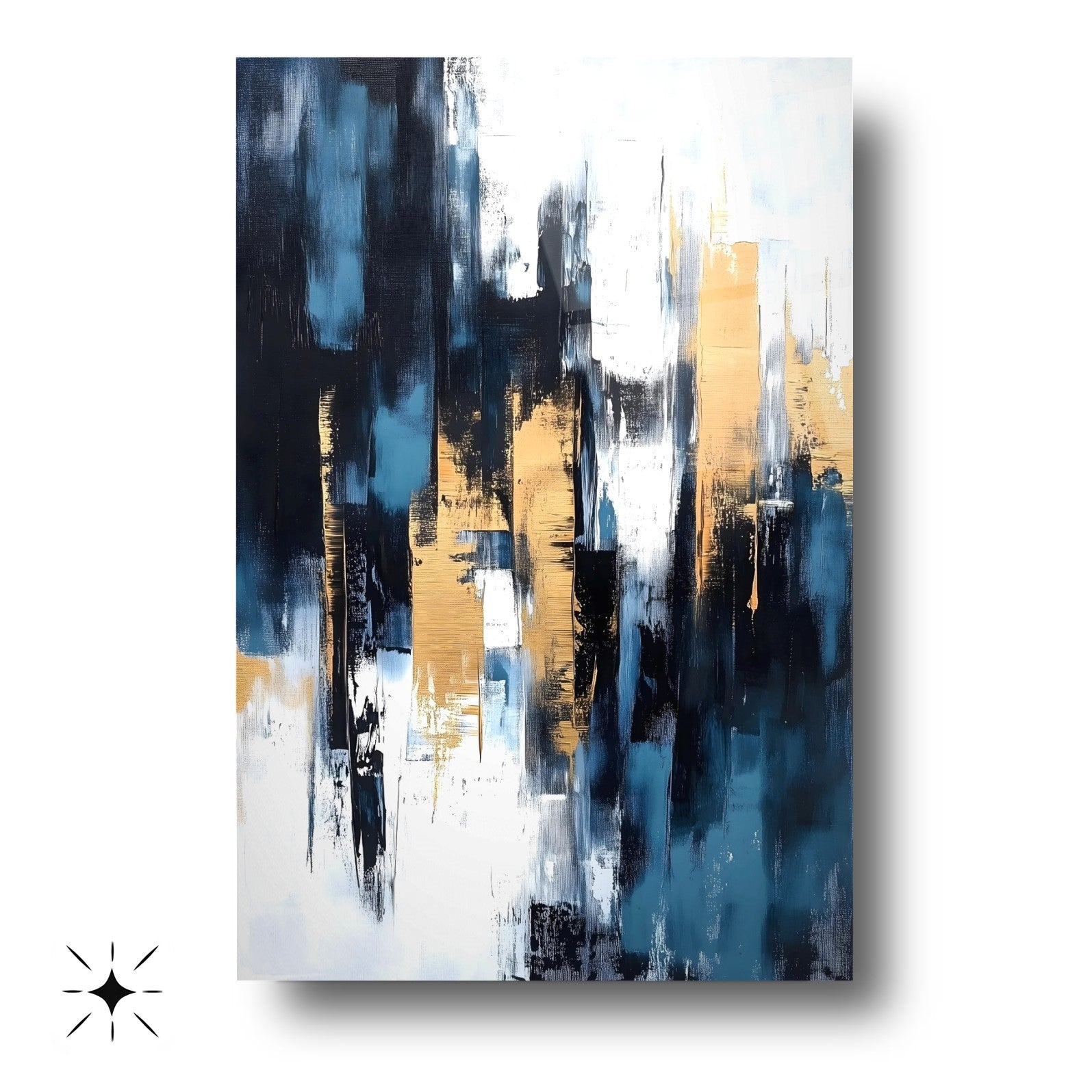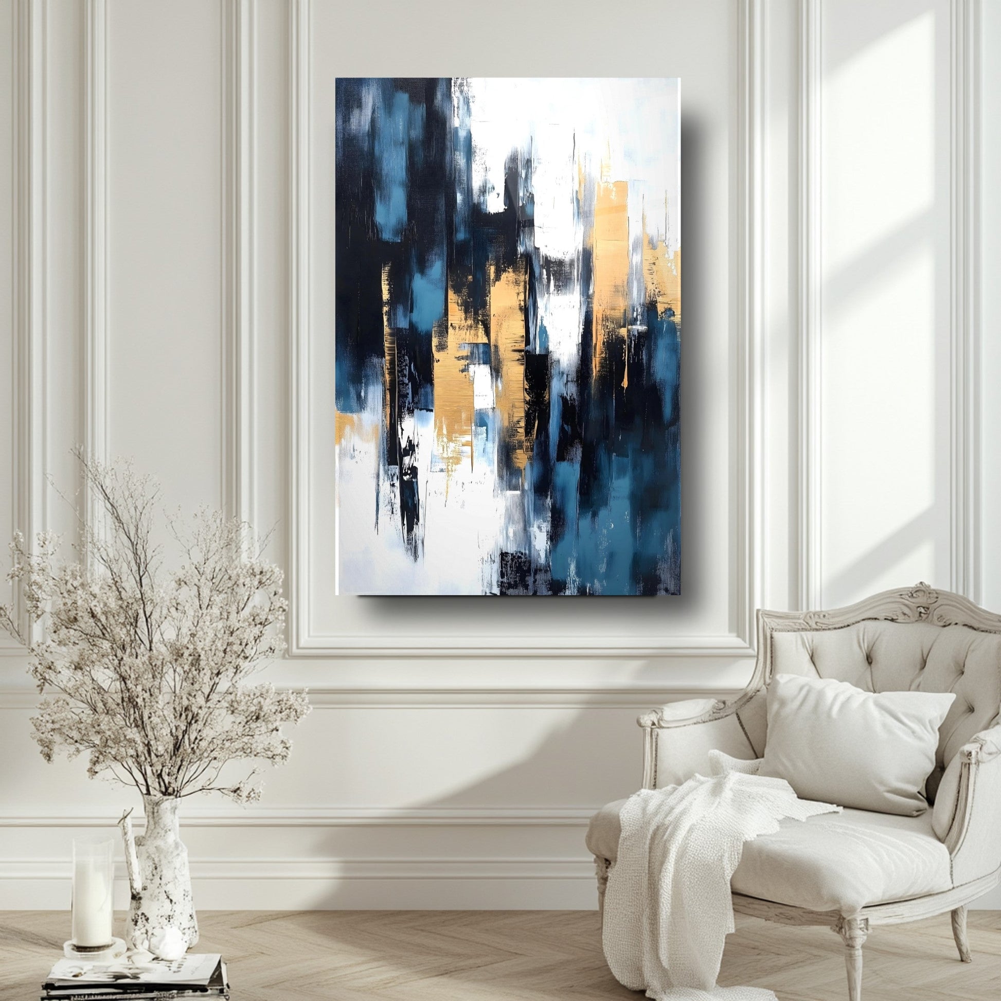 Gold ve mavi tonların uyumu, sade ve modern bir tarzla buluşarak bu cam tabloyu zamansız bir dekor haline getiriyor. Soyut yağlı boya görünümü sayesinde sanatsal bir derinlik sunarken, kırılmaz temperli cam yüzeyiyle dayanıklılığı estetikle bir araya getiriyor. Oturma odasından ofise kadar her alanda şıklık ve zarafet arayanlar için ideal bir modern cam tablo seçeneğidir.