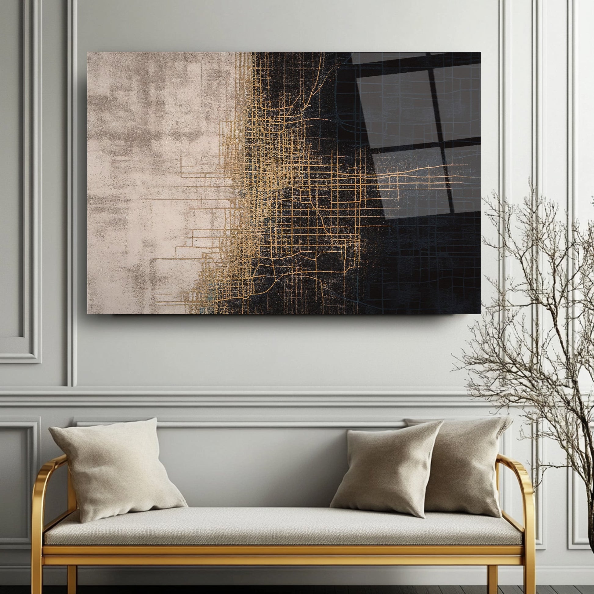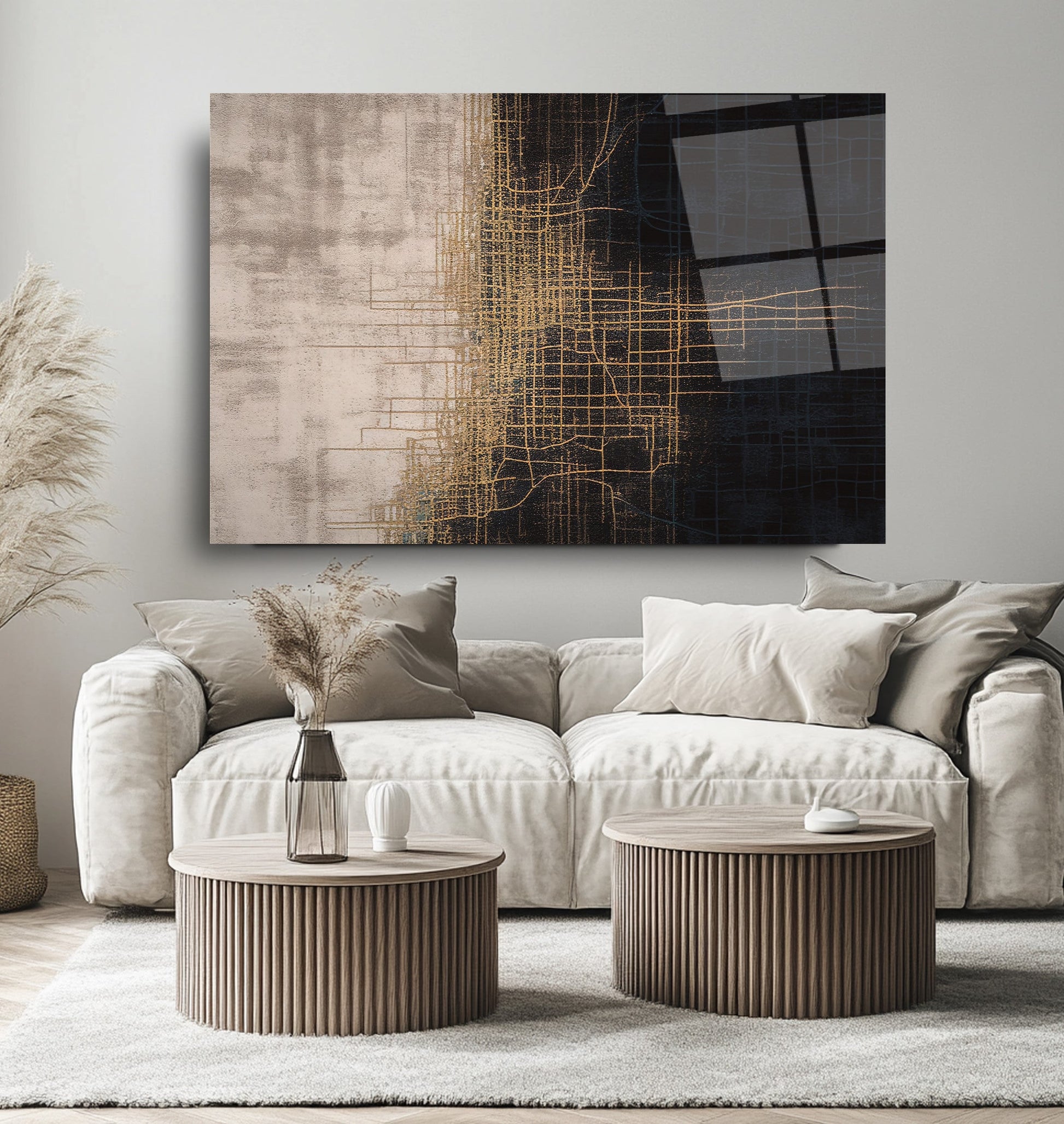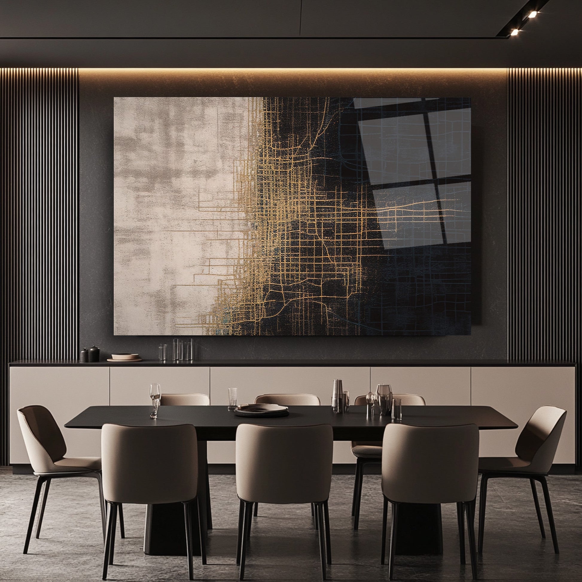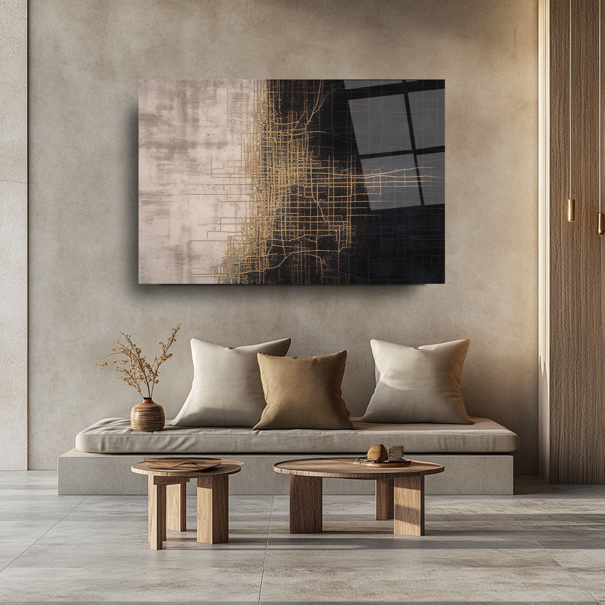 Mekanlarınıza Soyut Bir Zarafet: Gold Siyah Kahverengi Soyut Cam Tablo
