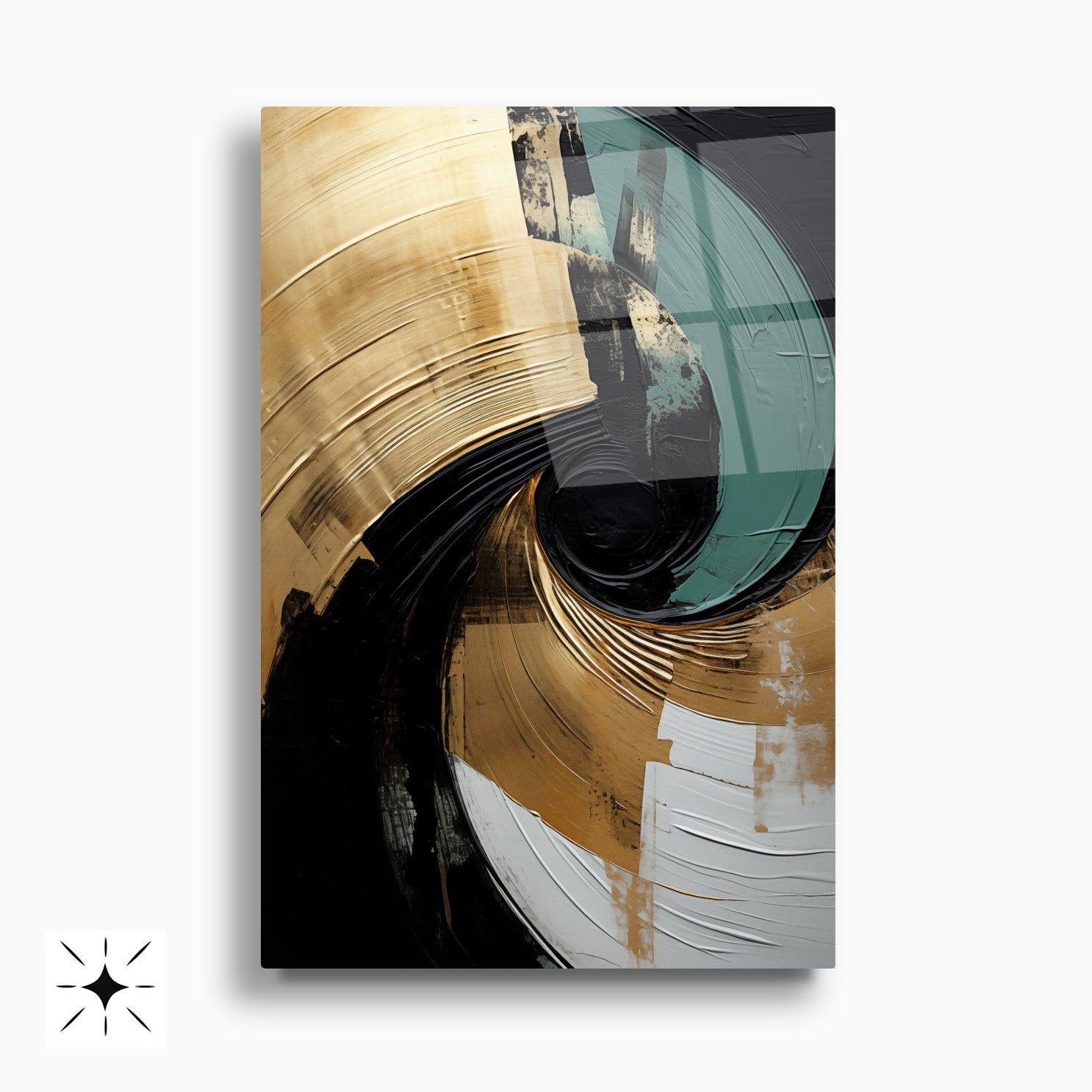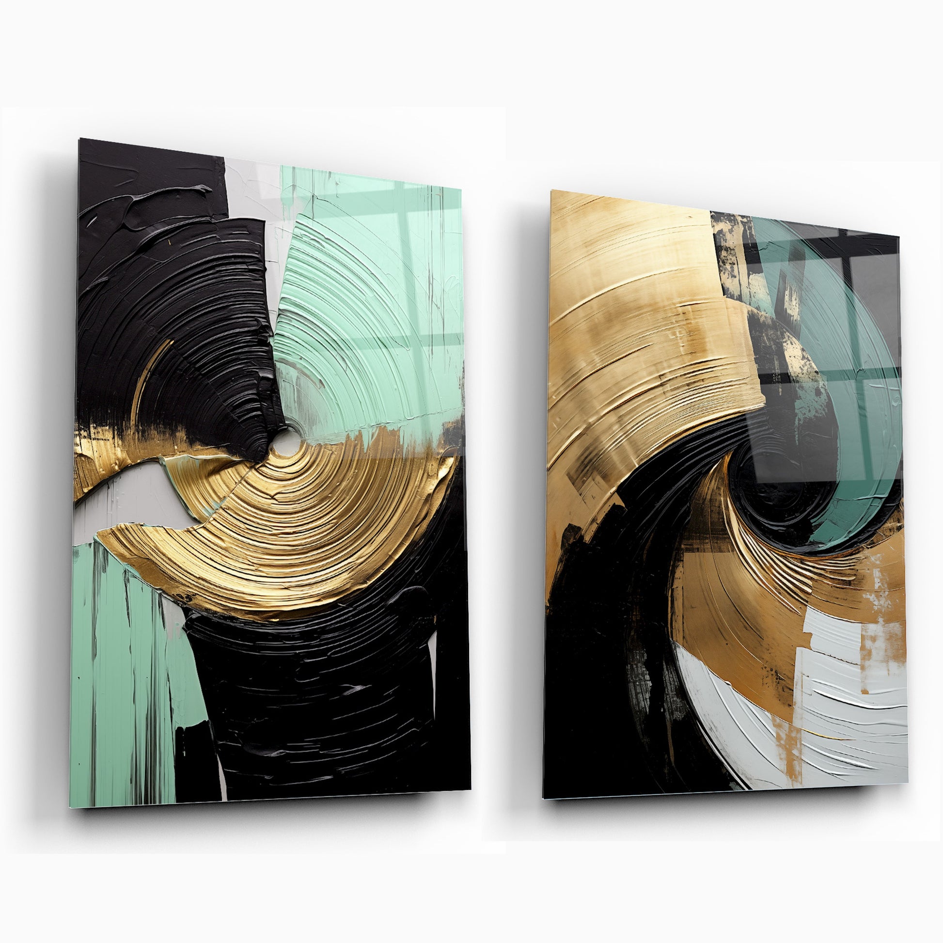 Gold Yeşil Soyut İkili Set Cam Tablo