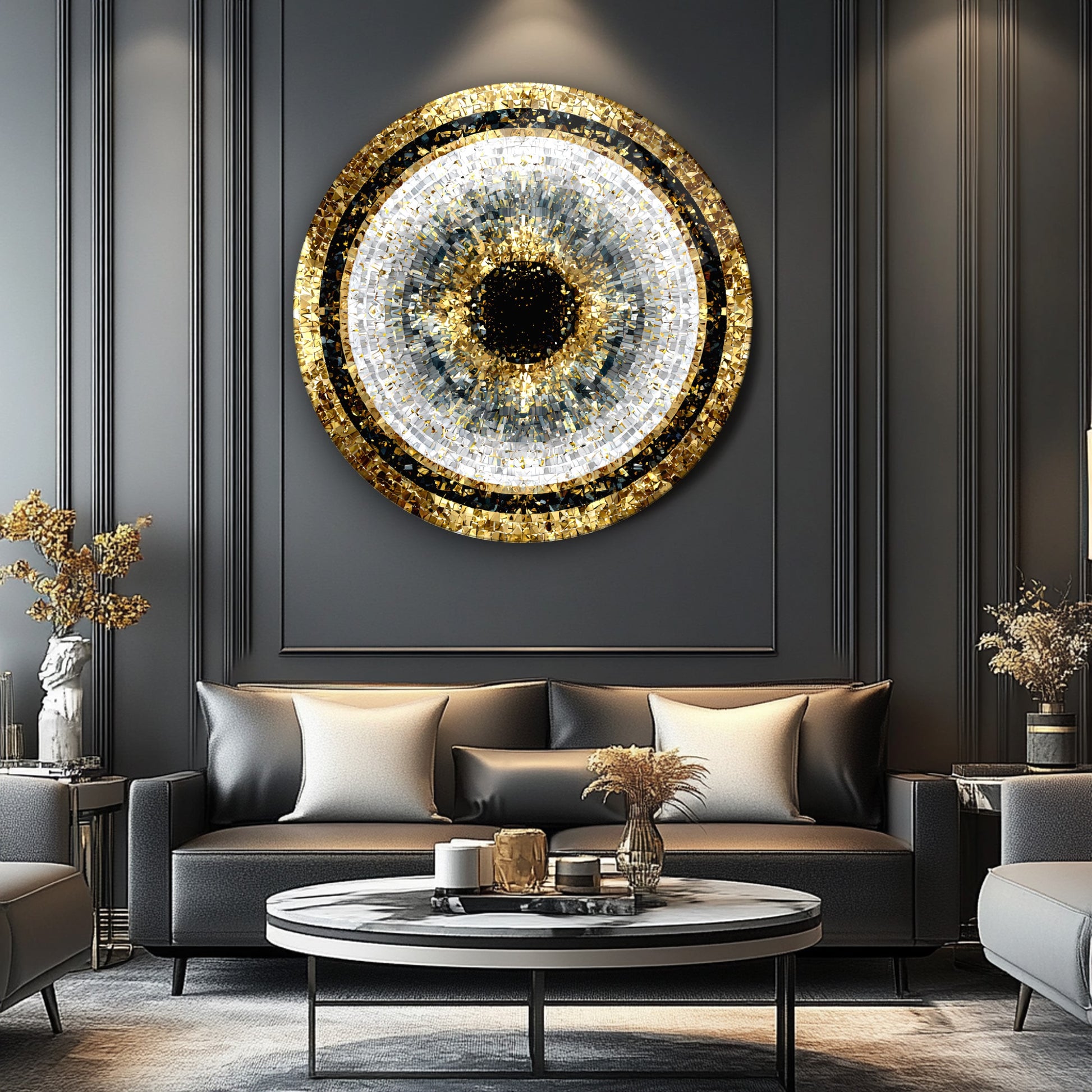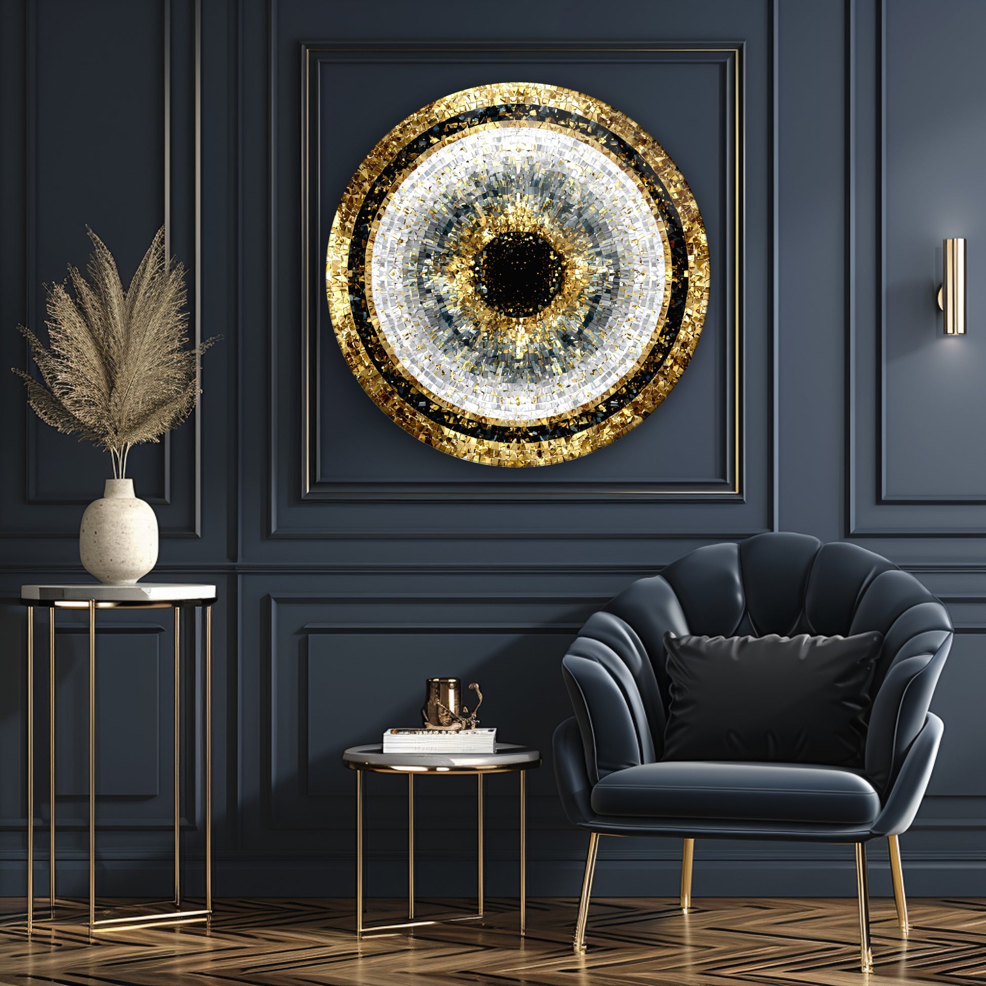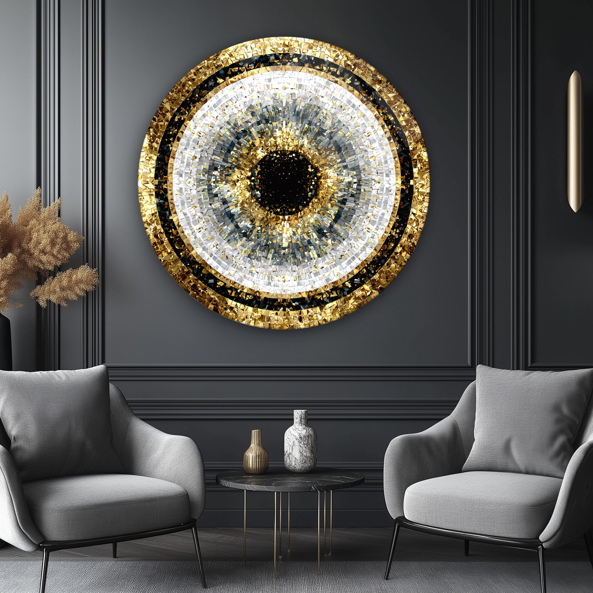 Gold Soyut Mozaik Göz Bebeği Yuvarlak Cam Tablo