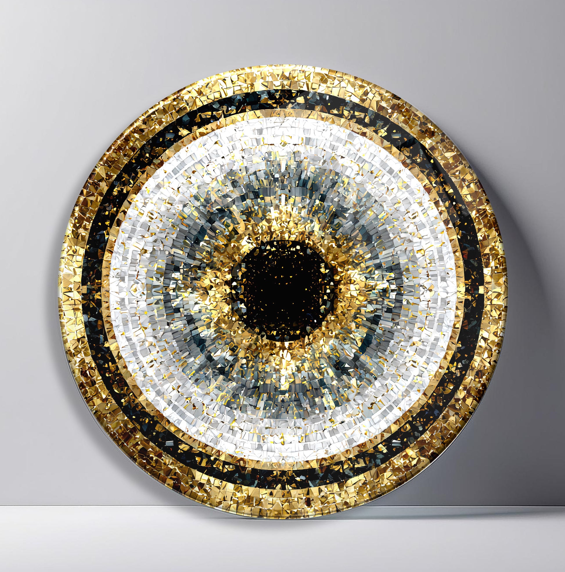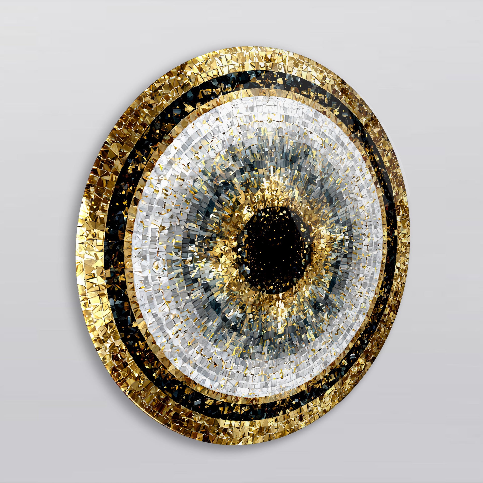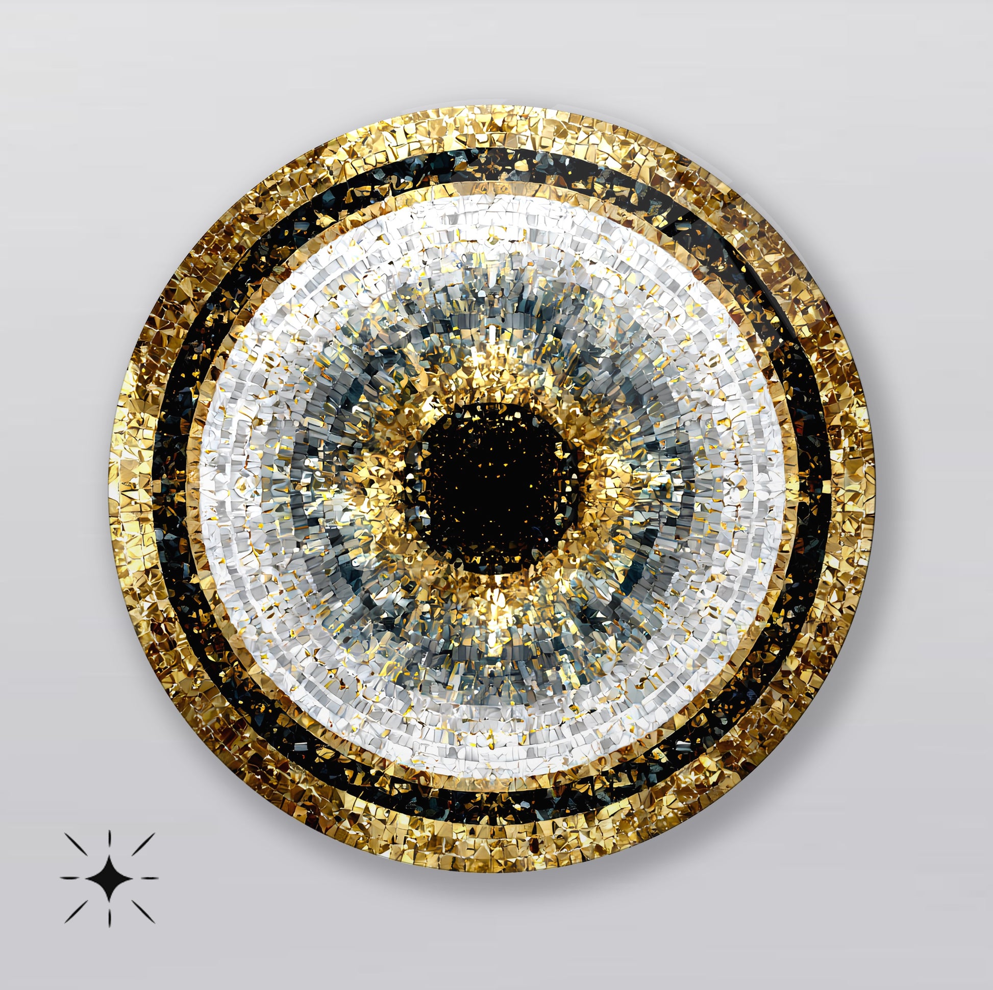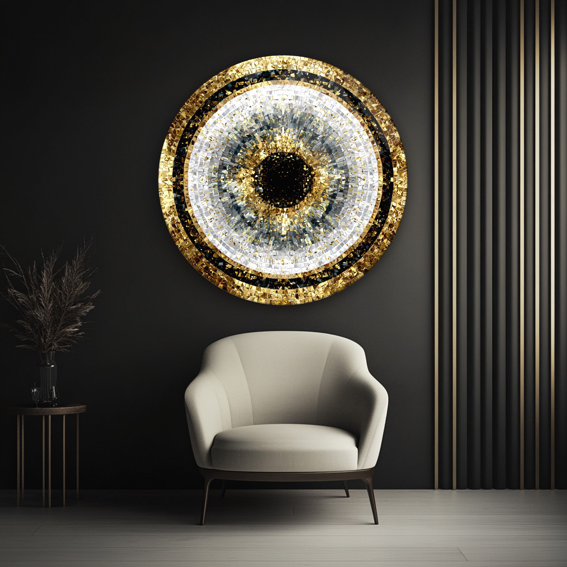 Gold Soyut Mozaik Göz Bebeği Yuvarlak Cam Tablo