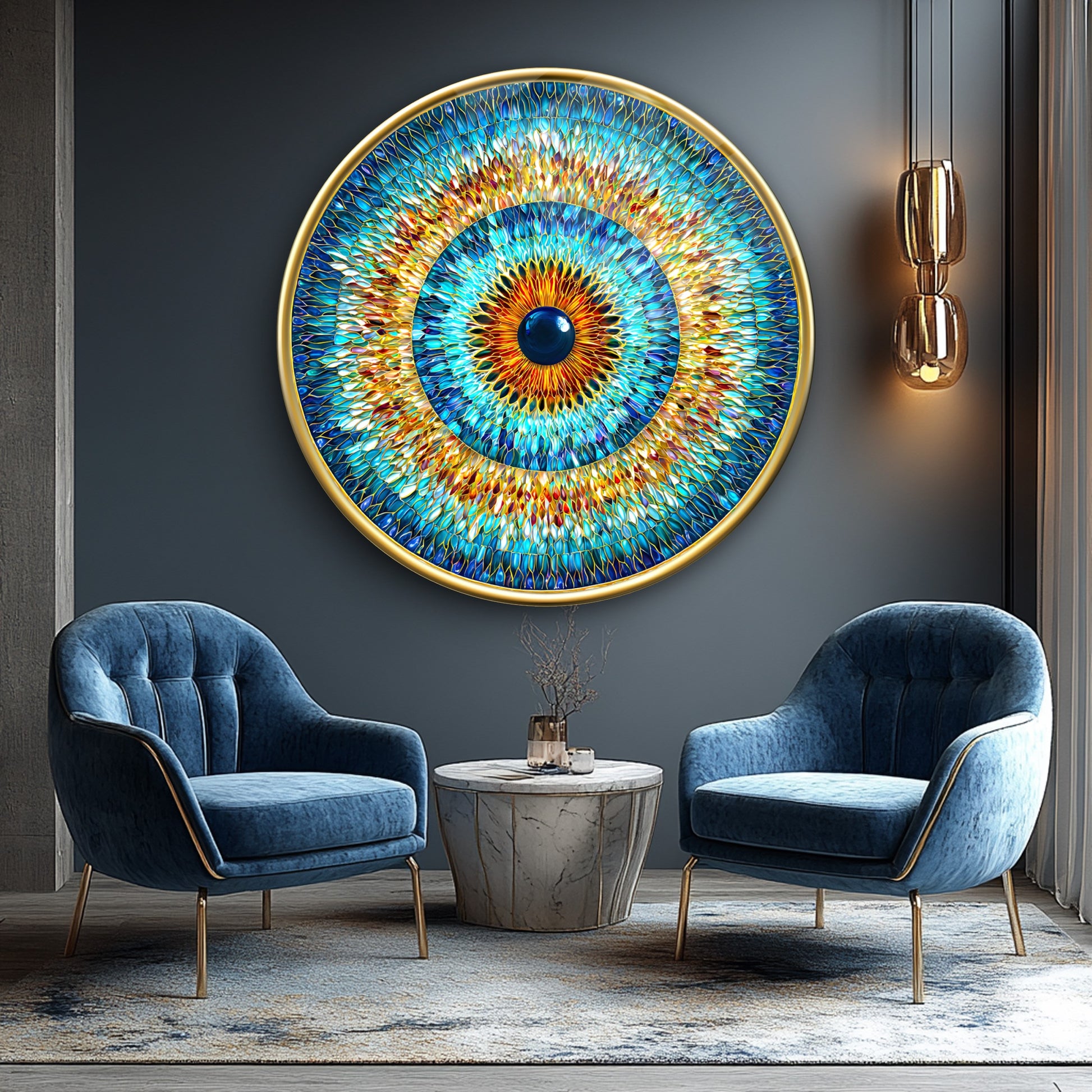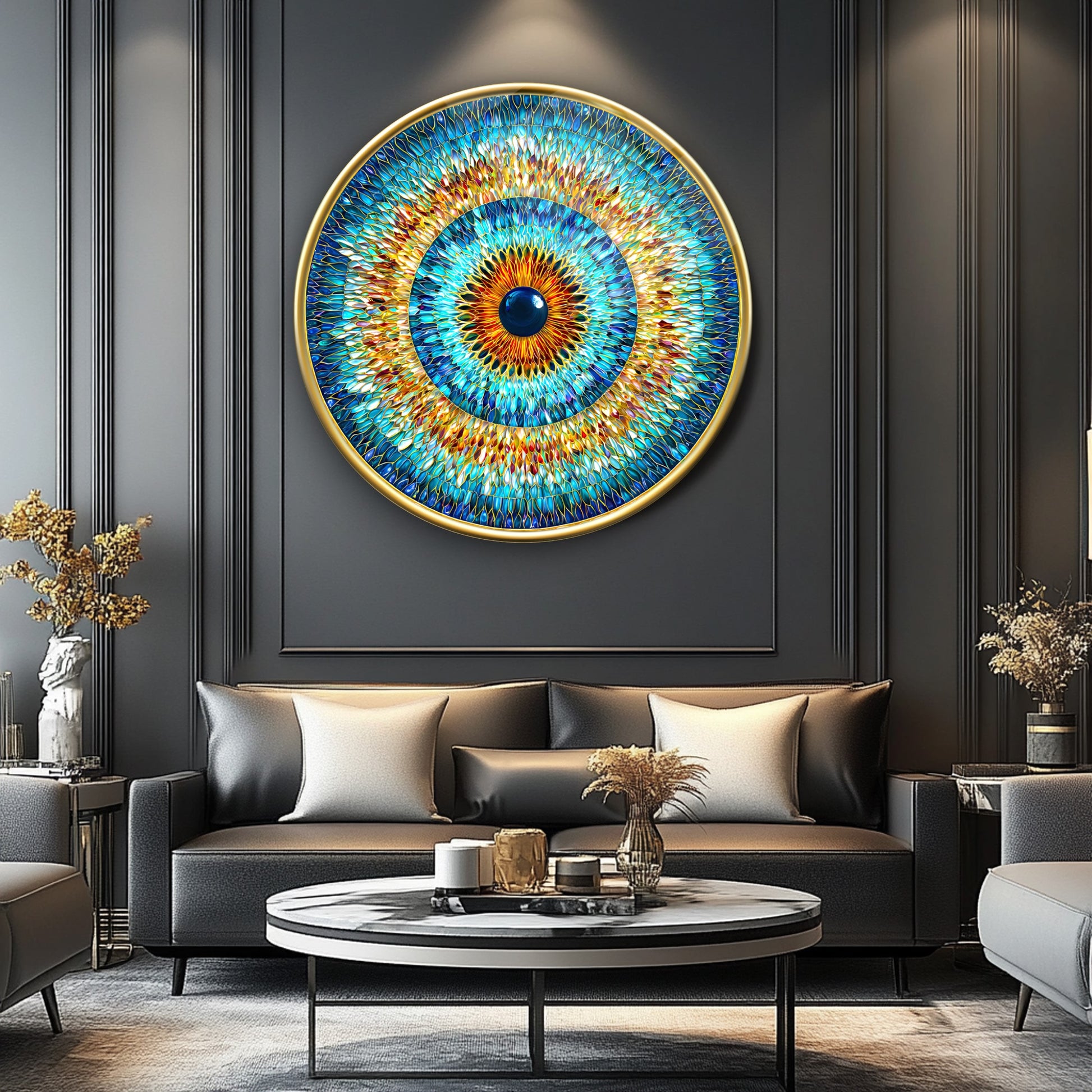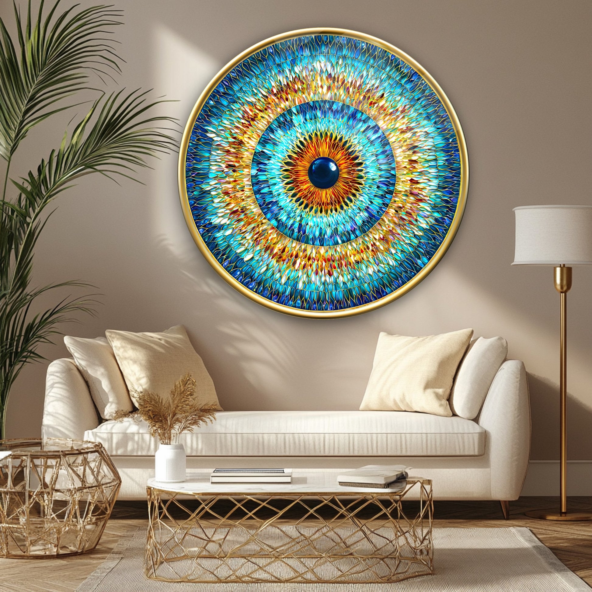 Vitray Desen Göz Bebeği Yuvarlak Cam Tablo
