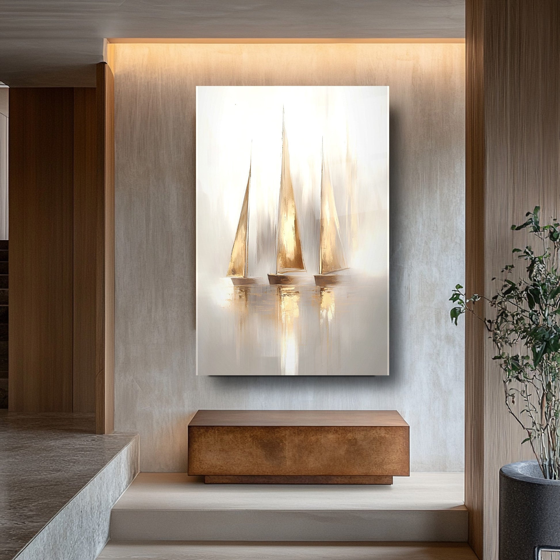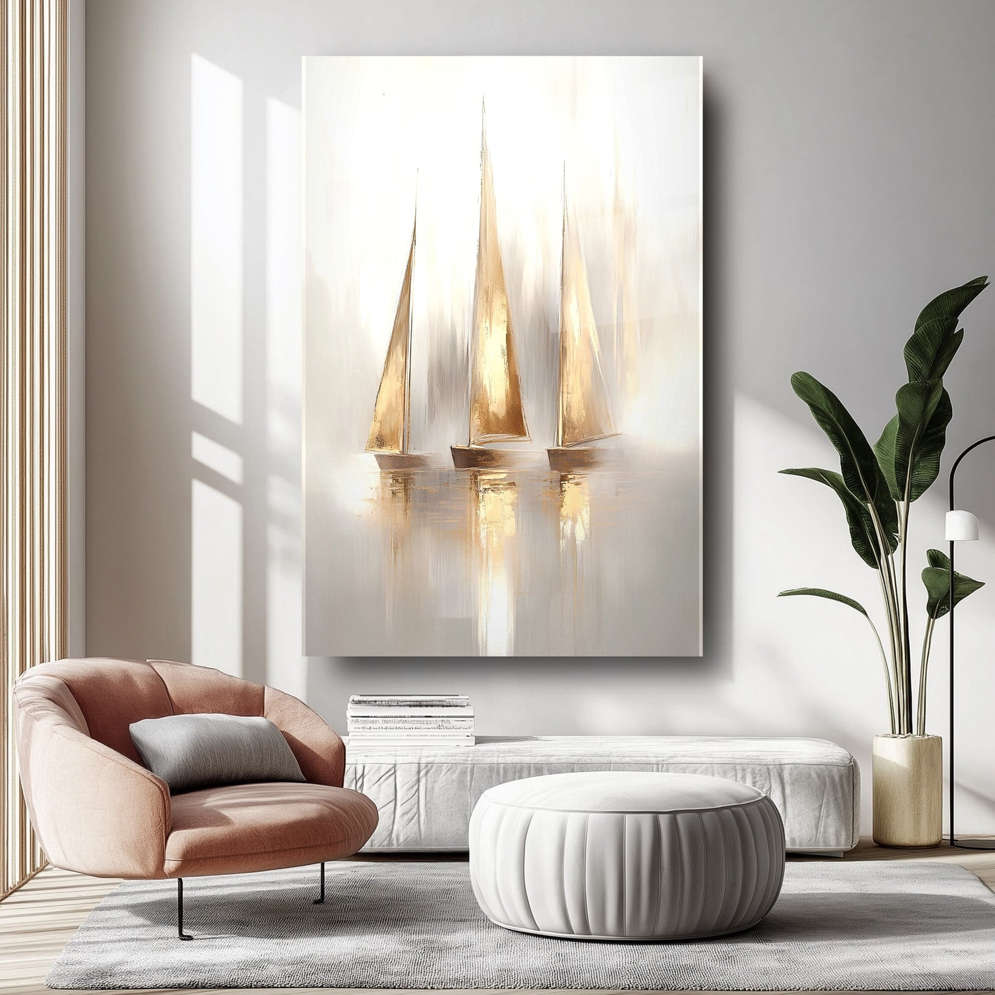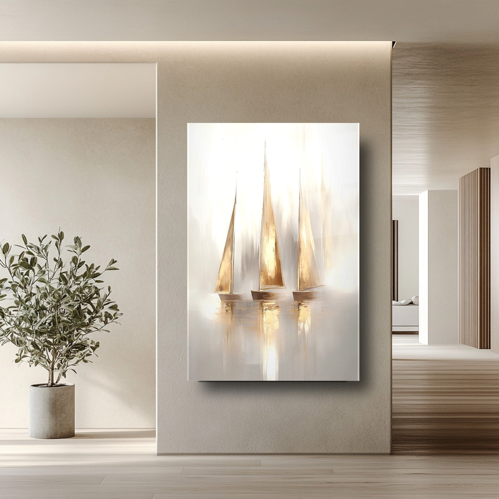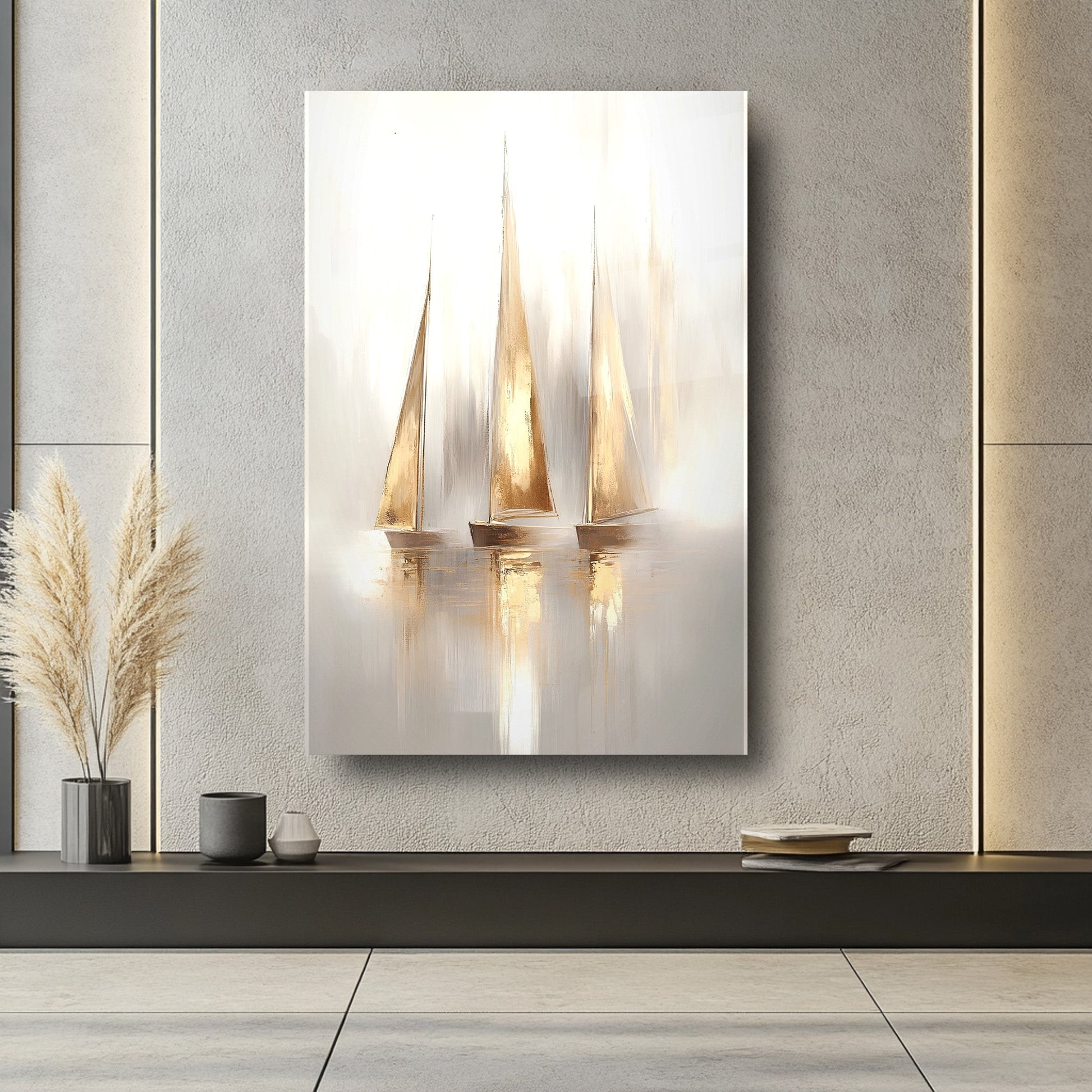 Deniz tutkunları için şık bir seçim olan bu kırılmaz cam tablo, dayanıklı temperli camdan yapılmış gerçek cam tablodur. Gold detaylı yelkenli gemiler ve deniz manzarası, salon ve ofis dekorasyonlarınıza zarafet katar. Uzun ömürlü yapısıyla modern mekanlarda estetik ve fonksiyonelliği bir araya getirir.