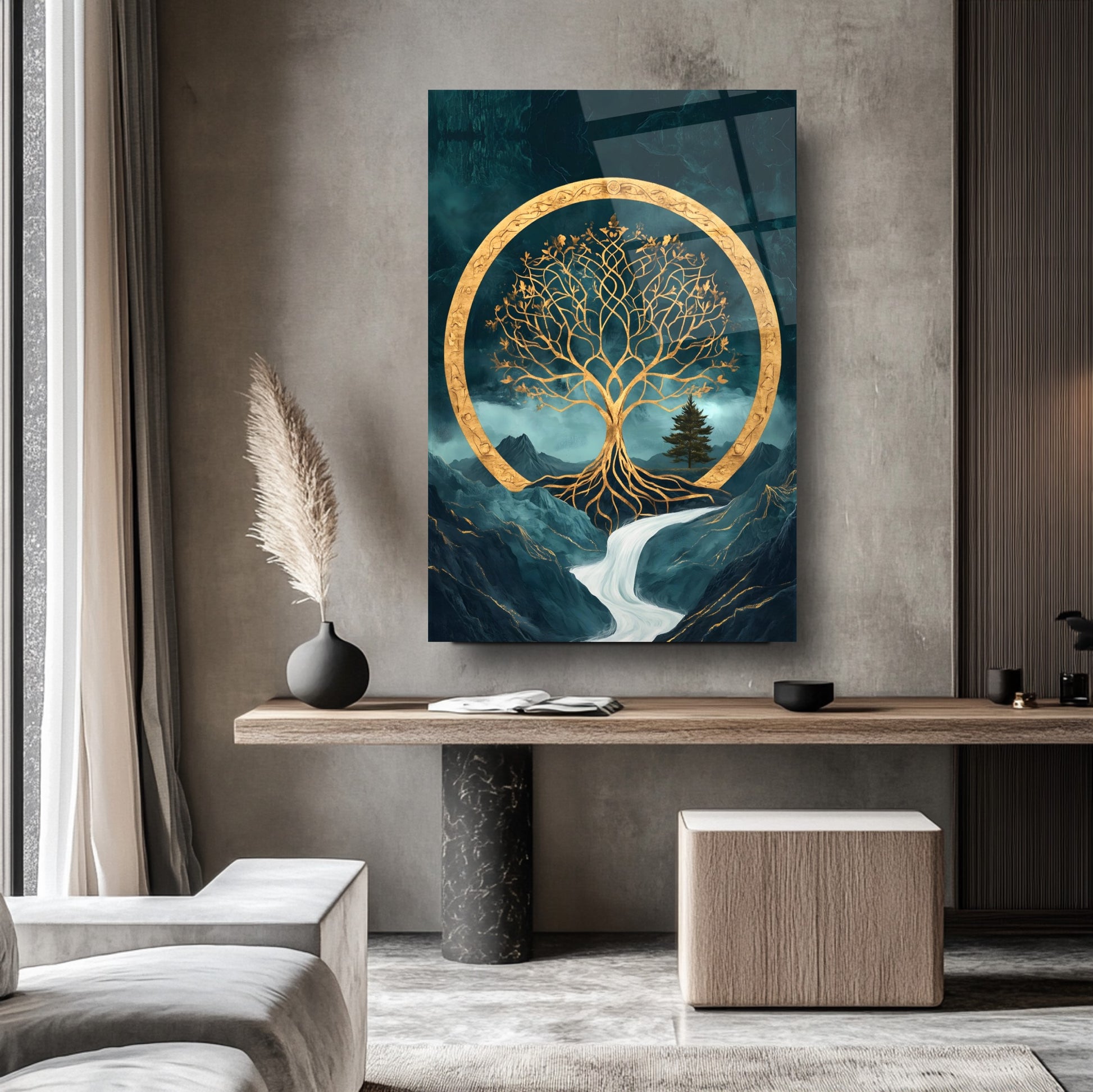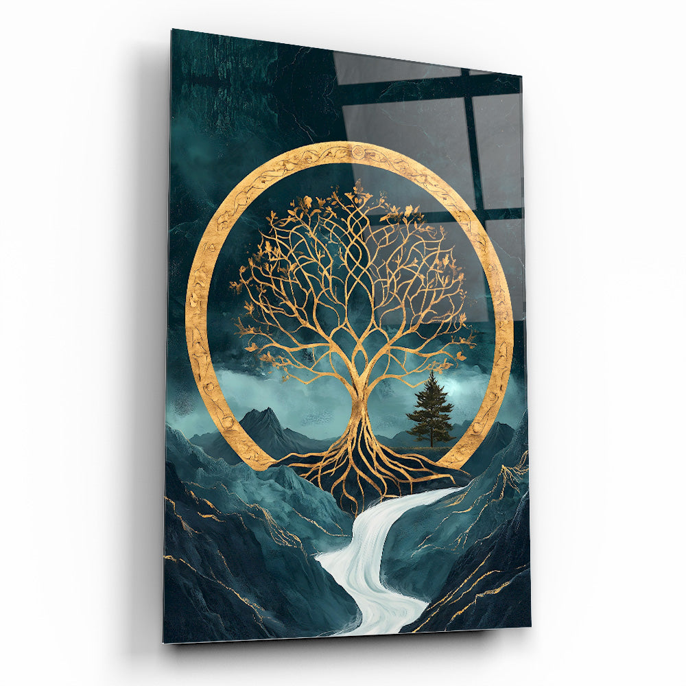 Mekanlarınıza Yeşil ve Altın Işıltılı Bir Yaşam: Gold Yeşil Hayat Ağacı Cam Tablo