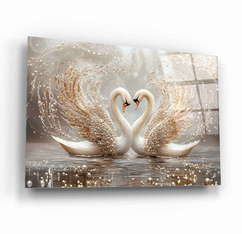 Altın askılardan süzülen zarif kuğular, yumuşak arka plan ve inci detaylarla buluşarak romantik ve estetik bir atmosfer yaratıyor. Özellikle yatak odası ve oturma alanlarında huzur, zarafet ve duygusal bir ifade arayanlar için ideal bir tercih. UV baskılı, 4 mm kırılmaz temperli cam yapısı sayesinde hem uzun ömürlü hem de göz alıcıdır. Modern ve çerçevesiz tasarımı, her dekor stiline kolayca uyum sağlar. Cam tablo, aşk temalı duvar dekorasyonu ve zarif kuğu tasarımları arayanlar için mükemmel bir seçimdir.