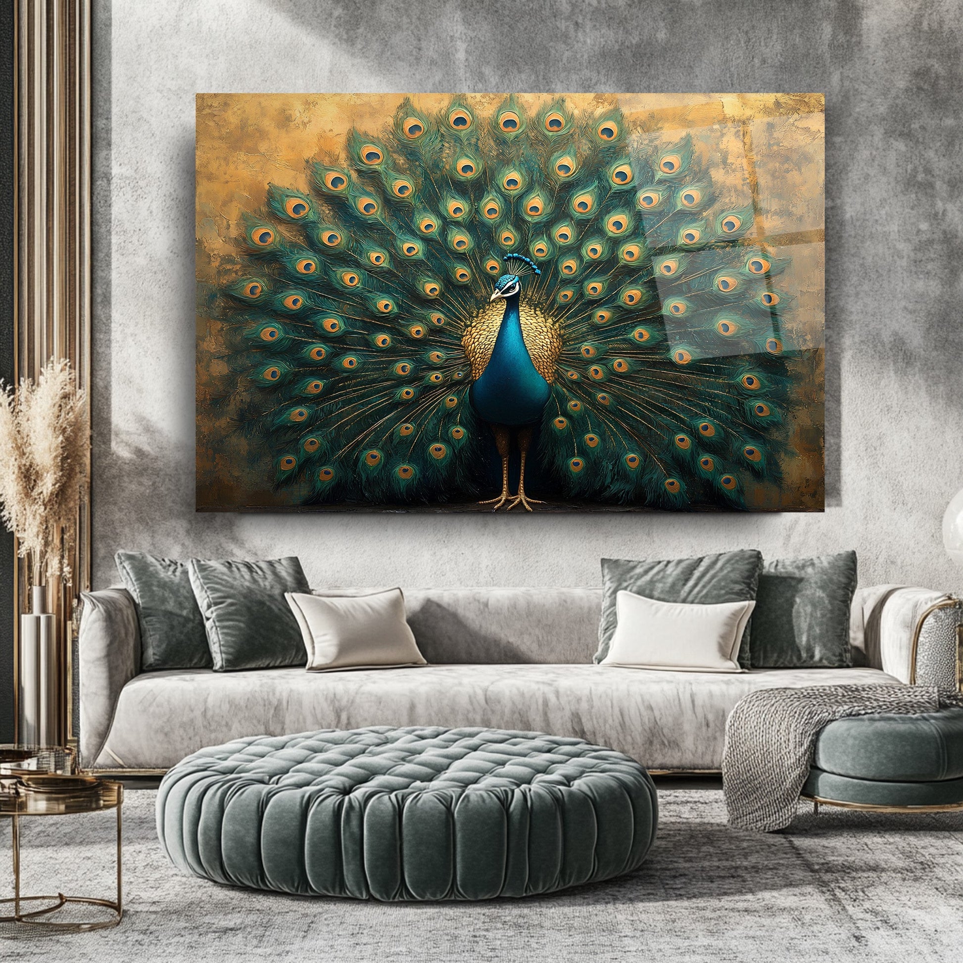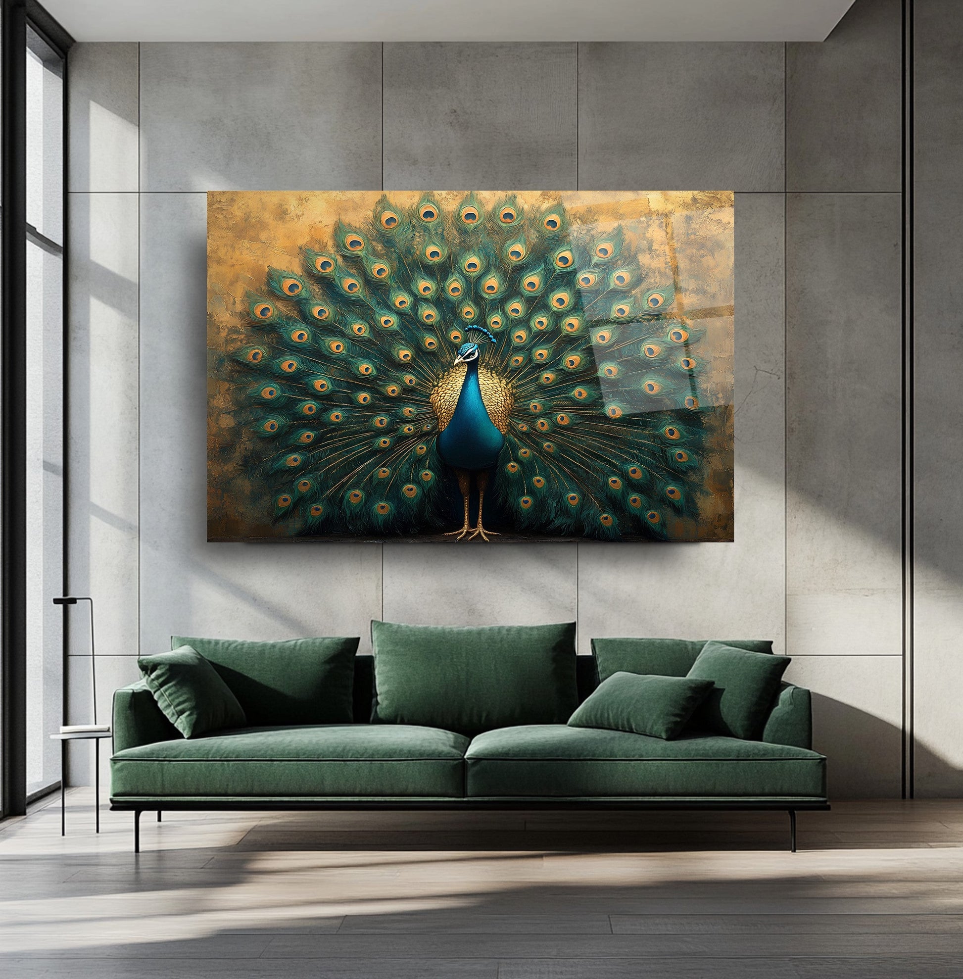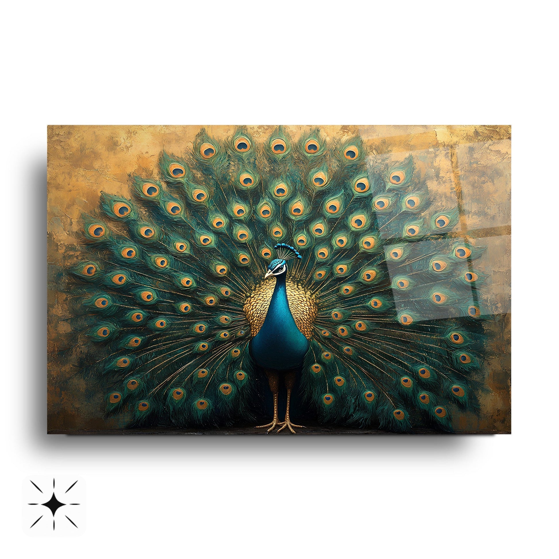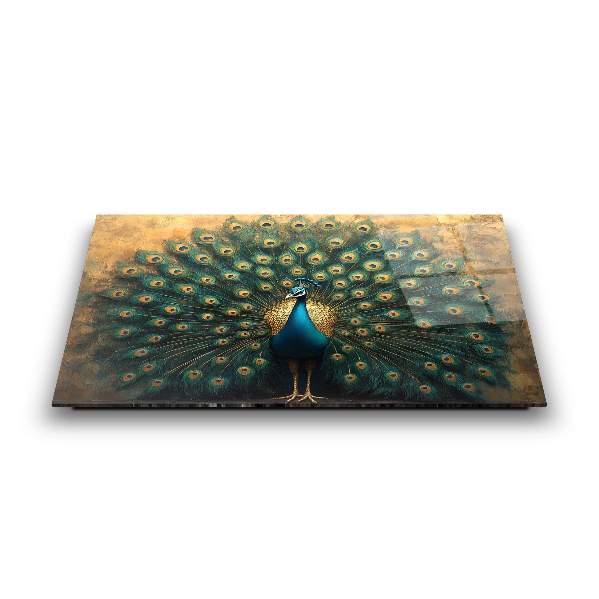 Zarafetin ve Asaletin Simgesi: Gold Yeşil Tavus Kuşu Cam Tablo