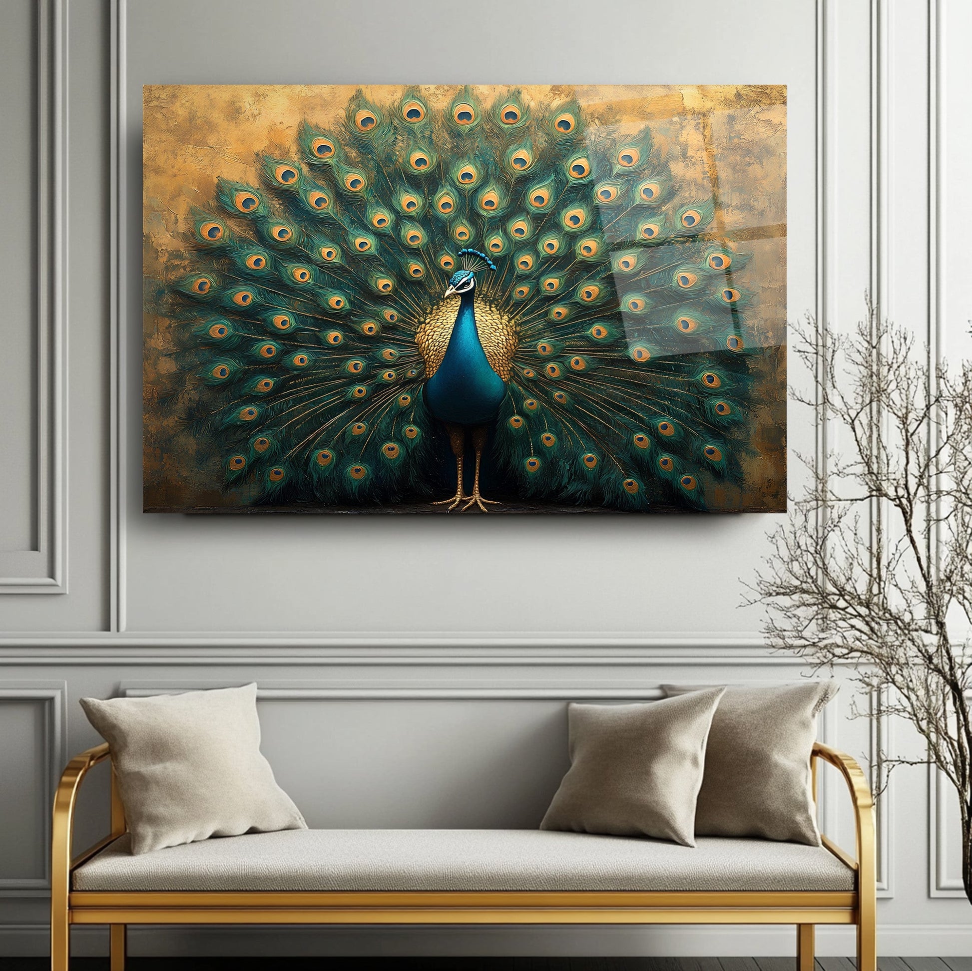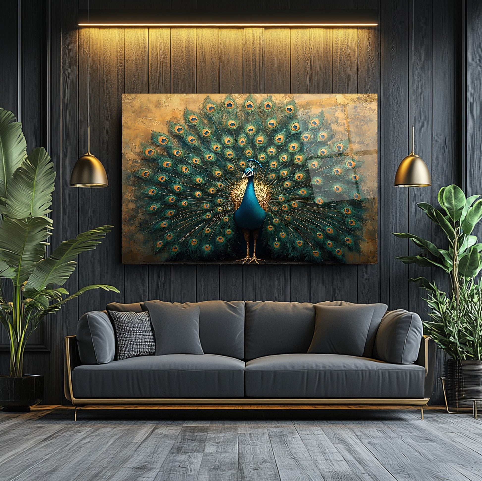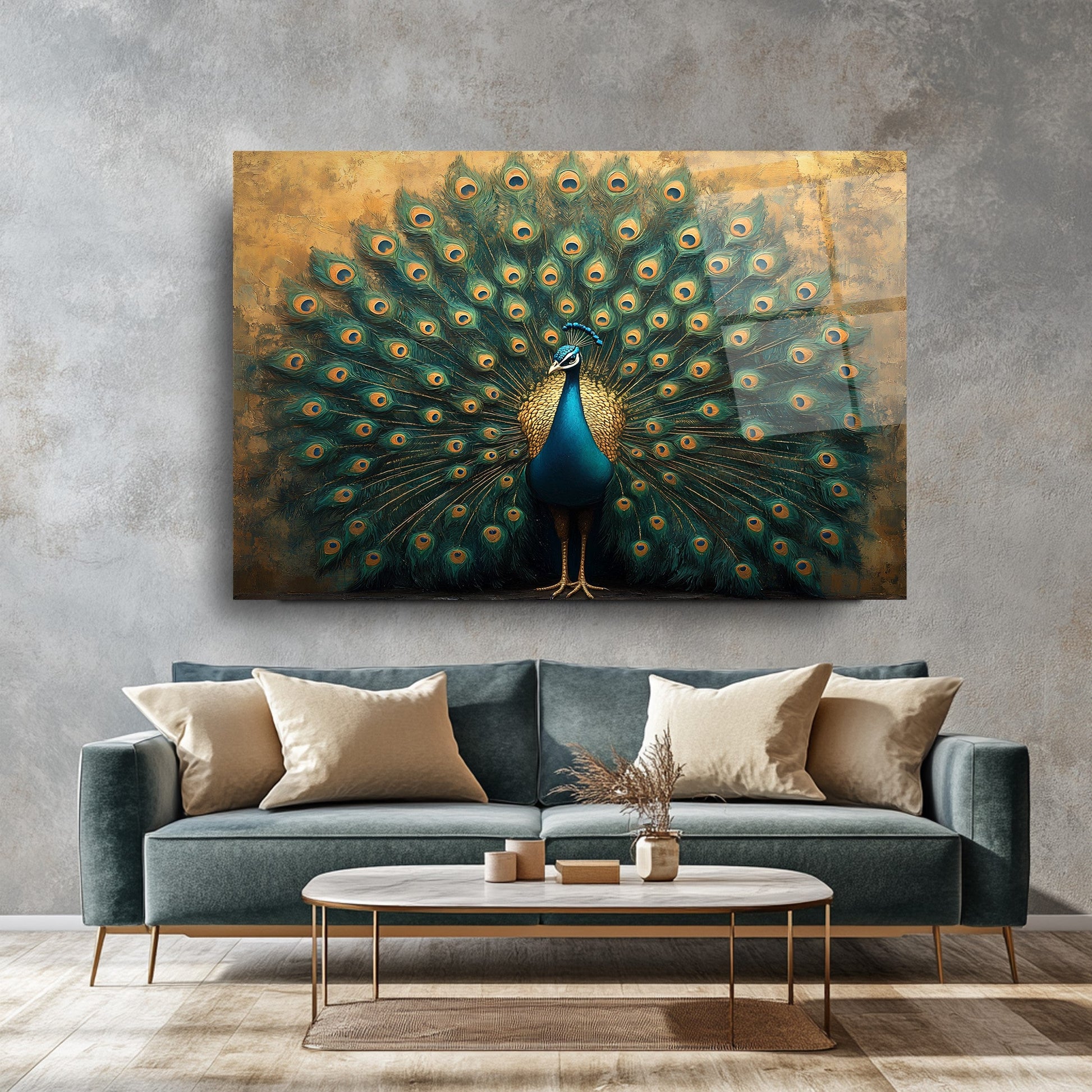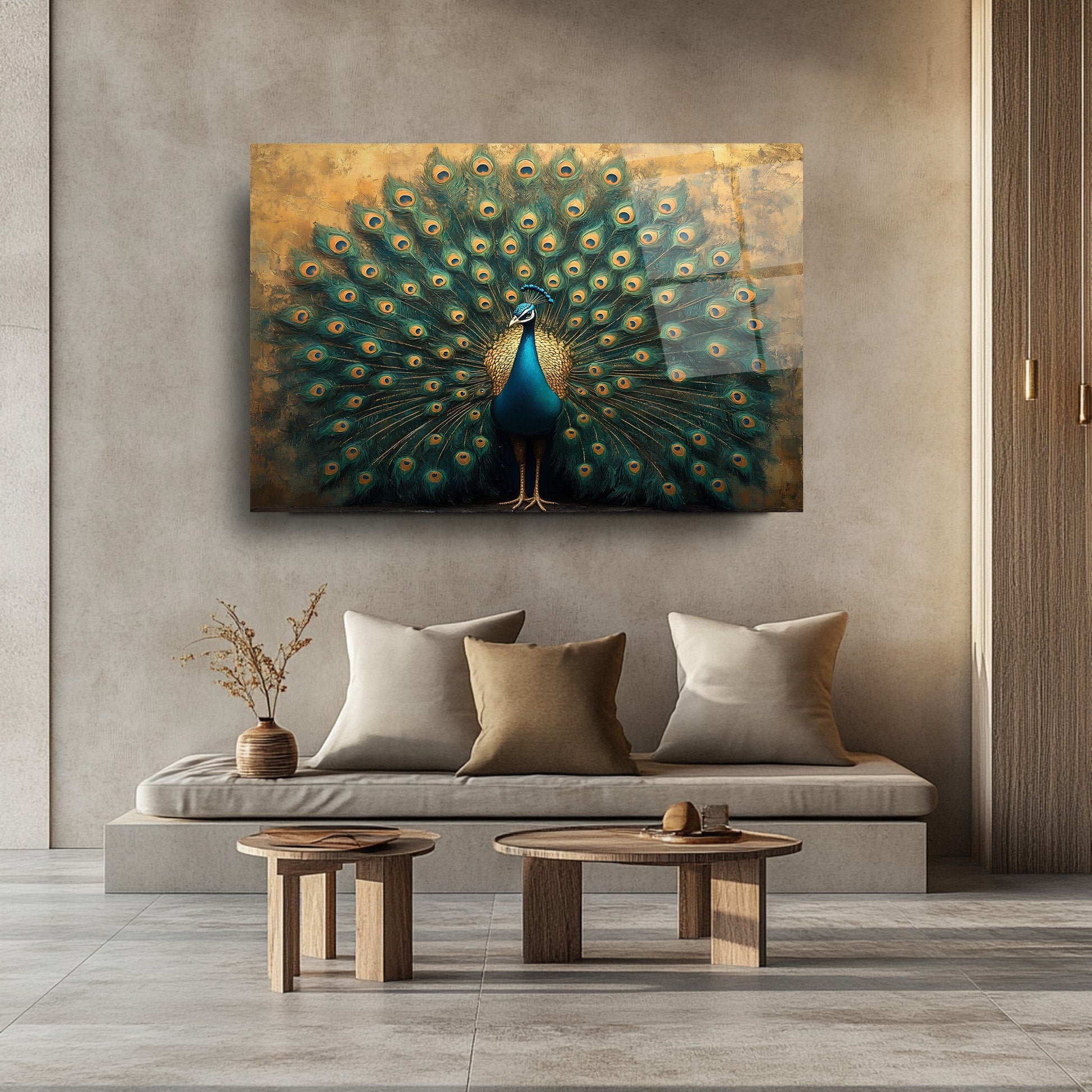 Zarafetin ve Asaletin Simgesi: Gold Yeşil Tavus Kuşu Cam Tablo
