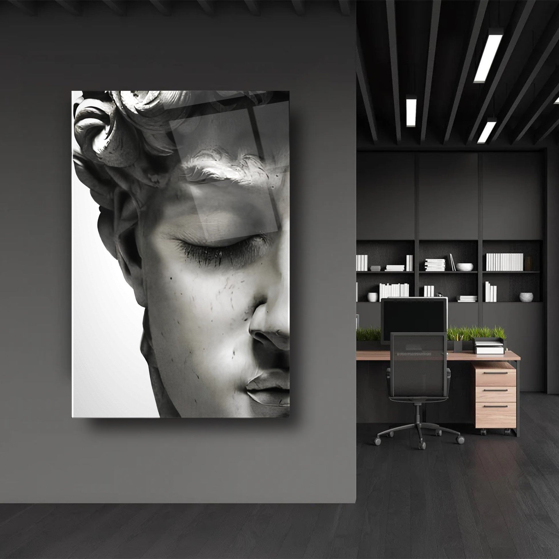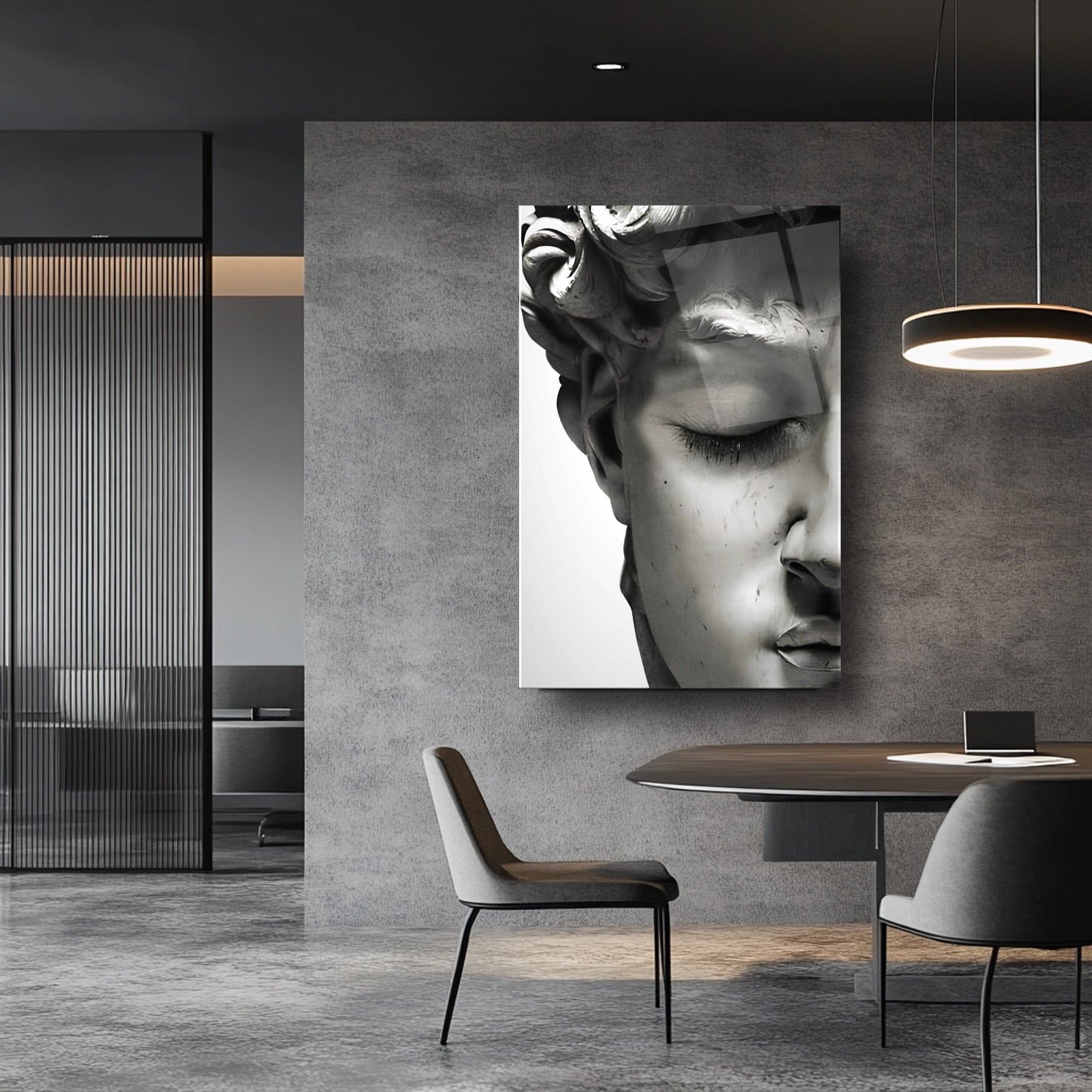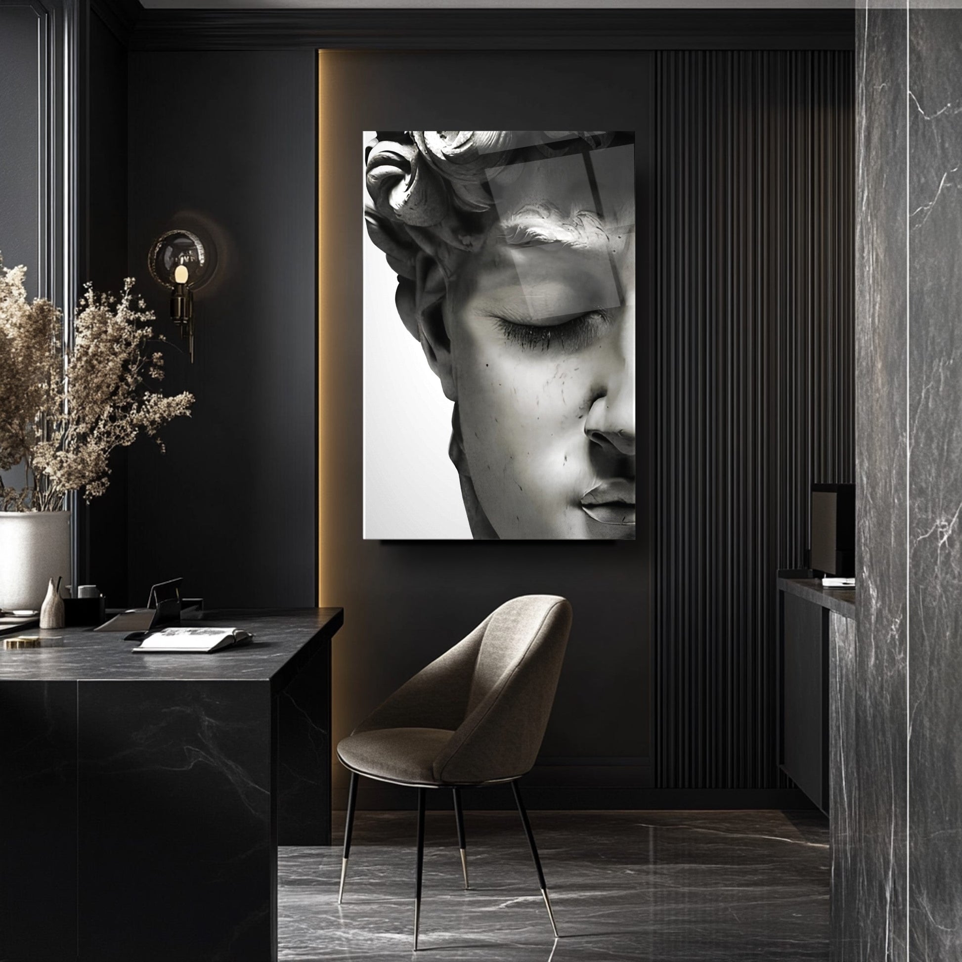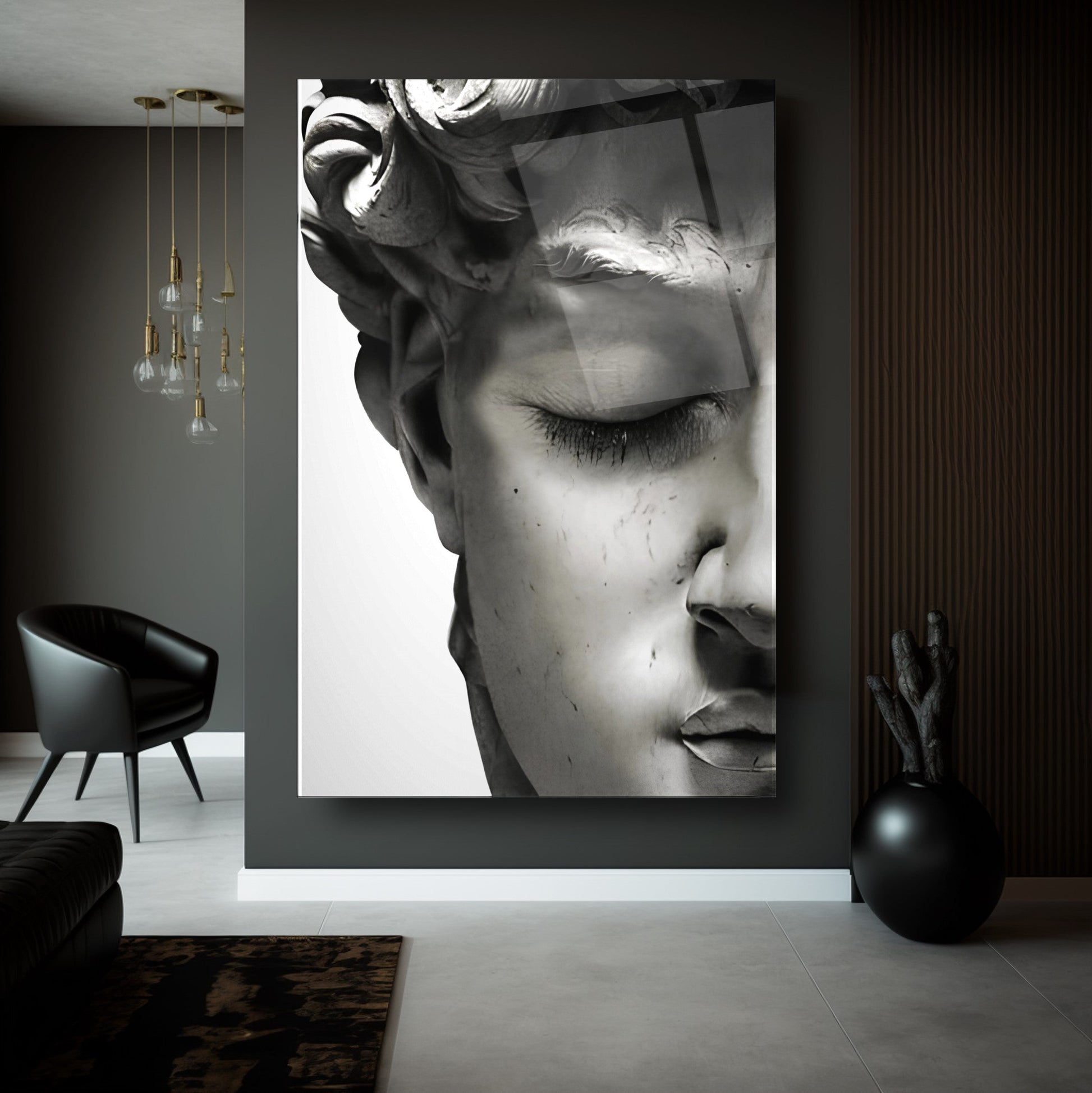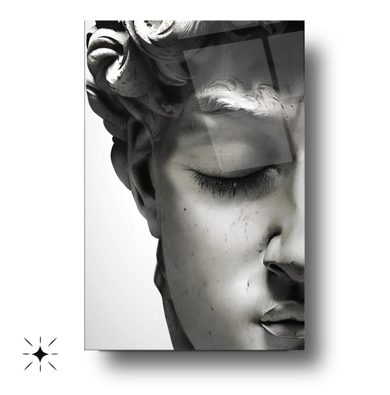Sanat ve Huzurun Buluşması: Gözü Kapalı Davud Heykeli Büst Cam Tablo