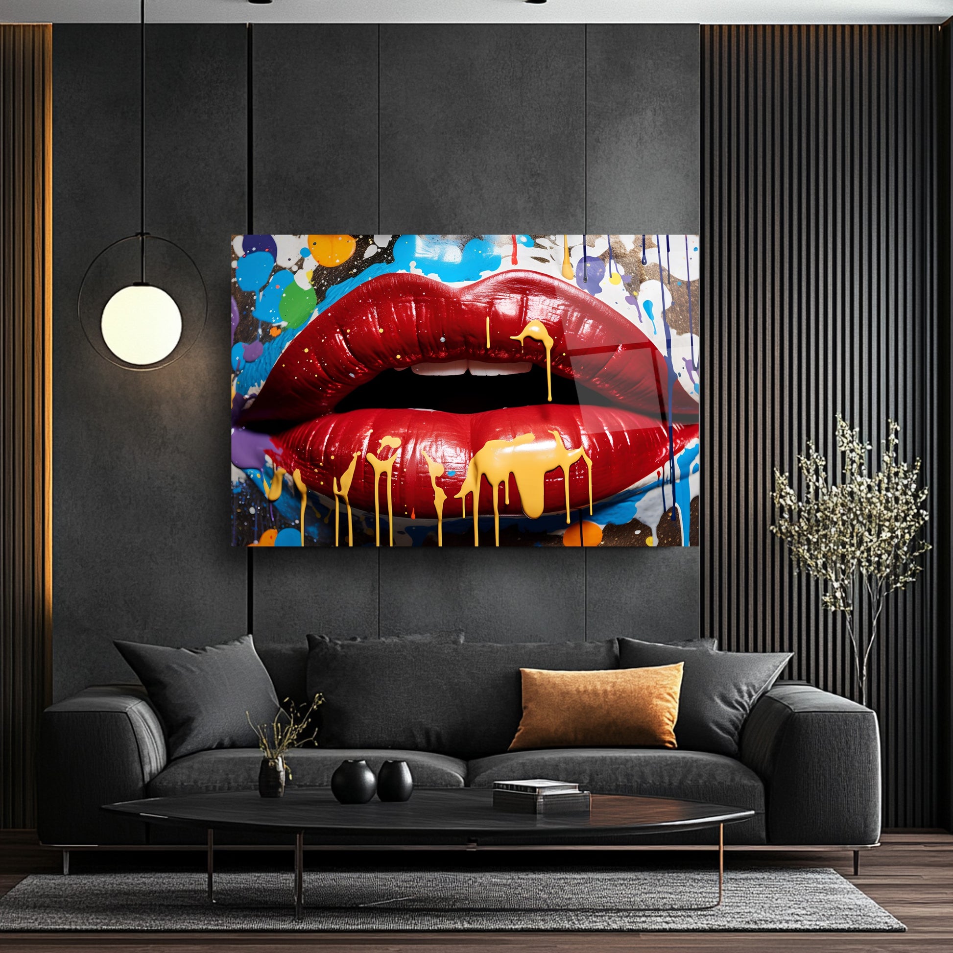 Grafiti tarzıyla cesur ve modern bir dokunuş! Siyah arka plan üzerinde kırmızı dudak deseniyle dikkat çeken bu cam tablo, yaşam alanlarınıza enerjik ve iddialı bir atmosfer katar. Ultra-clear temperli cam yüzeyi ve UV baskı teknolojisi sayesinde renkler uzun yıllar canlılığını korur. Rodajlı kenarlarıyla güvenli, çerçevesiz yapısıyla sade ve şık bir görünüm sunar. Özellikle kuaför salonları, genç odaları veya modern dekorasyon sevenler için ideal seçim. Cam tablo, kırılmaz cam baskı ve modern duvar dekoru arayanlara özel olarak tasarlandı.