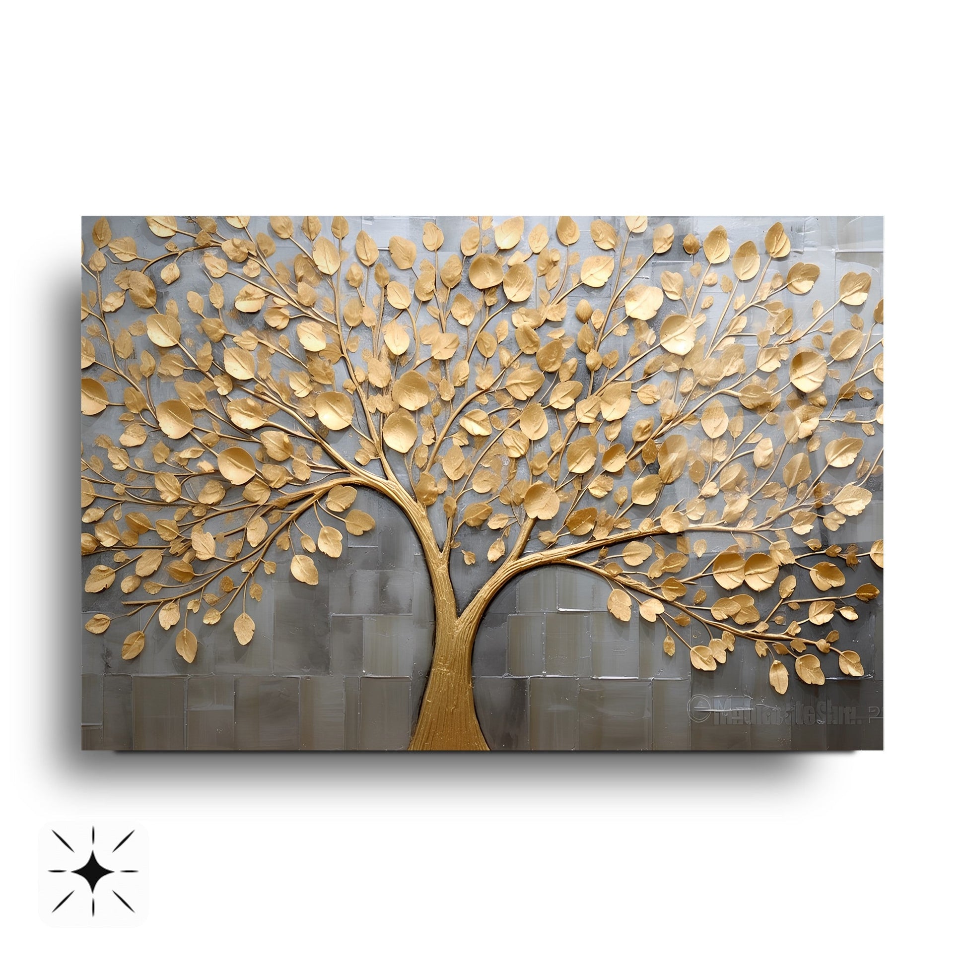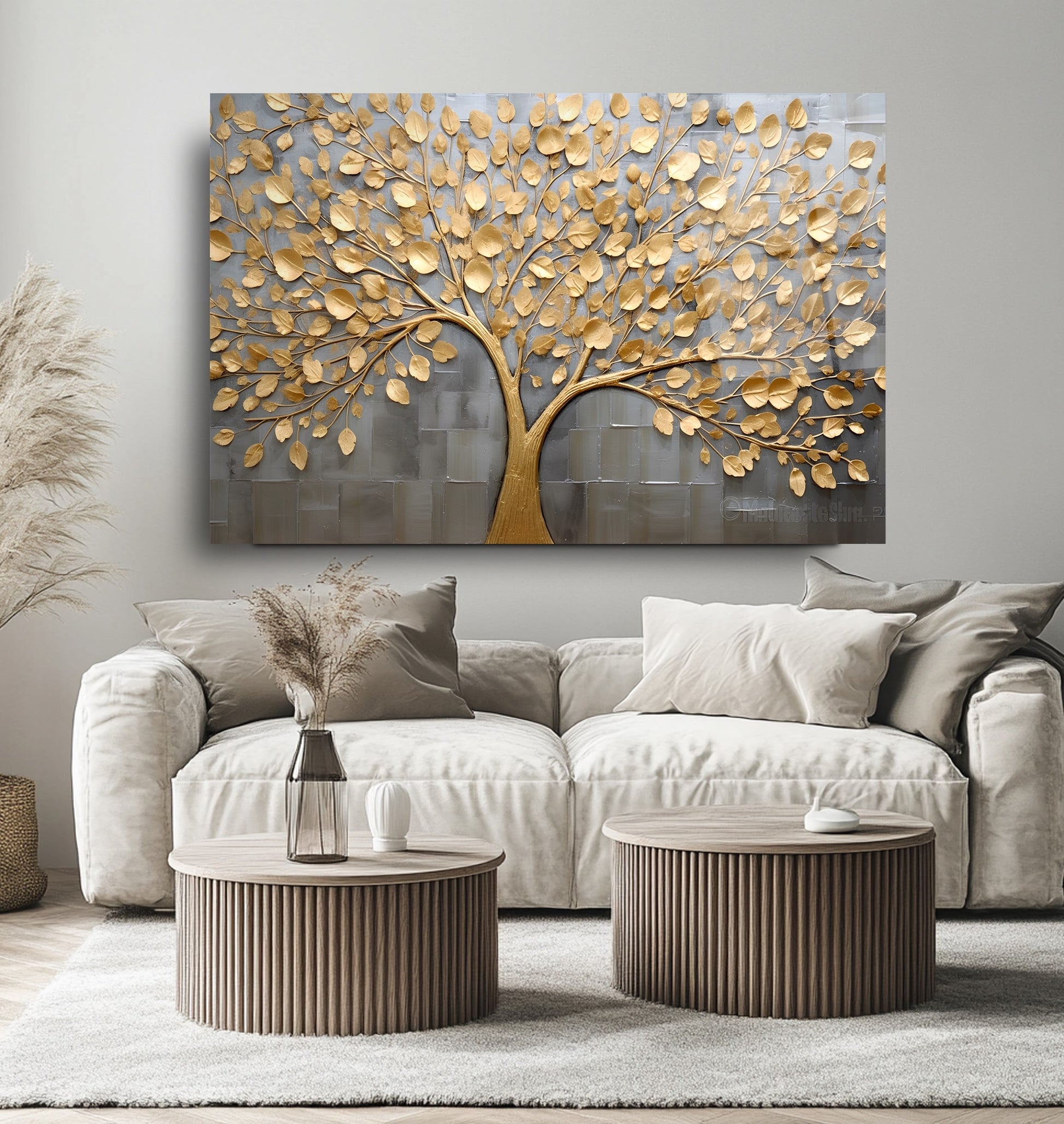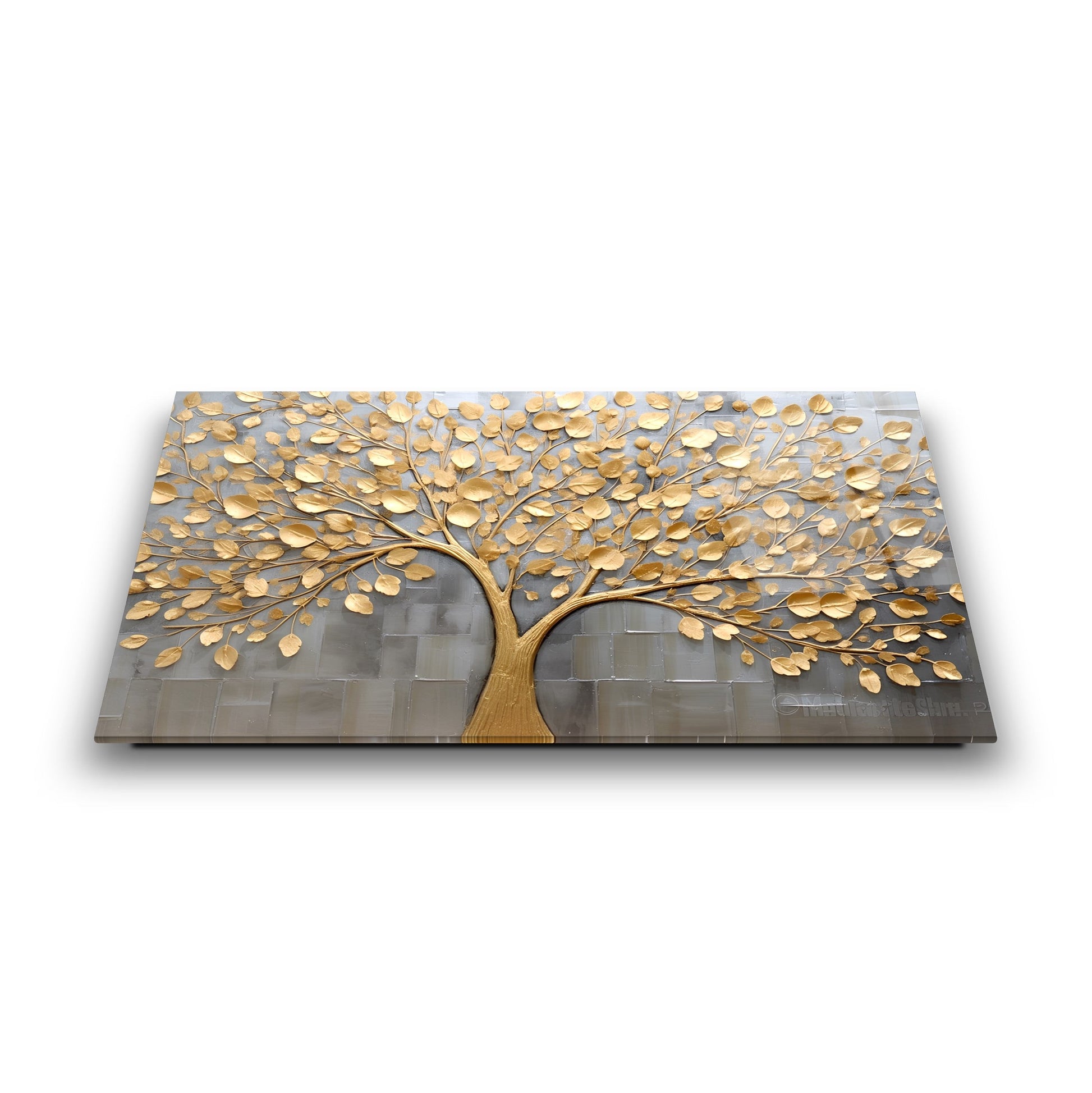 Minimalist gri arka plan üstüne özenle işlenmiş gold kabartmalı hayat ağacı deseni, mekânlarda hem modernlik hem sıcaklık yaratır. 3D dokusu tabloya derinlik katarken temperli cam ve HD UV baskı teknolojisi sayesinde renkler solmadan uzun süre korunur. Çerçevesiz tasarımı, salon, ofis veya antre gibi alanlarda zarif bir odak noktası arayanlara hitap eder. Estetik, şıklık ve dayanıklılığı bir arada isteyenler için ideal bir seçimdir.