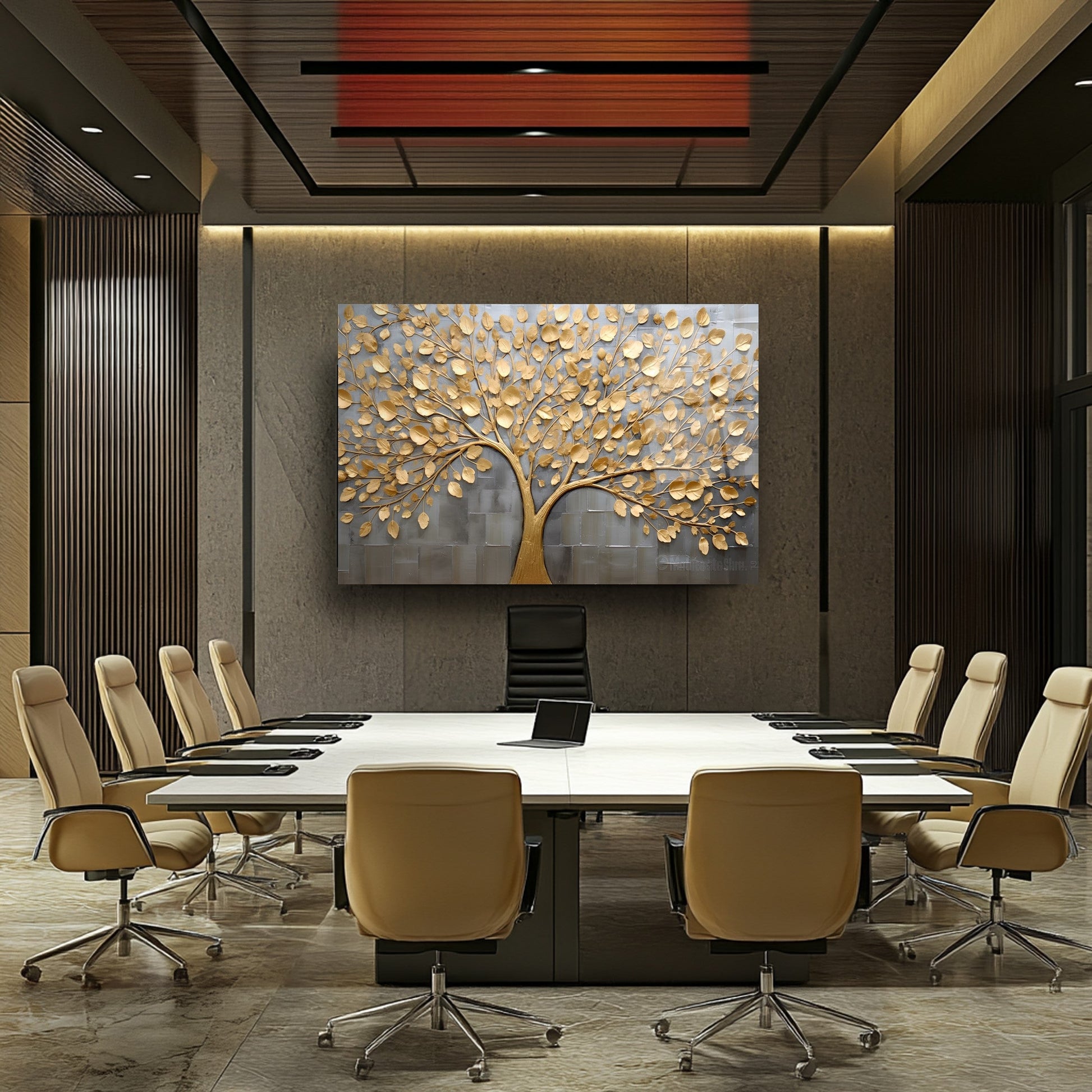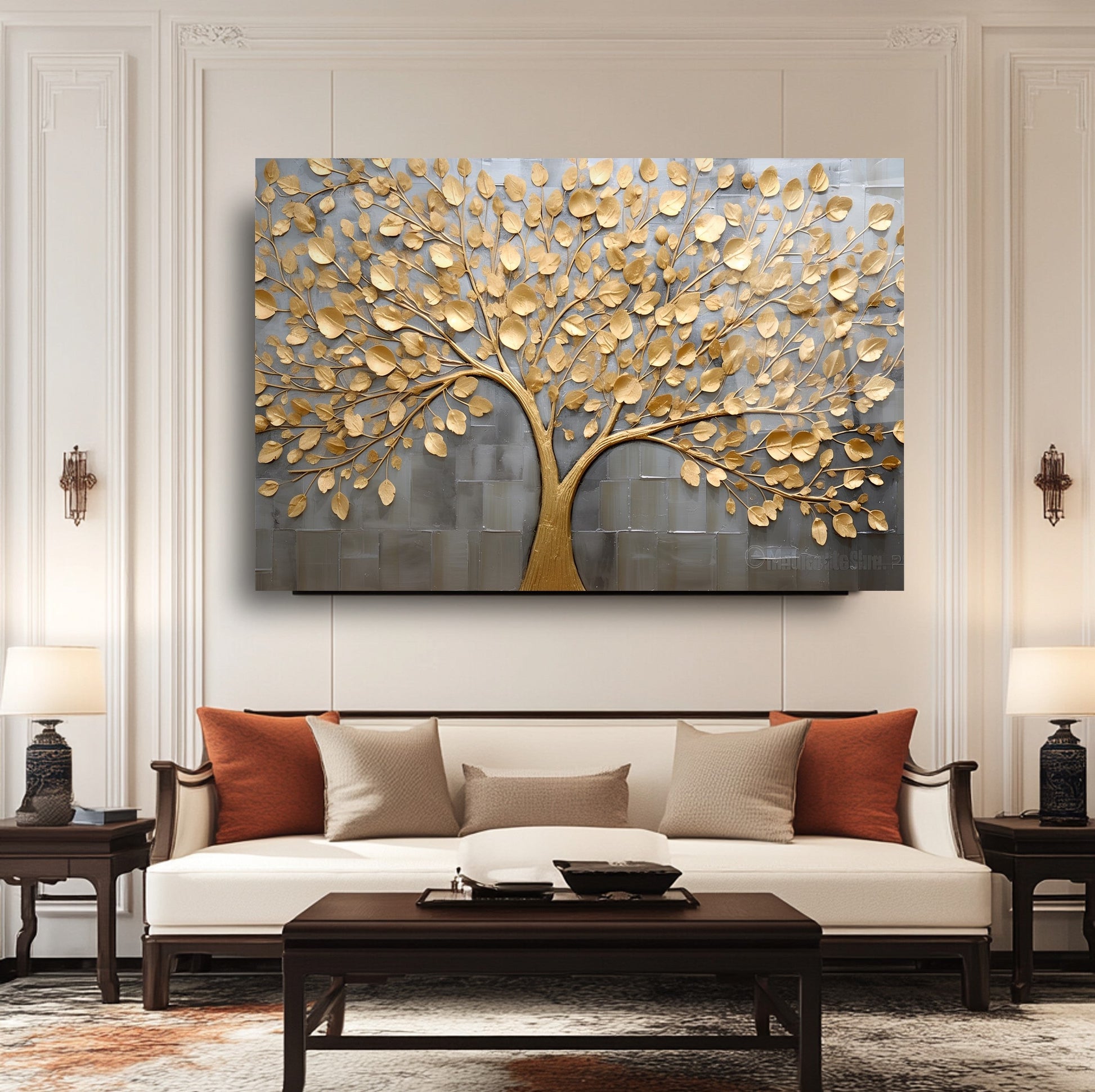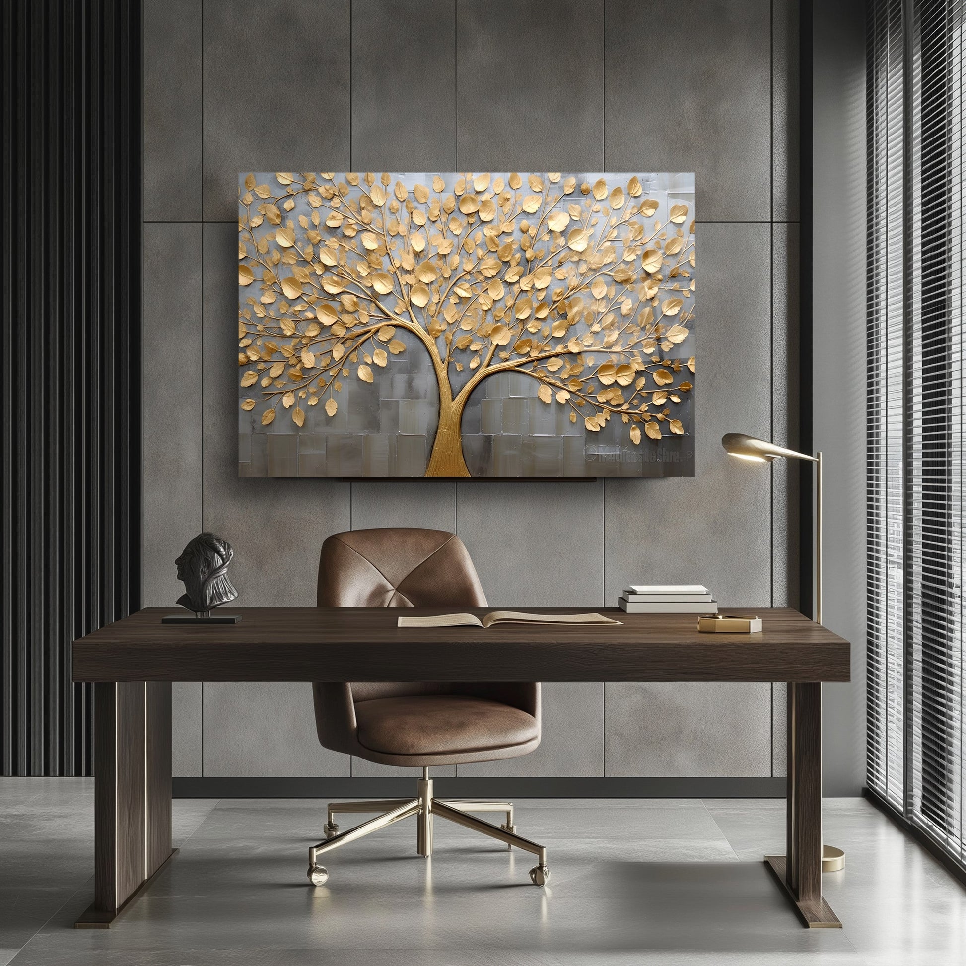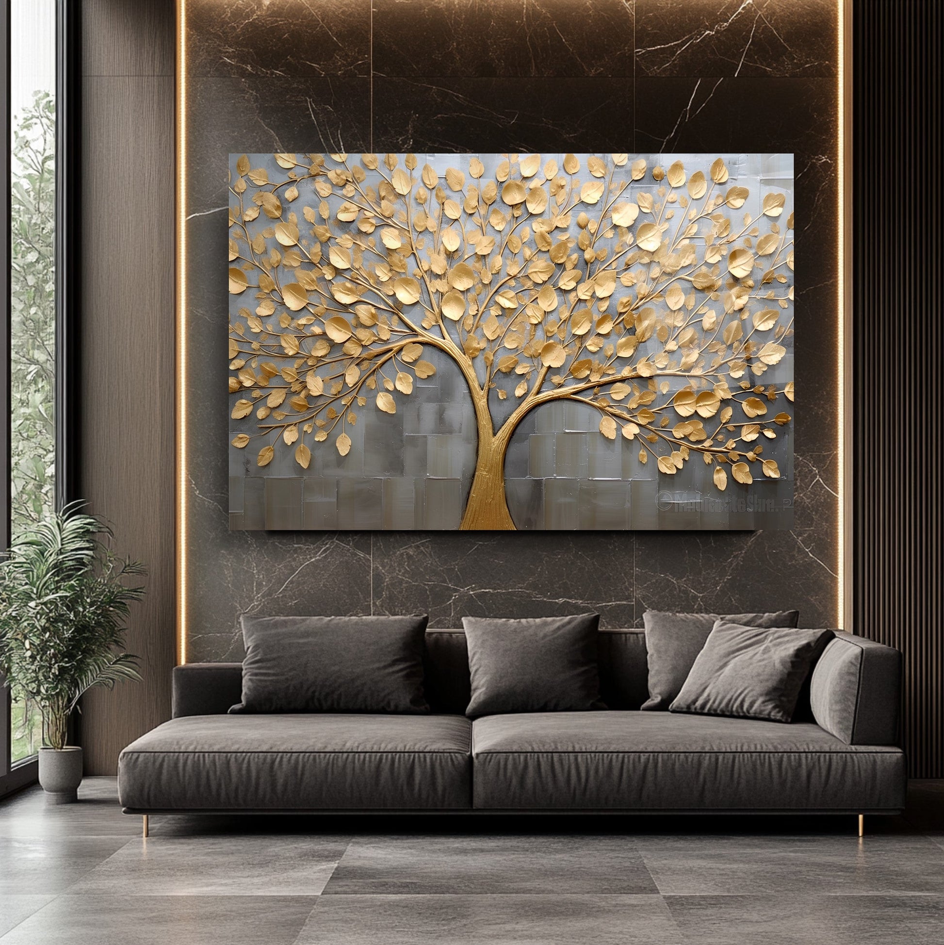 Minimalist gri arka plan üstüne özenle işlenmiş gold kabartmalı hayat ağacı deseni, mekânlarda hem modernlik hem sıcaklık yaratır. 3D dokusu tabloya derinlik katarken temperli cam ve HD UV baskı teknolojisi sayesinde renkler solmadan uzun süre korunur. Çerçevesiz tasarımı, salon, ofis veya antre gibi alanlarda zarif bir odak noktası arayanlara hitap eder. Estetik, şıklık ve dayanıklılığı bir arada isteyenler için ideal bir seçimdir.