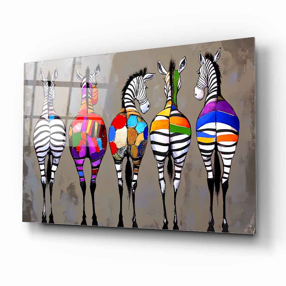 Gri arka planda canlı renklerle tasarlanmış zebraların zarif silueti, bu tabloyu mekânınıza modern ve enerjik bir dokunuş katıyor. 4 mm kalınlığında, kırılmaya karşı 10 kat daha dayanıklı temperli cam üzerine UV dijital baskı teknolojisiyle işlenen bu eser, renklerin solmasını engeller ve uzun ömürlü kullanım sunar. Rodajlanmış kenarları sayesinde estetik ve güvenli bir görünüm sağlar. Kolay montaj için tüm aksesuarlar kutu içinde sunulur. Salon, ofis veya antre gibi farklı mekanlarda şıklık ve dinamizm arayanlar için ideal bir tercihtir.